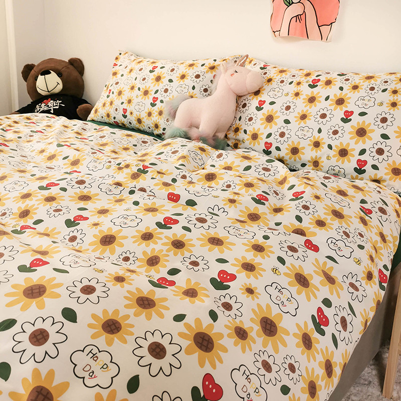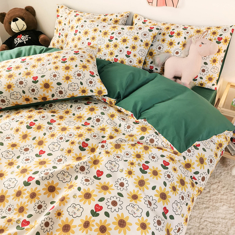商品名称:HL原创 2020新款13372全棉小清新四件套实拍图 葵花籽