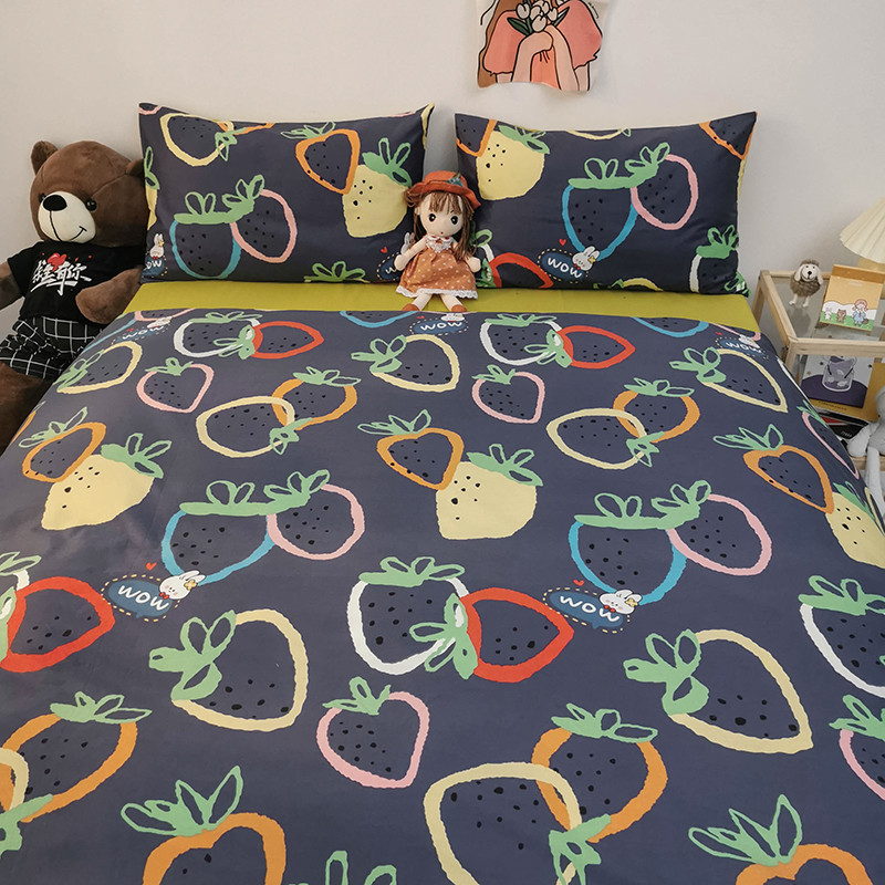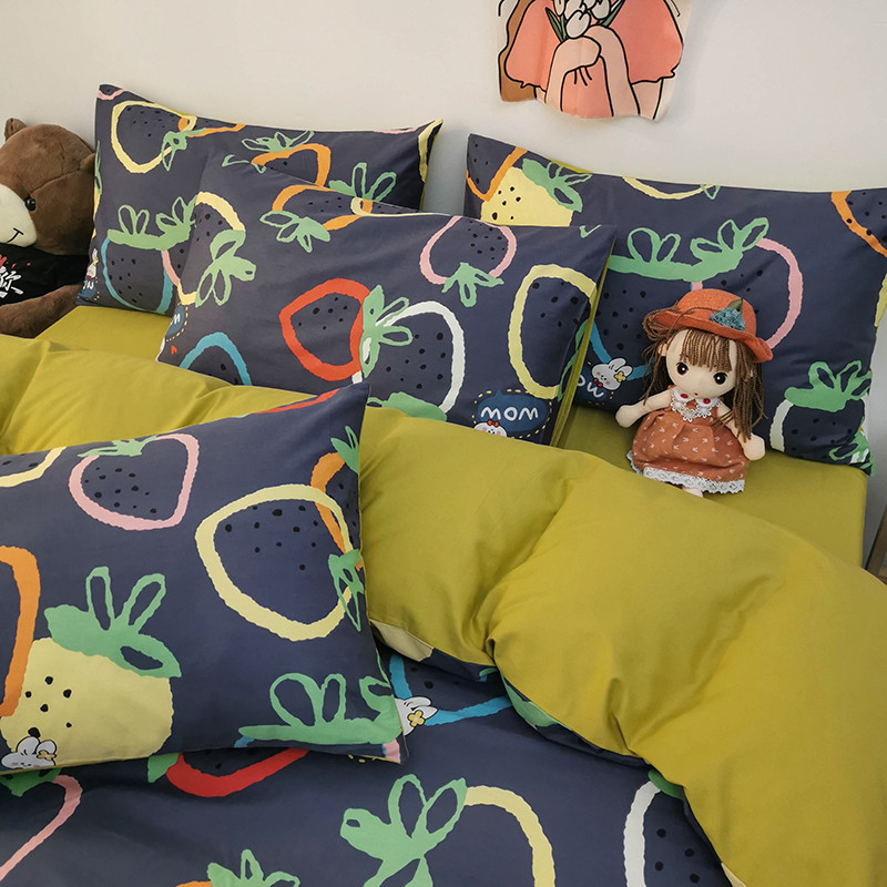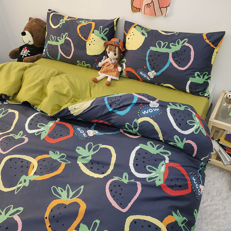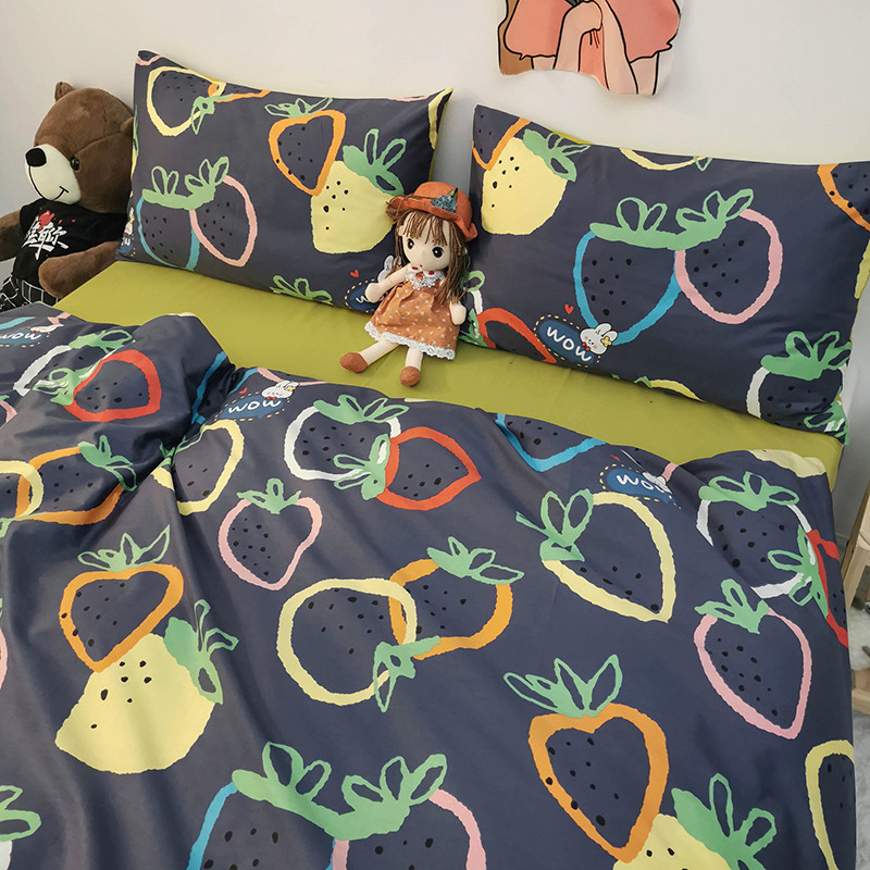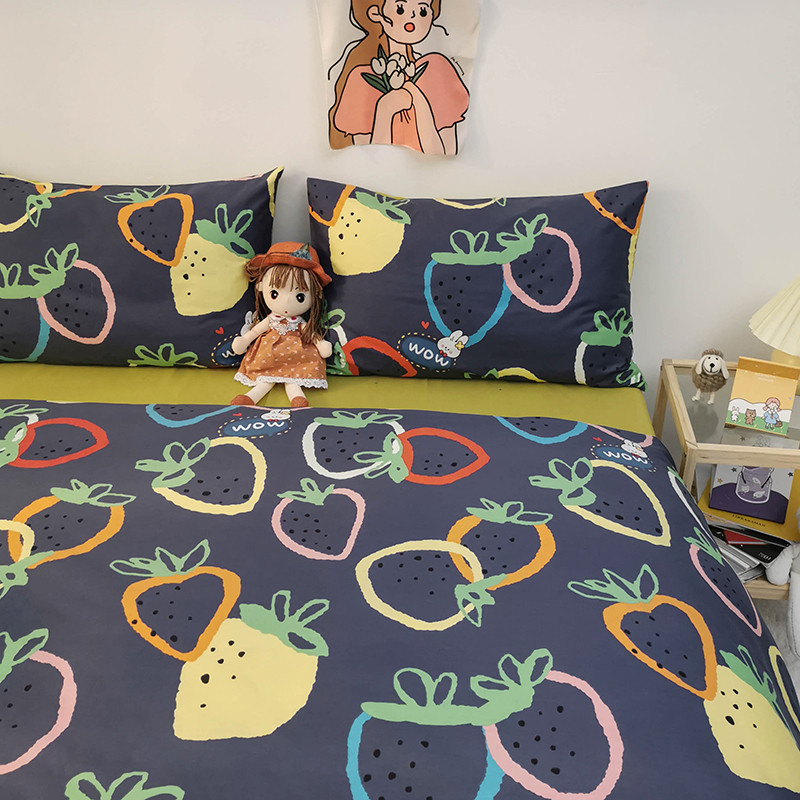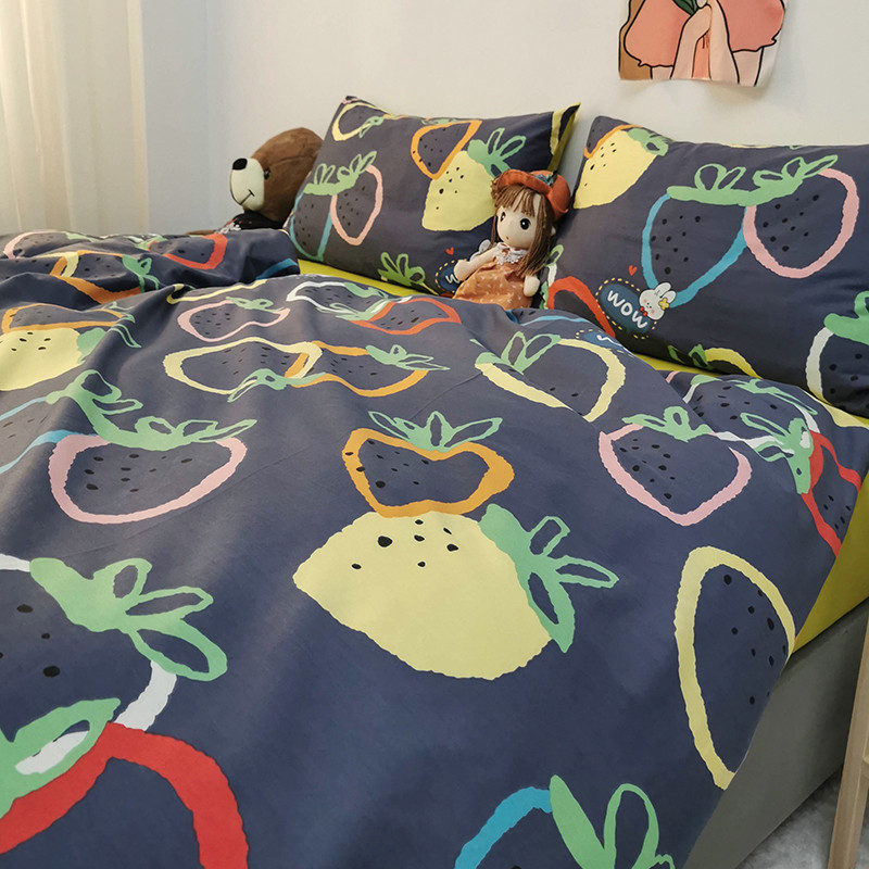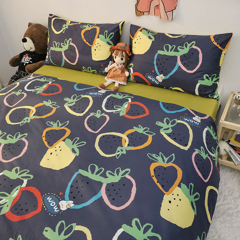 商品名称:HL原创 2020新款13372全棉小清新四件套实拍图 涂鸦草莓
