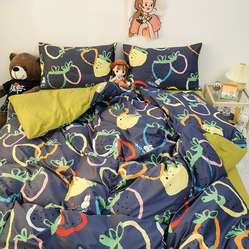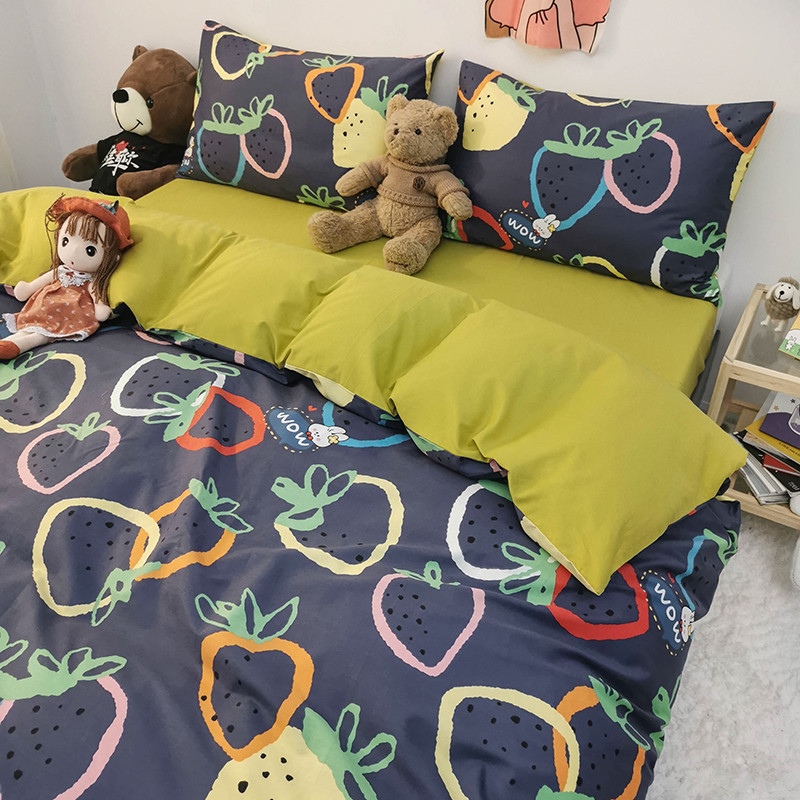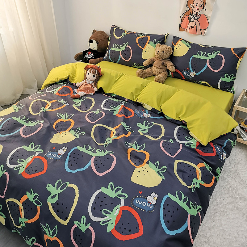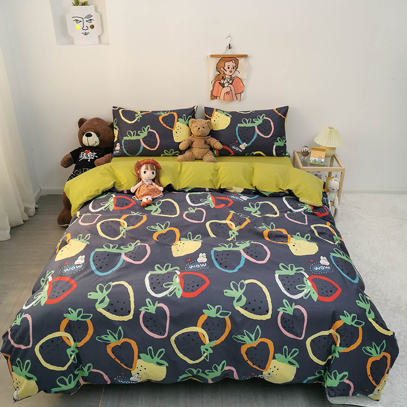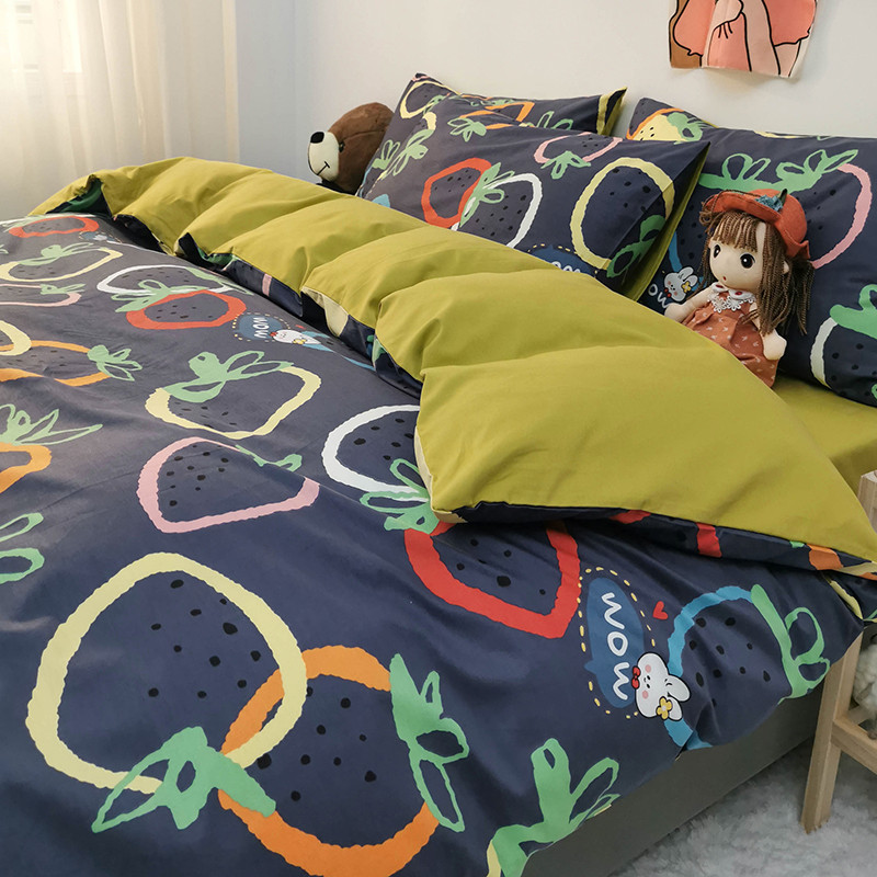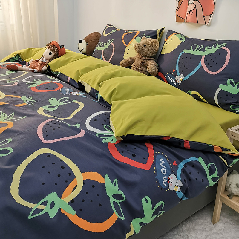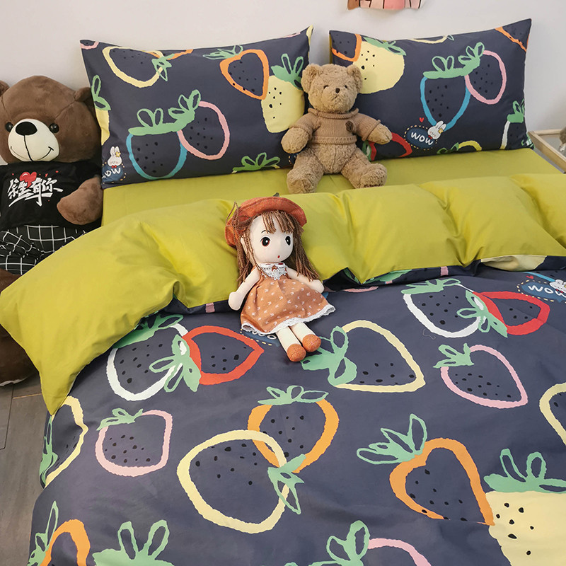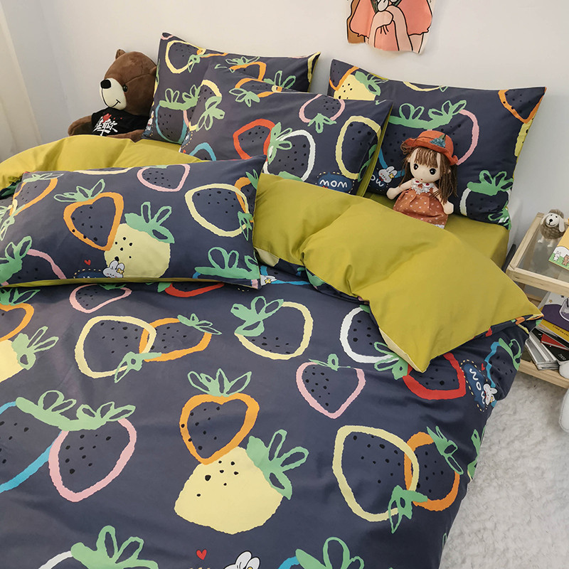 商品名称:HL原创 2020新款13372全棉小清新四件套实拍图 涂鸦草莓