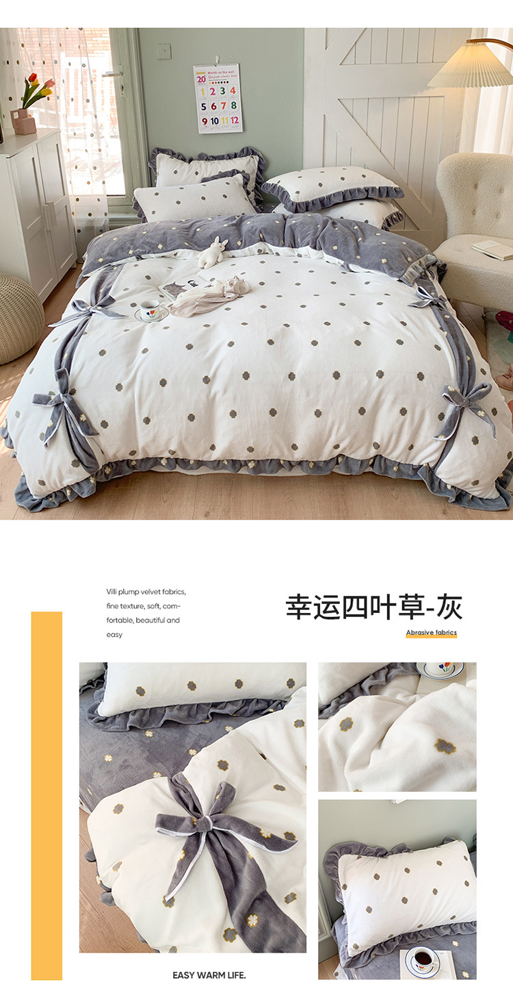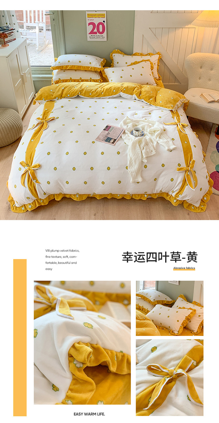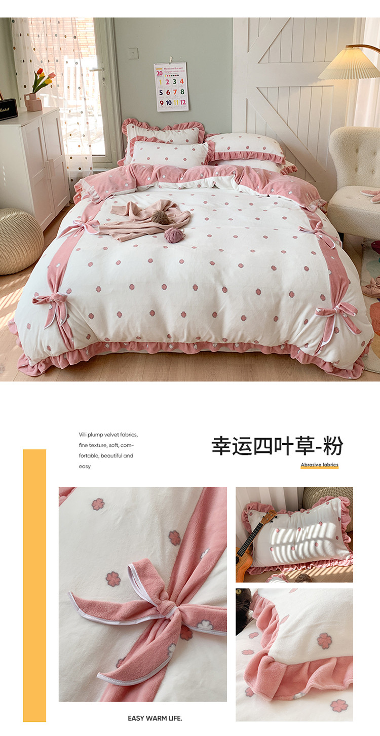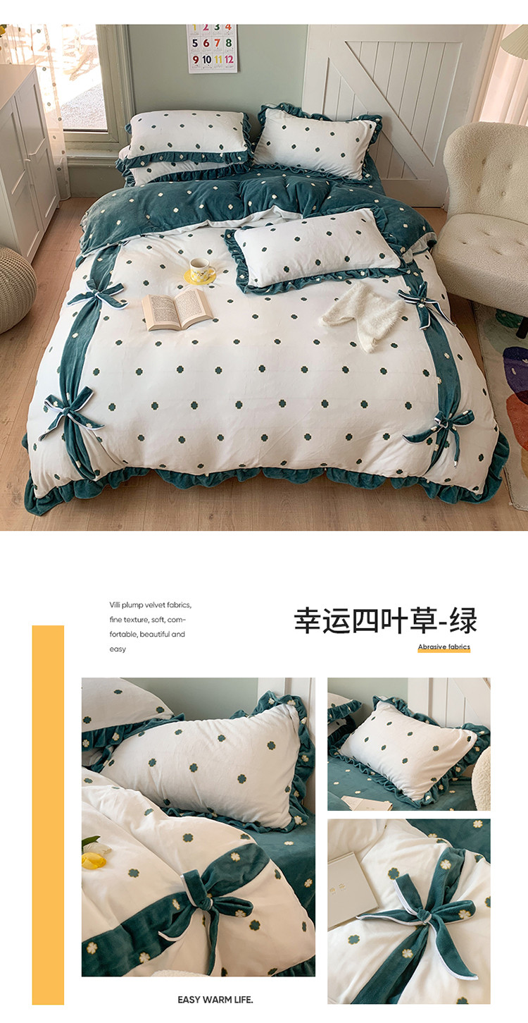 (总)眠屿 2020新款牛奶绒幸运四叶草系列四件套