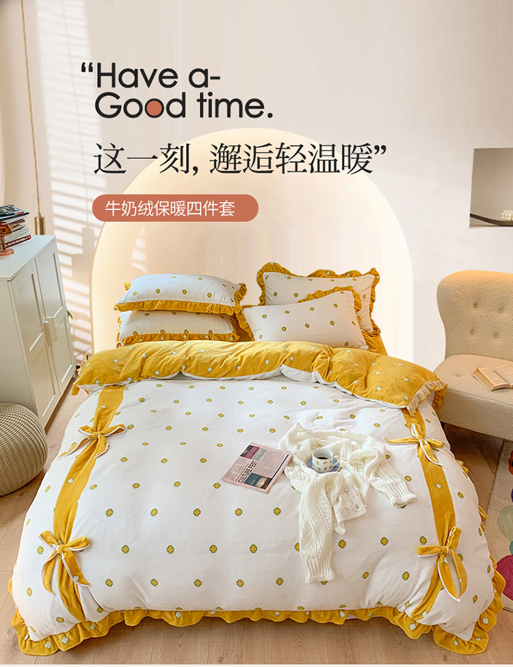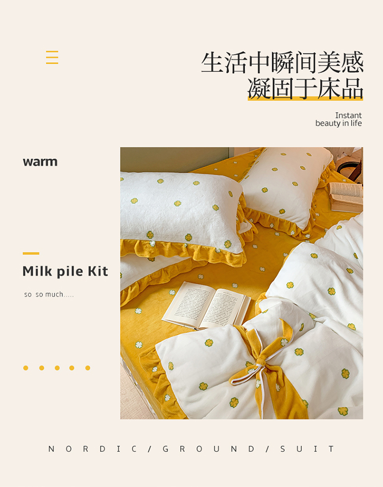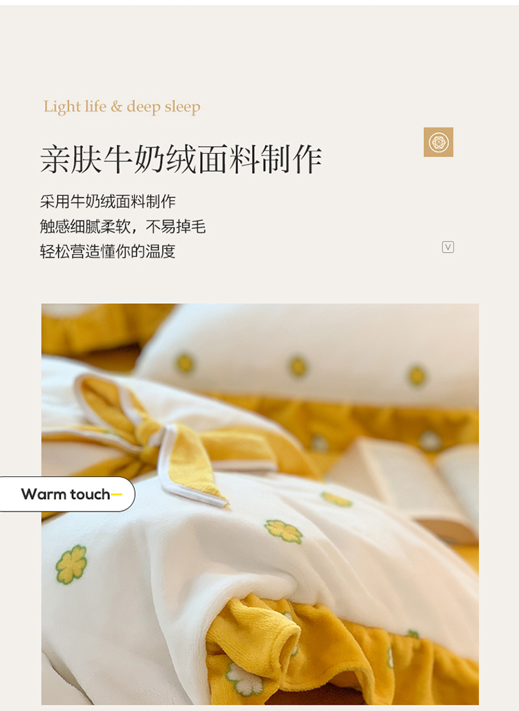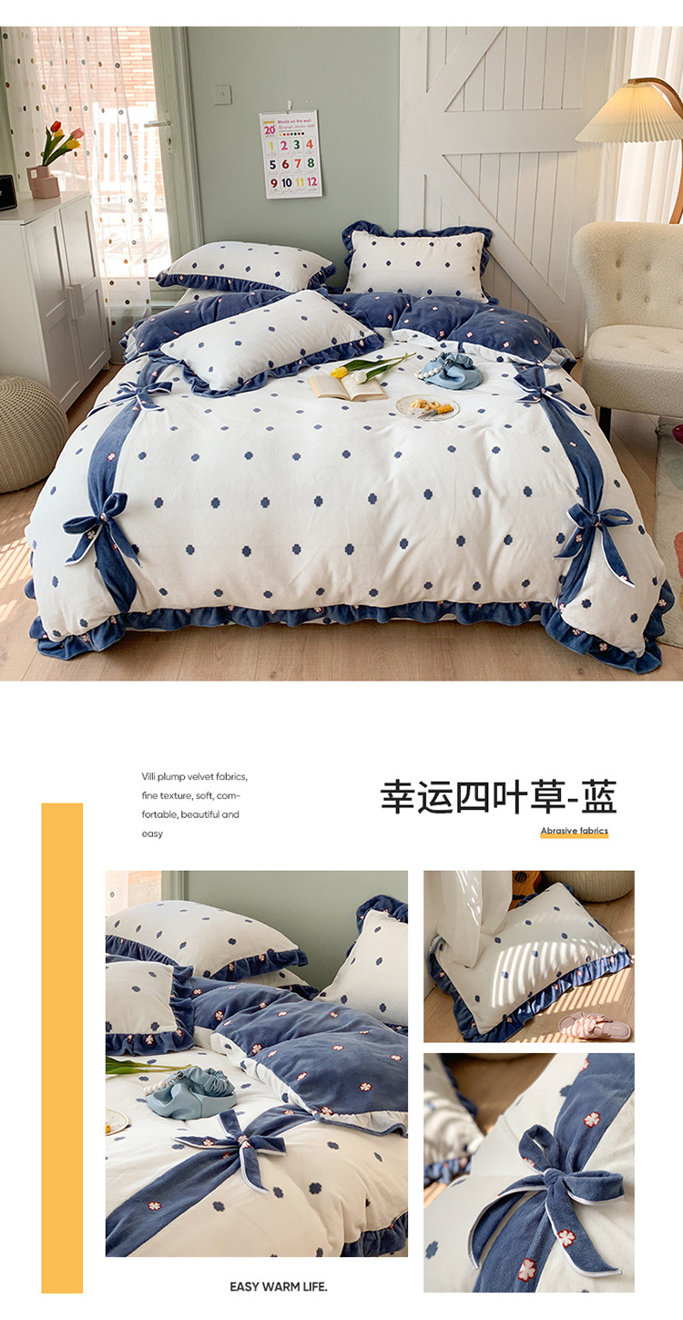 (总)眠屿 2020新款牛奶绒幸运四叶草系列四件套