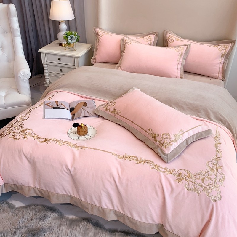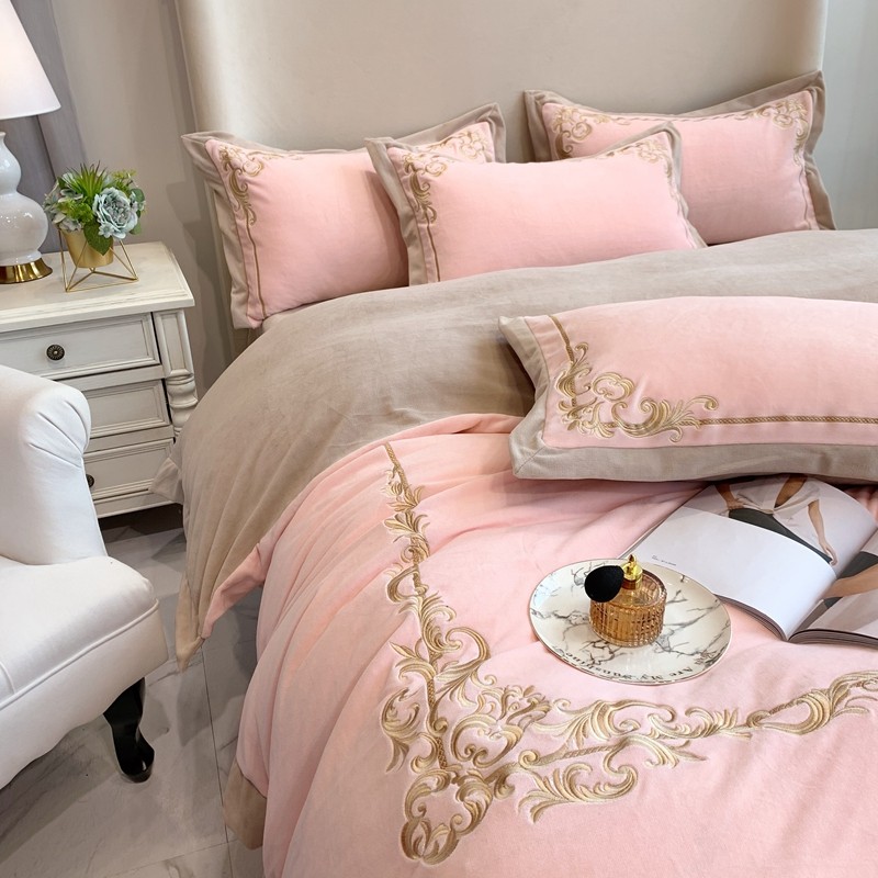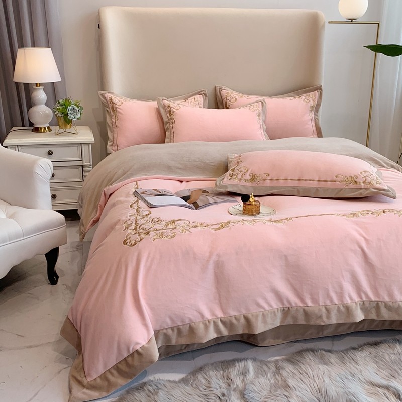 馨蕊家居 2021新款秋冬轻奢煦暖绒四件套 巴比伦-初夏粉