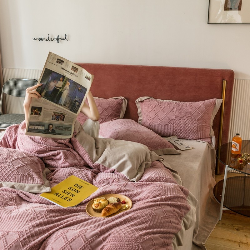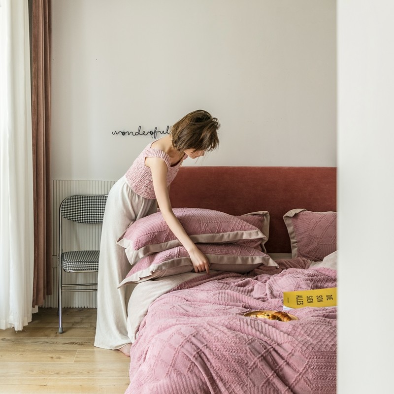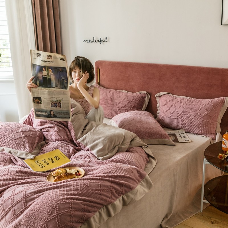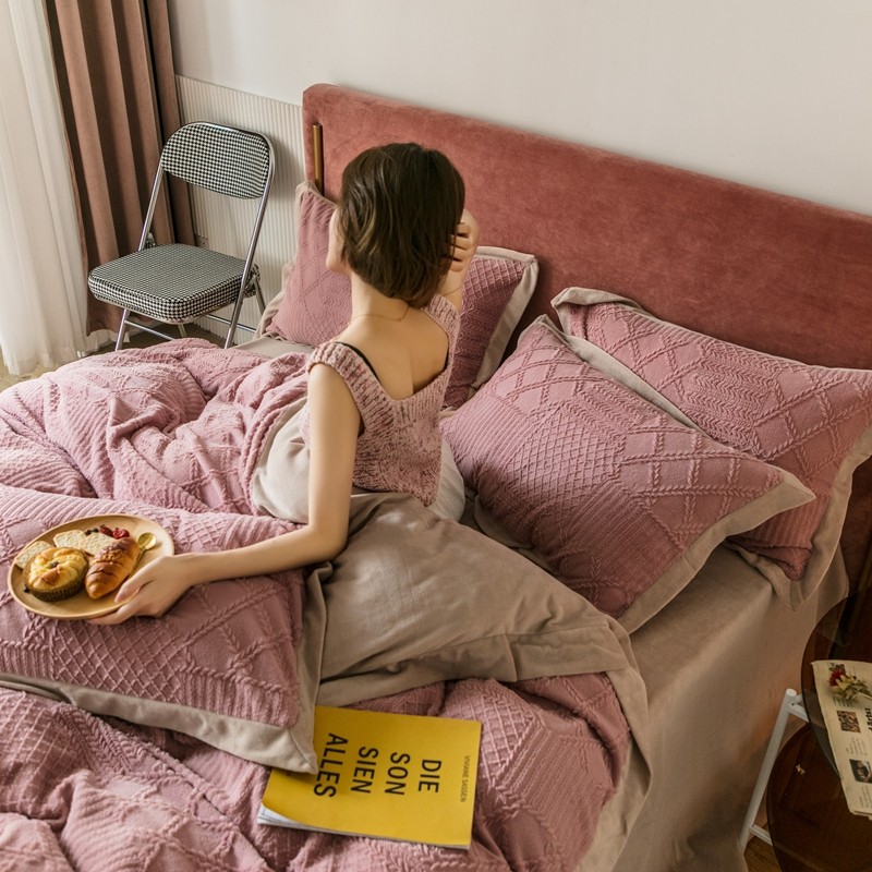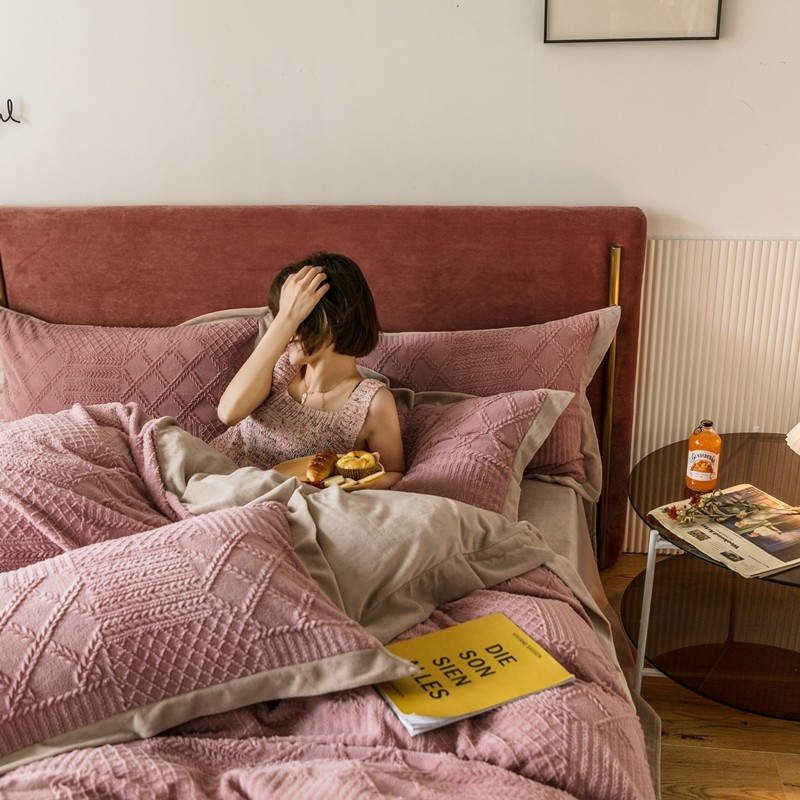 商品名称:馨蕊家居 2021新款秋冬轻奢煦暖绒四件套 唯爱-豆粉