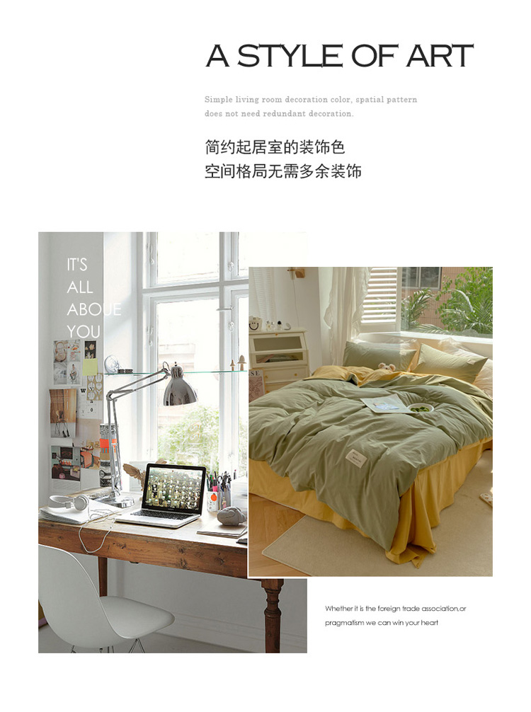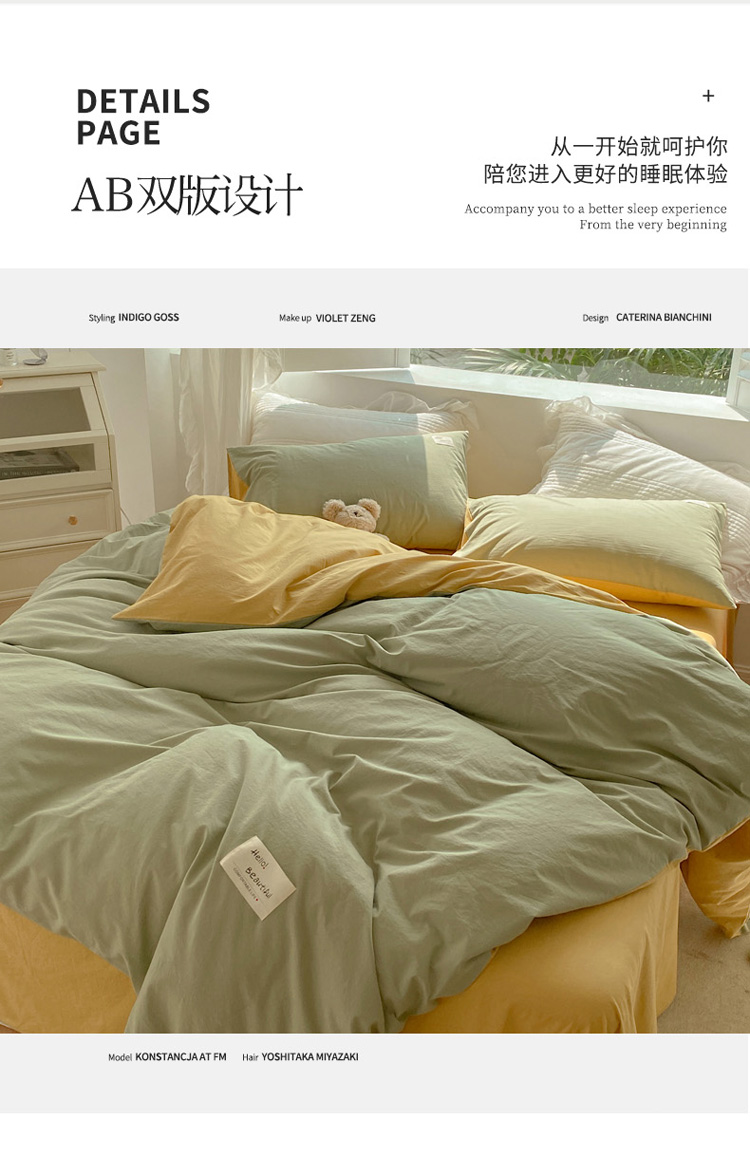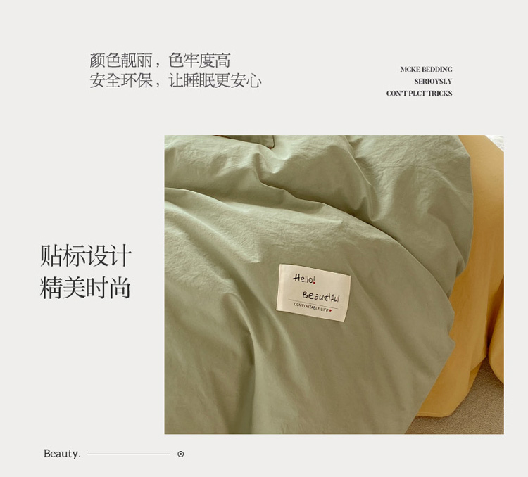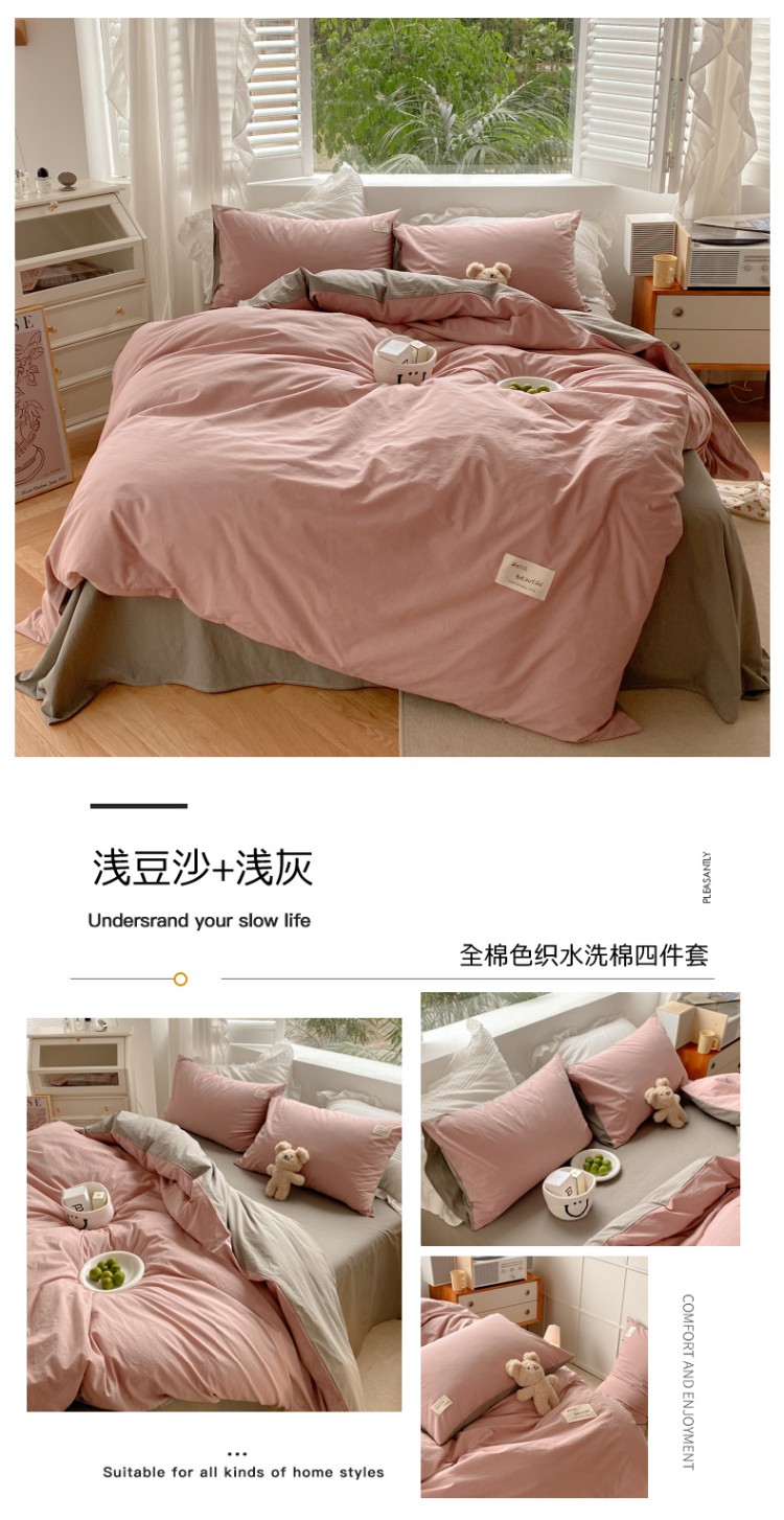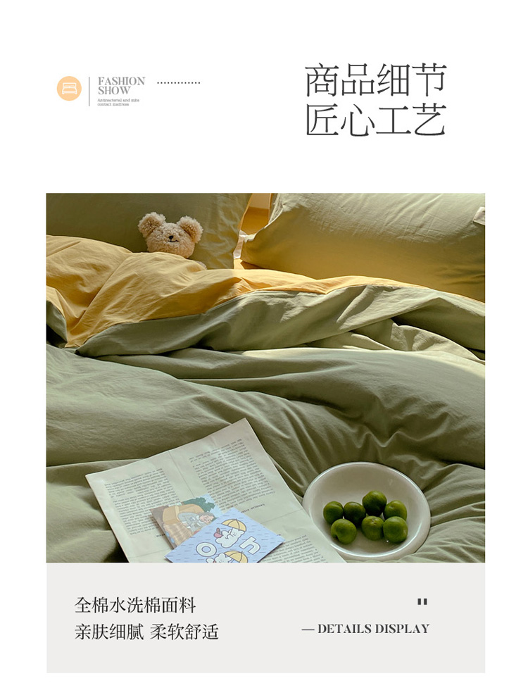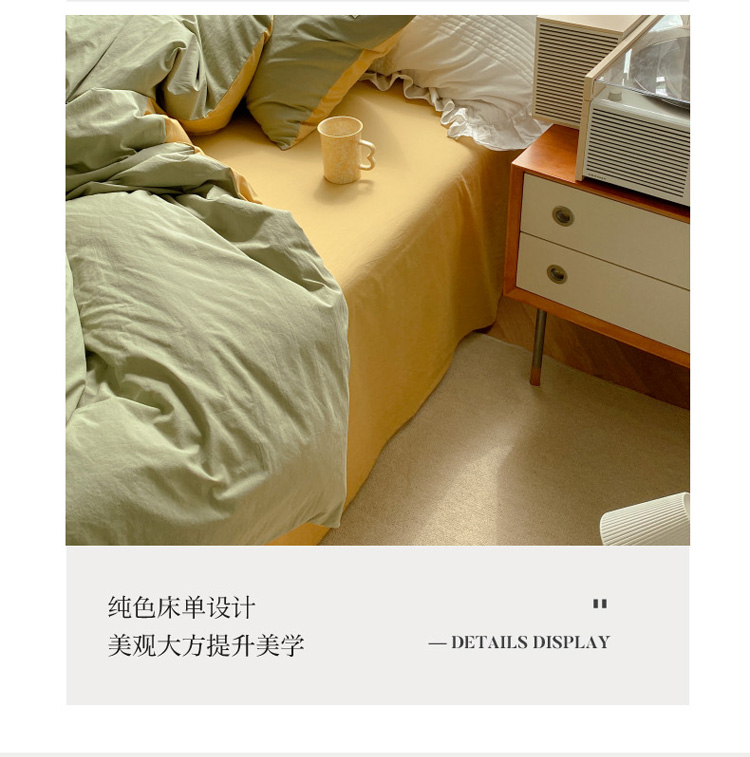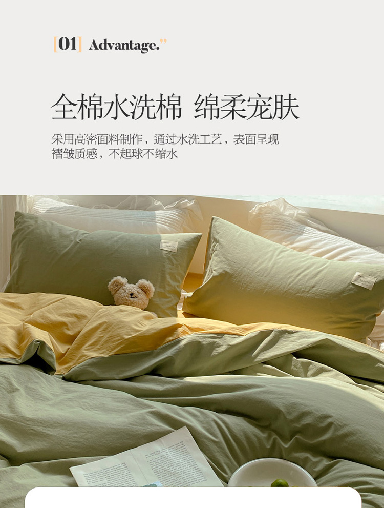 (总) 寐居 2023新款双拼全棉水洗棉纯色四件套,ins风-草绿色,ins风-湖绿色,ins风-裸粉色,ins风-迷雾蓝,ins风-奶油黄,ins风-柠檬黄,ins风-樱花粉,鹅黄+香芋紫,焦糖+卡其,军绿+焦糖,米黄+卡其,米黄+深粉,奶油玉+鹅黄,深粉+湖蓝,深蓝+焦糖,藏青+浅灰,绿+牛油果绿,米黄+浅蓝,抹茶绿+橡木黄,奶油玉+橄榄绿,奶油玉+香芋紫,浅豆沙+浅灰,深蓝+灰