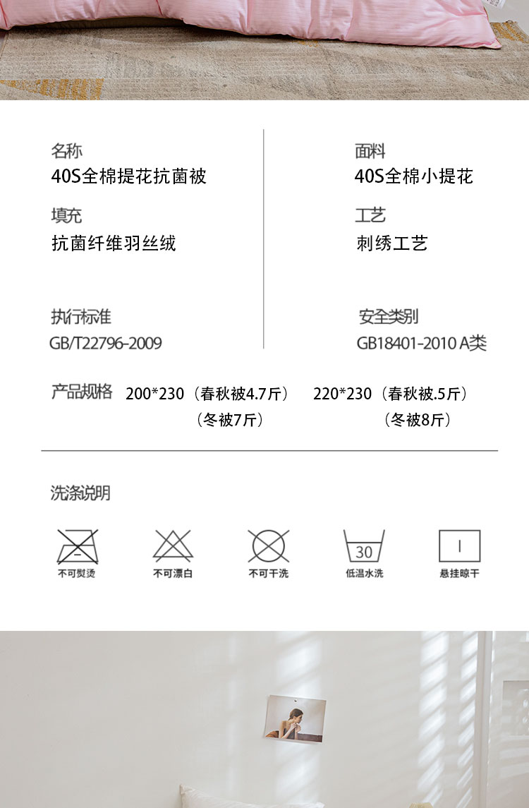 商品名称:(总)久典2020新款40S全棉提花抗菌被甜心系列