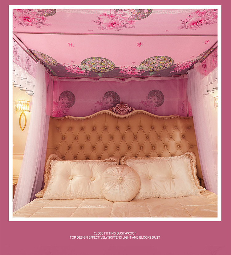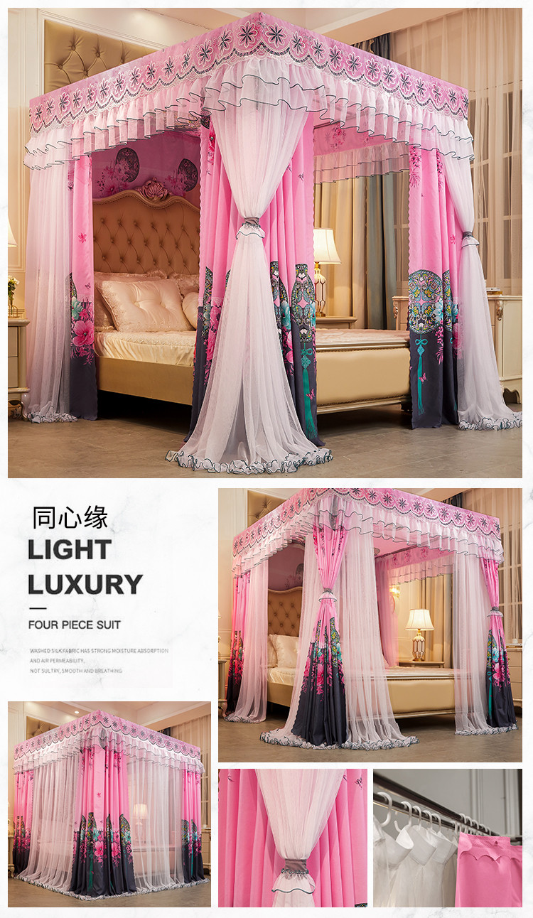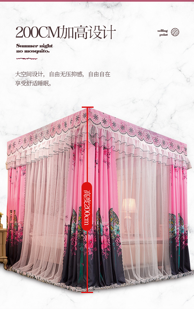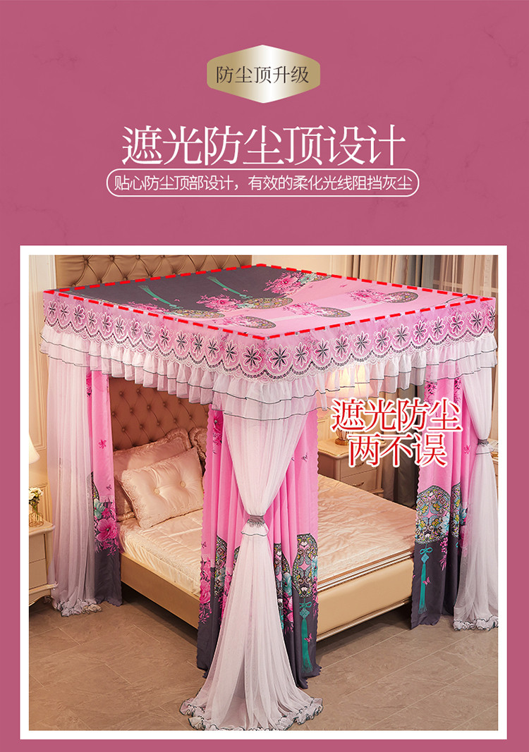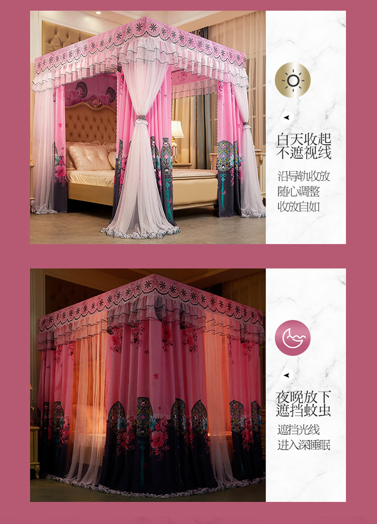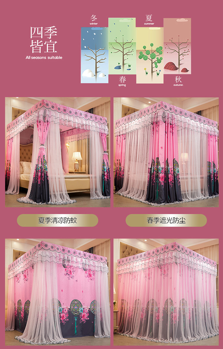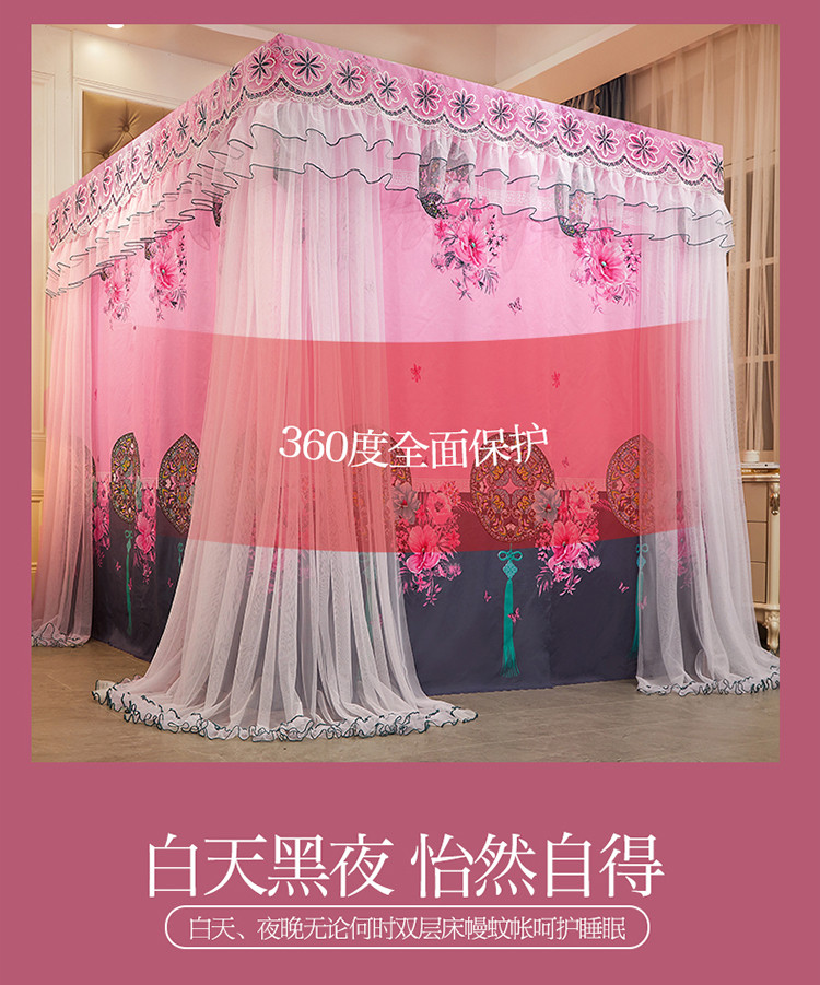 (总)艾晶美家纺有限公司 2025新款新中风双层双杆5面遮光落地宫廷蚊帐,粉枝花影,寒梅映阁,花簇橘裳,兰枝映月,云纱梦境,竹韵绕阁