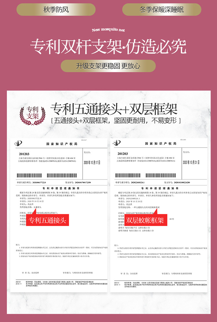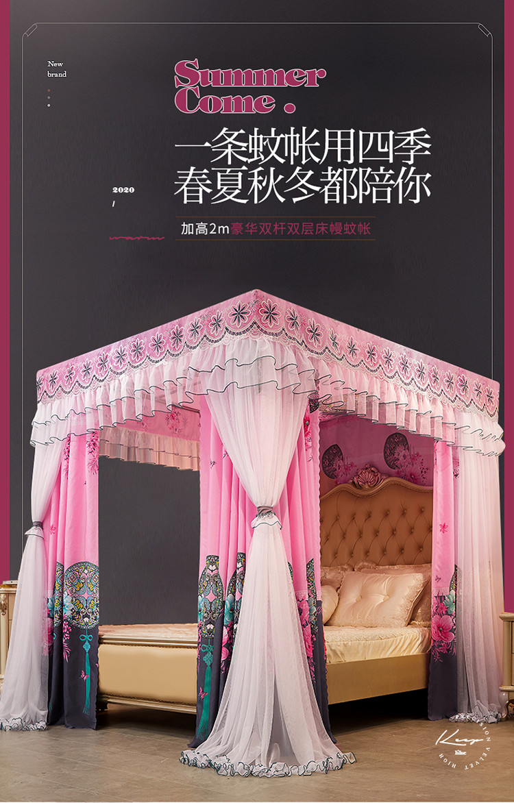艾晶美家纺 2021新款四季款豪华双杆双层蚊帐床幔 同心缘