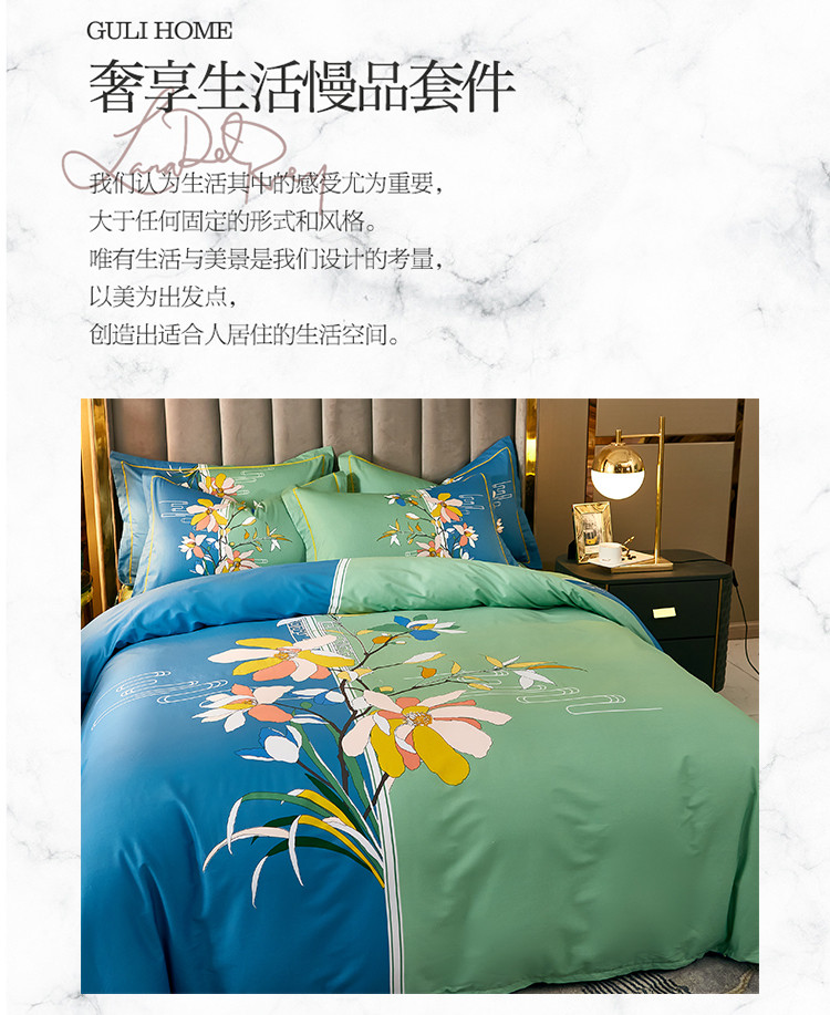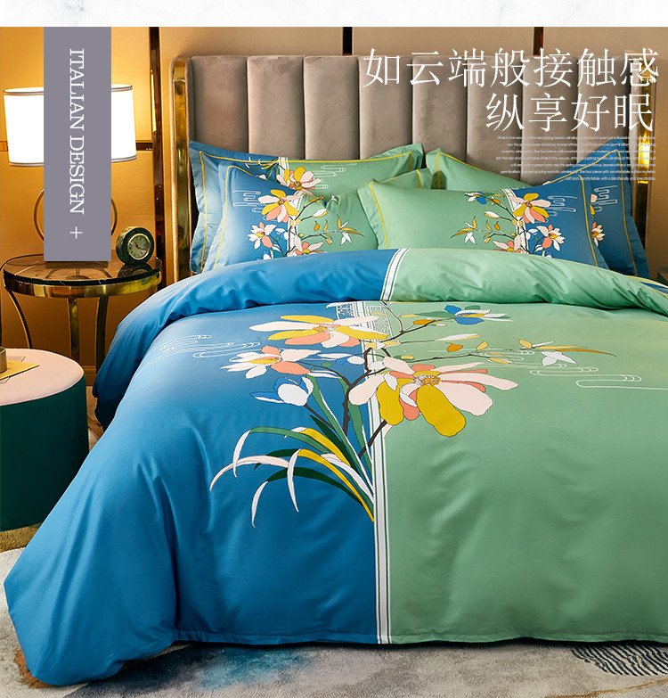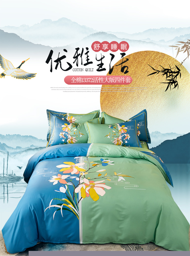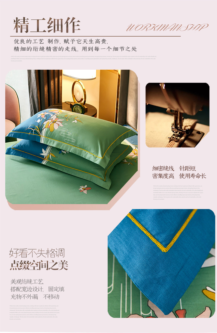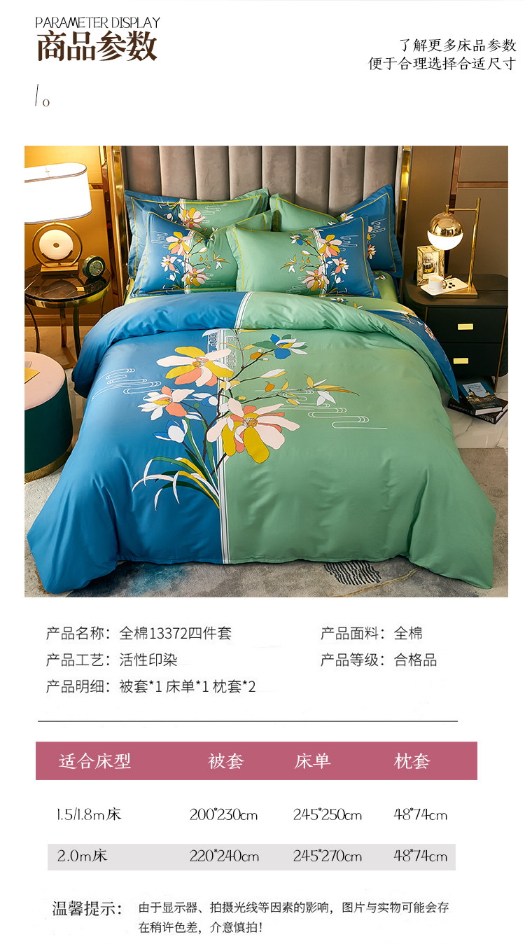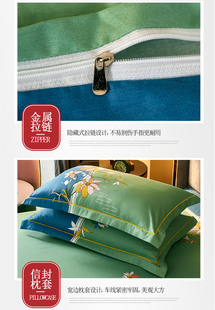 商品名称:雲归梦 2021全棉大版四件套中国风花卉 美人吟(绿)
