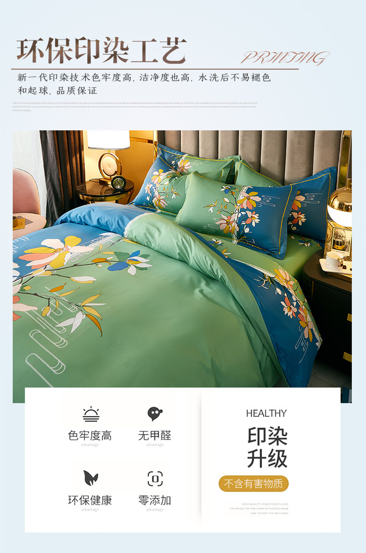 雲归梦 2021全棉大版四件套中国风花卉 美人吟(绿)