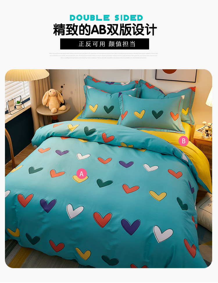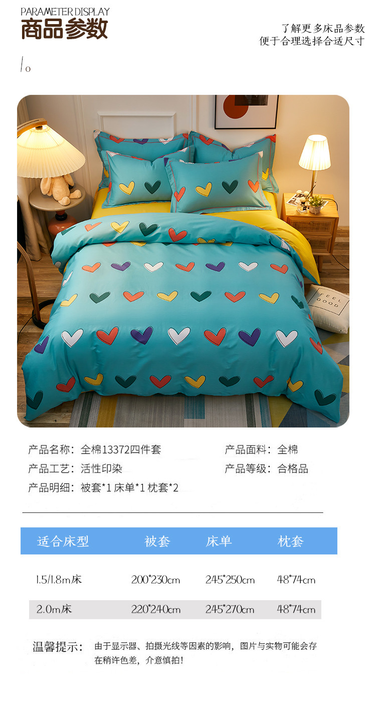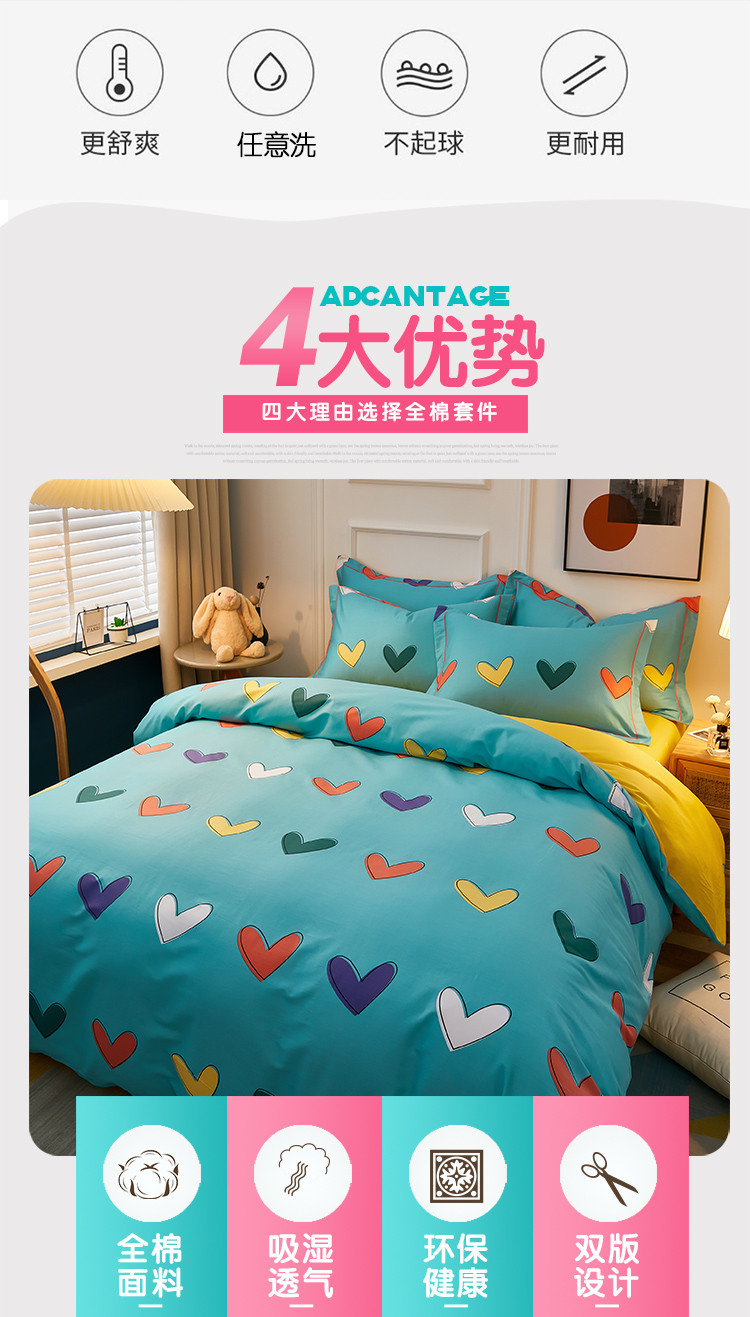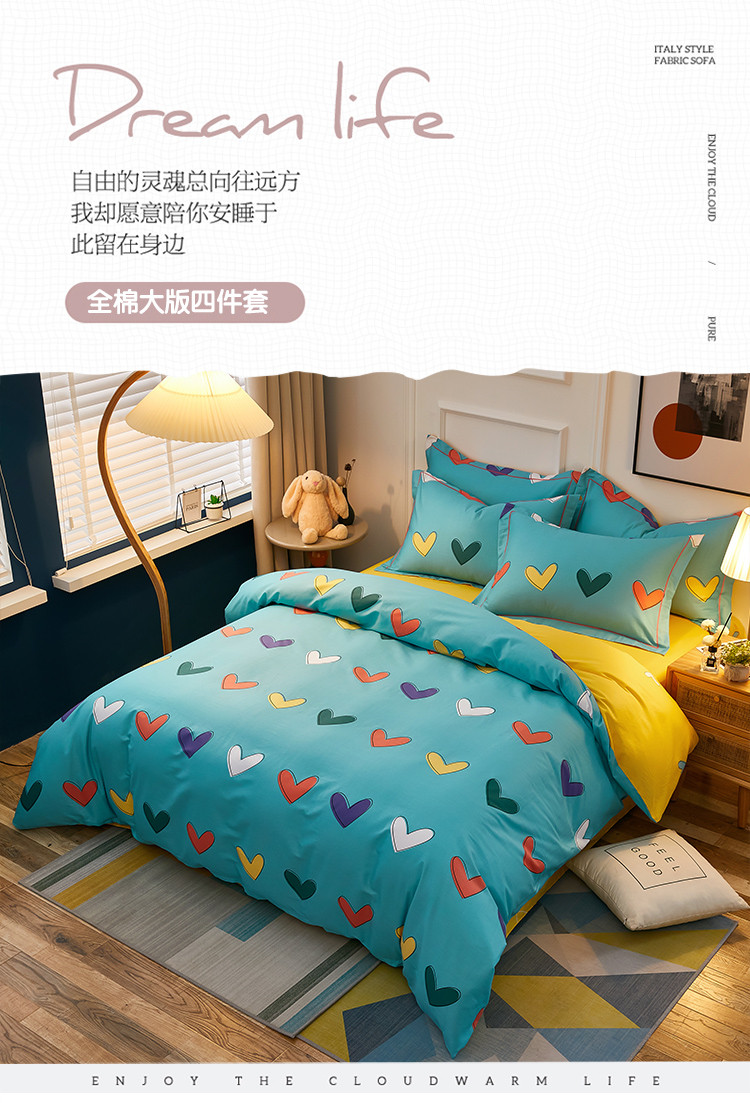 商品名称:雲归梦 2021全棉大版四件套可爱卡通系列 心心相印(兰)