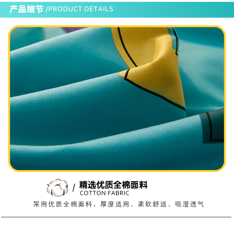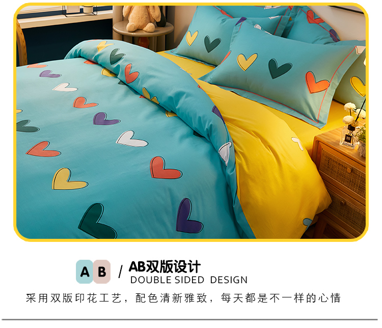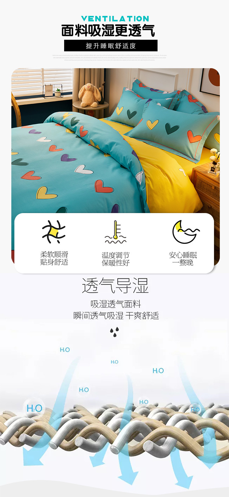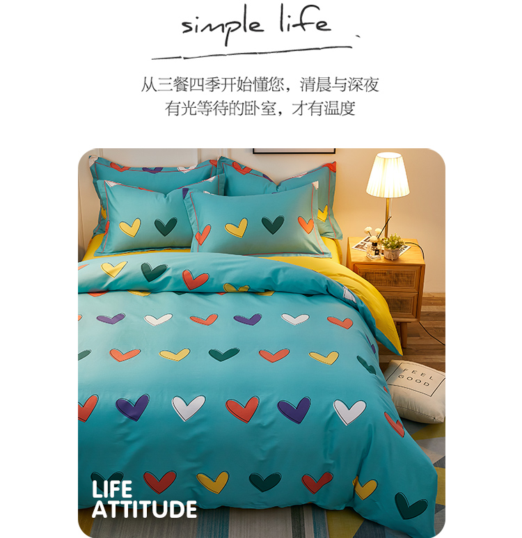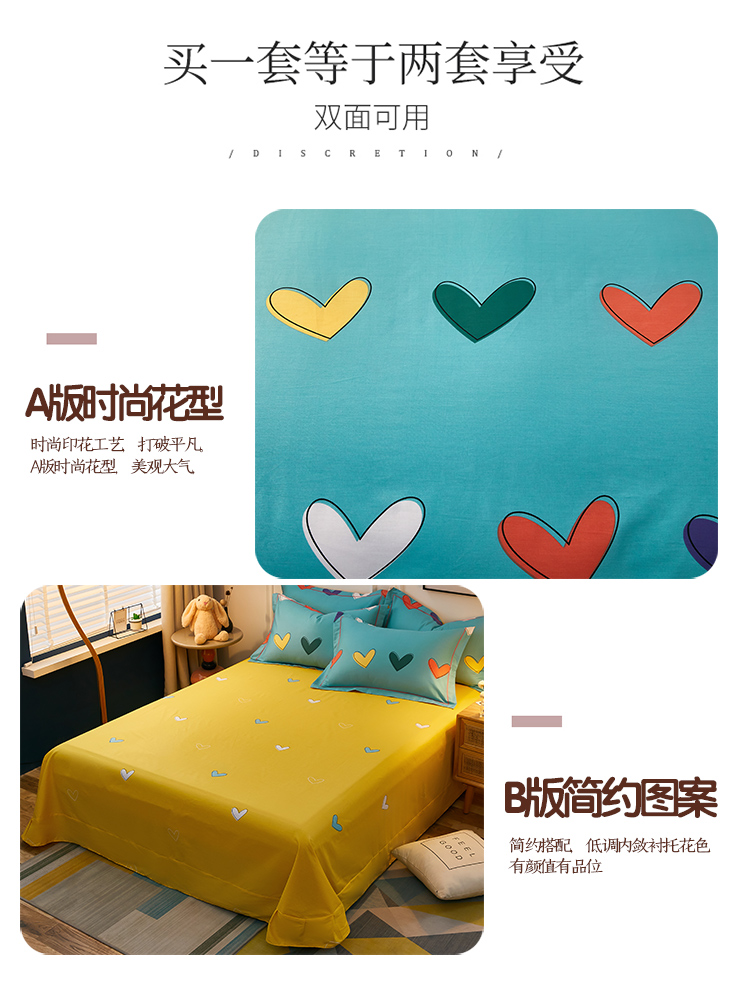 商品名称:雲归梦 2021全棉大版四件套可爱卡通系列 心心相印(兰)