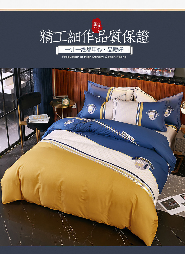 商品名称:雲归梦 2021全棉大版四件套休闲格条系列 卡地亚-黄