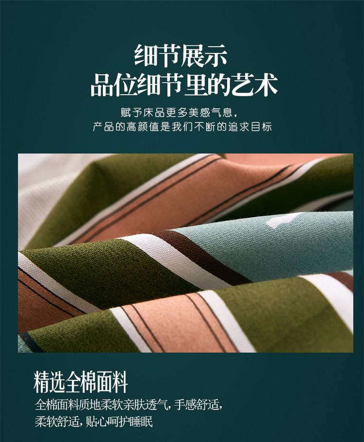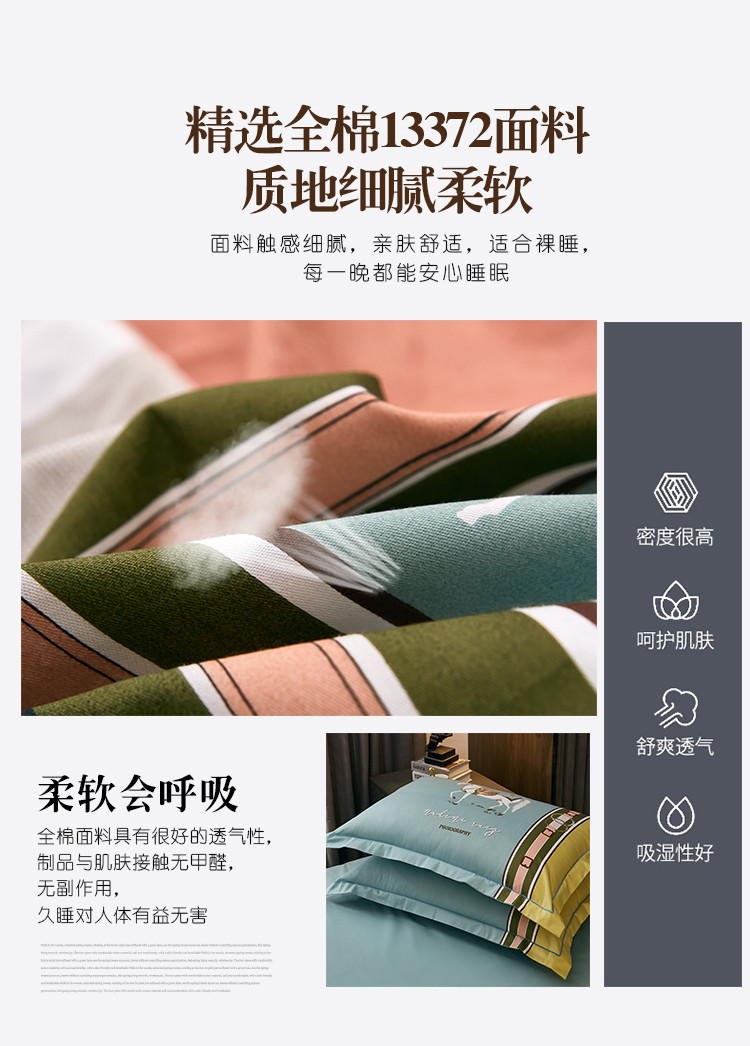 商品名称:雲归梦 2021全棉大版四件套休闲格条系列 一梦为马
