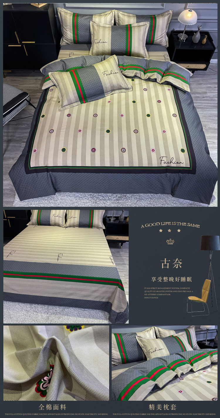 当前位置: 91家纺网 > 商品网购 > 床品套件 > 四件套 > 全棉普通四件套 > 金爱家 2021新款全棉13372四件套条格简约系列 古奈