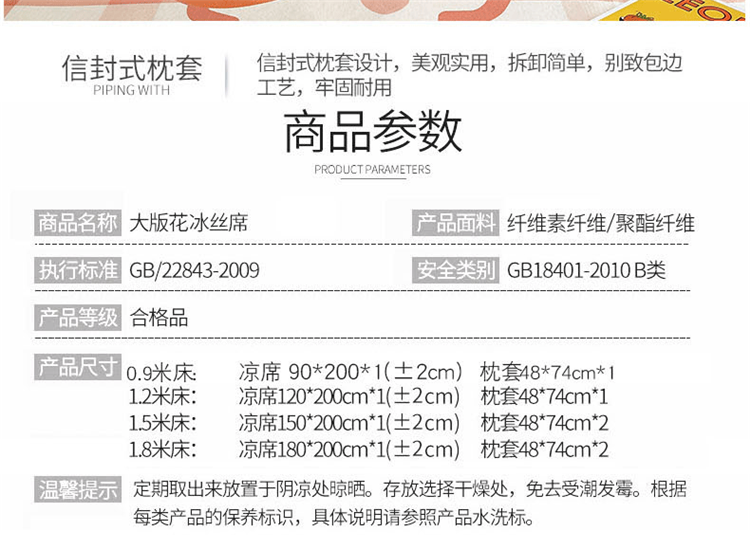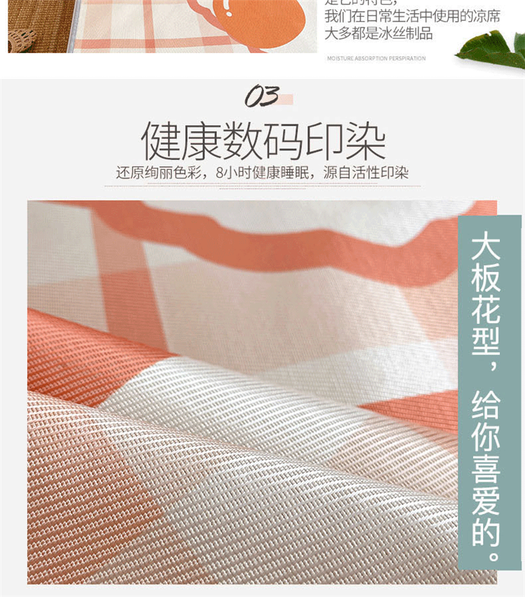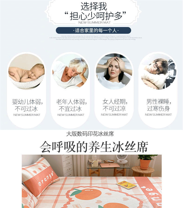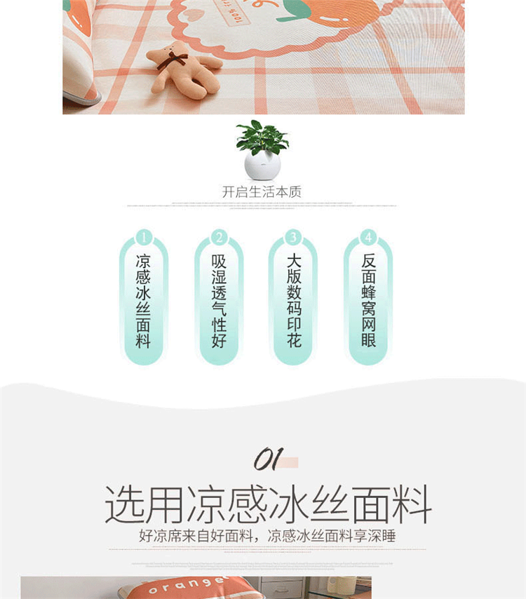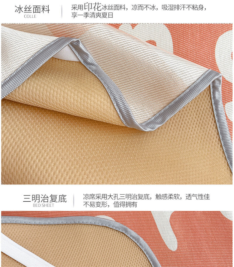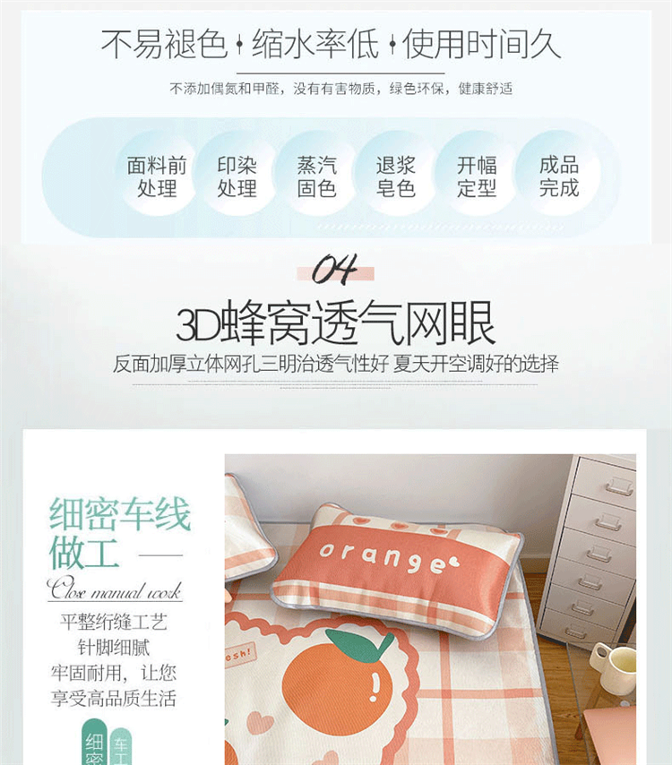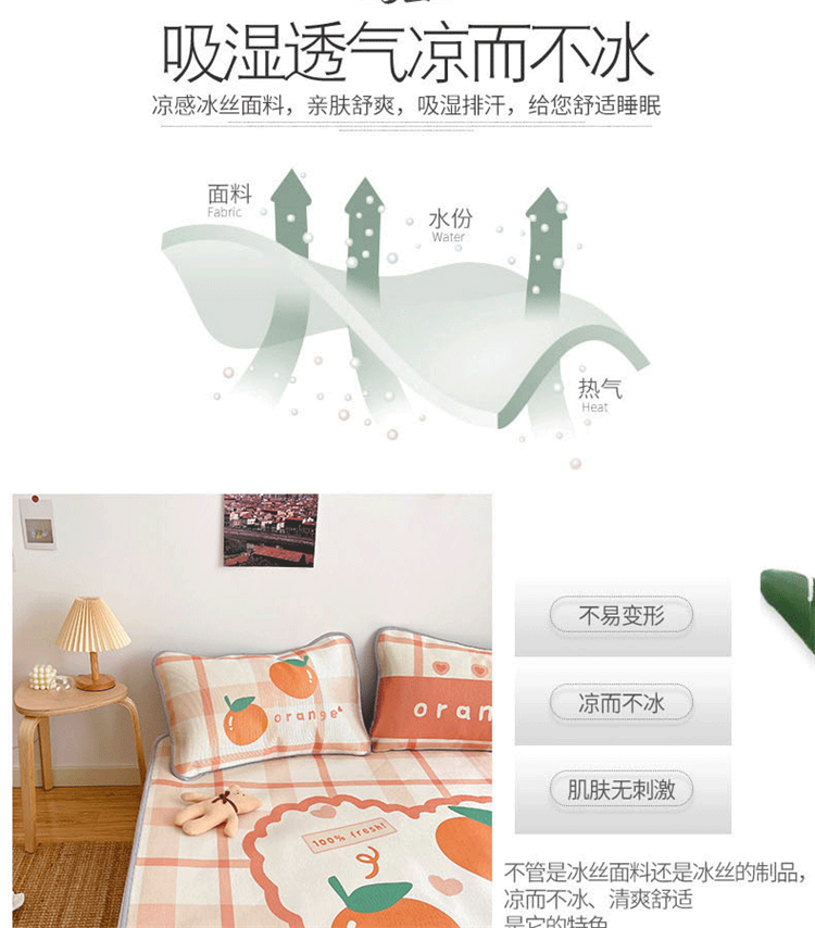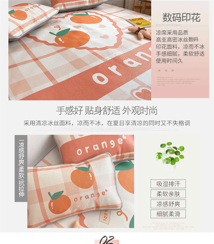商品名称:川悦生活 直播供货2021新款小清新大版冰丝席卡通凉席三件套甜之橘