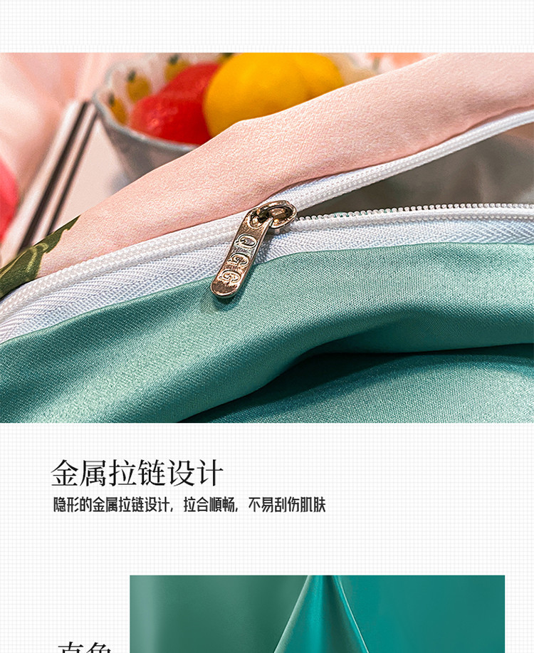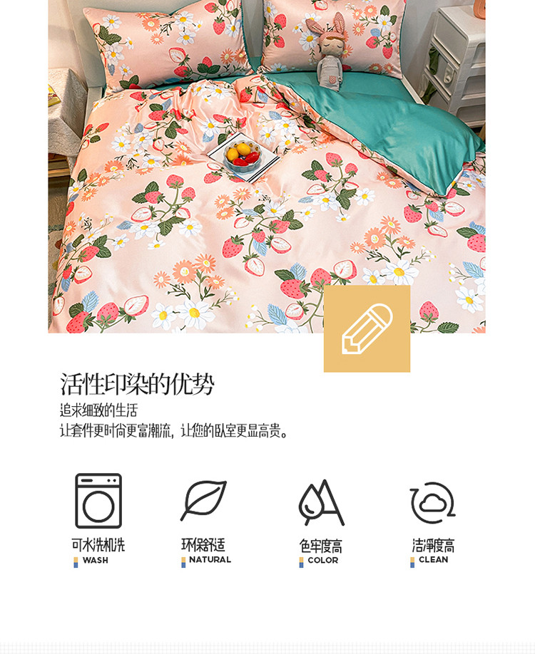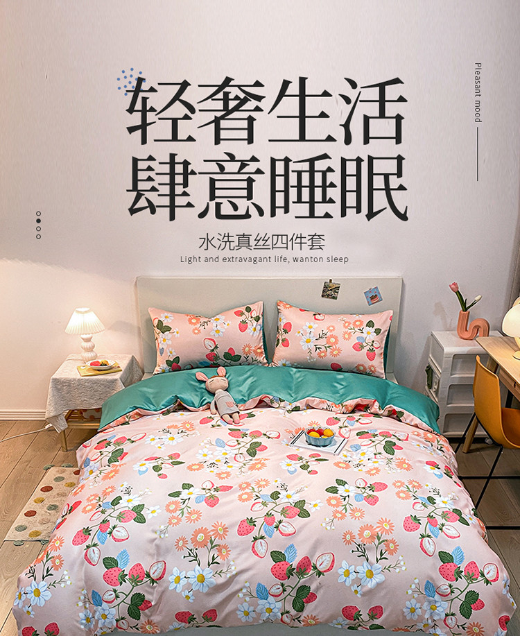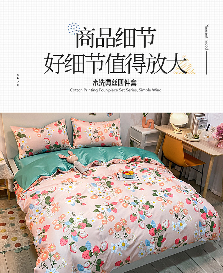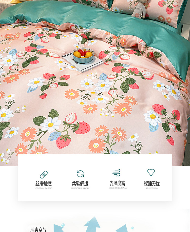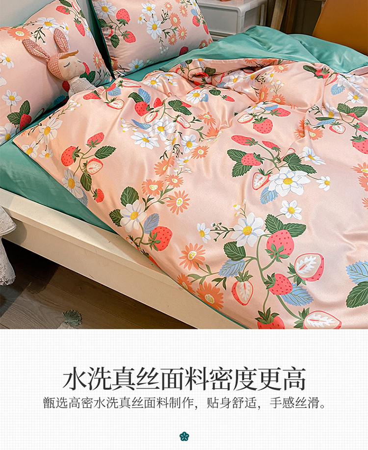 商品名称:琪格格纺织 2022新款水洗真丝印花四件套 草莓花园