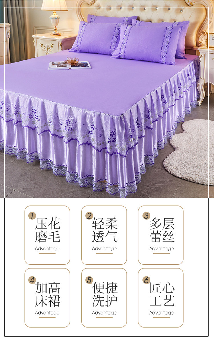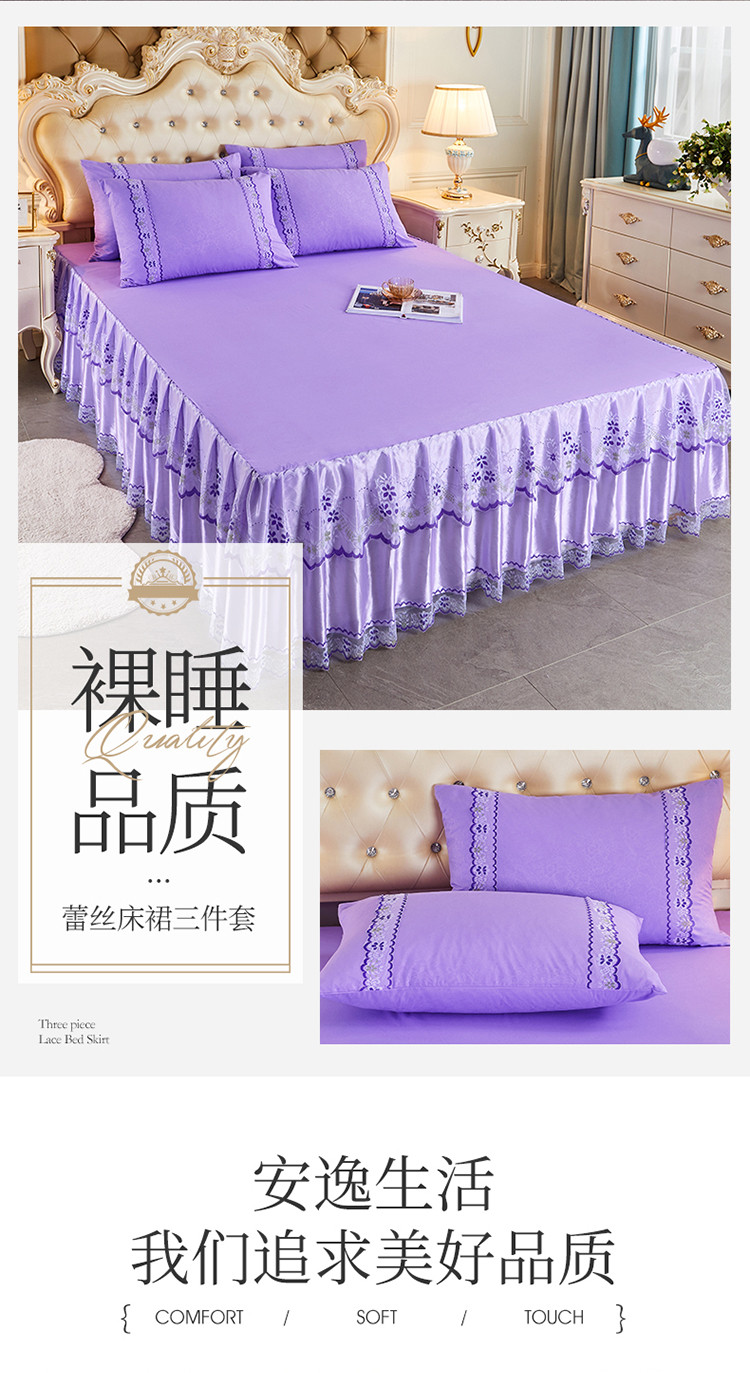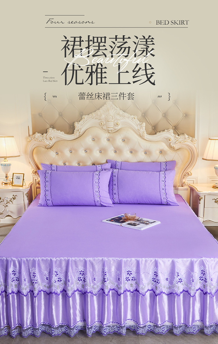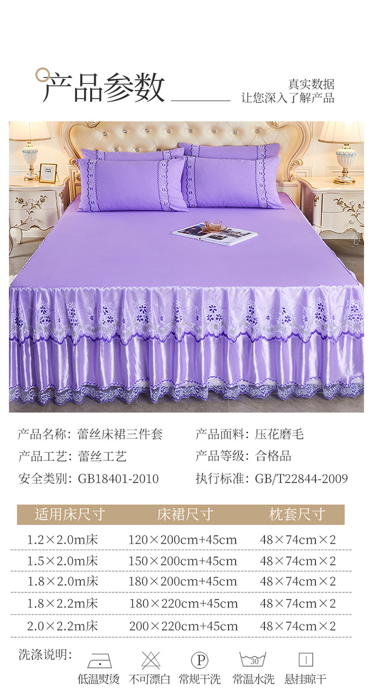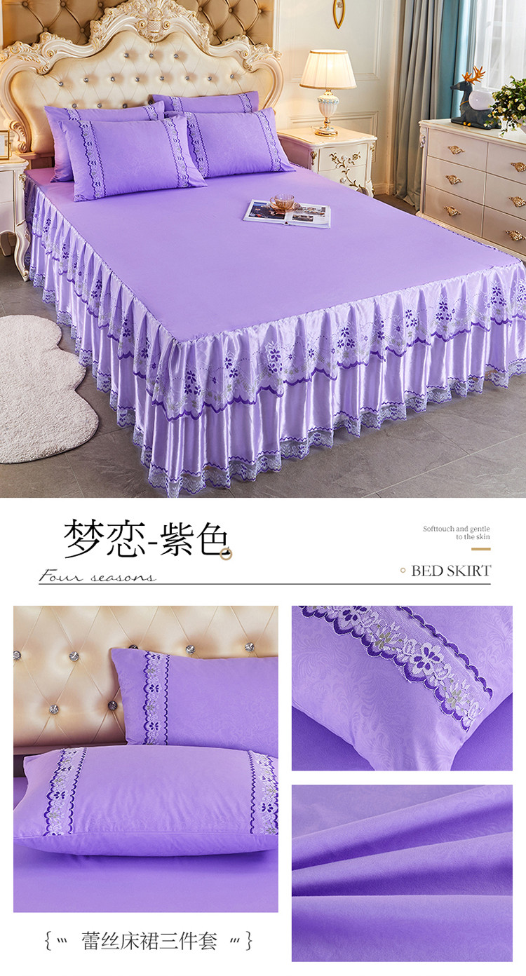 商品名称:情恒2025新款蕾丝床裙三件套梦恋款 梦恋-紫色