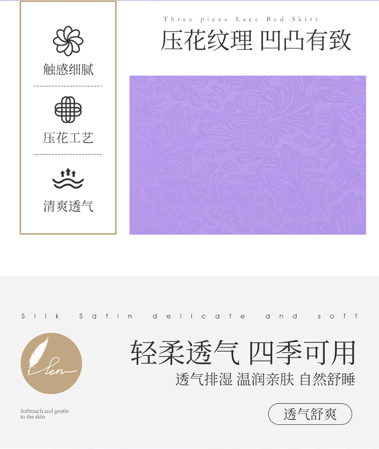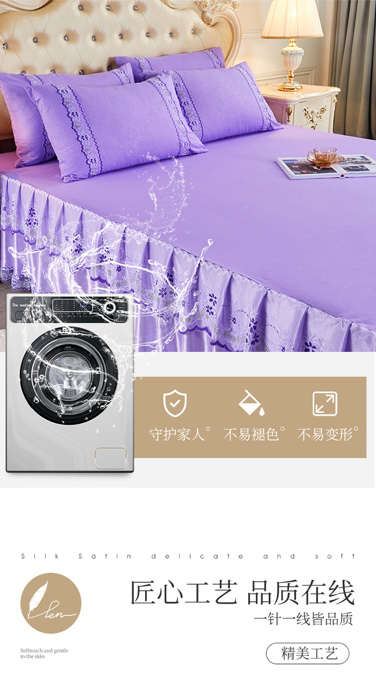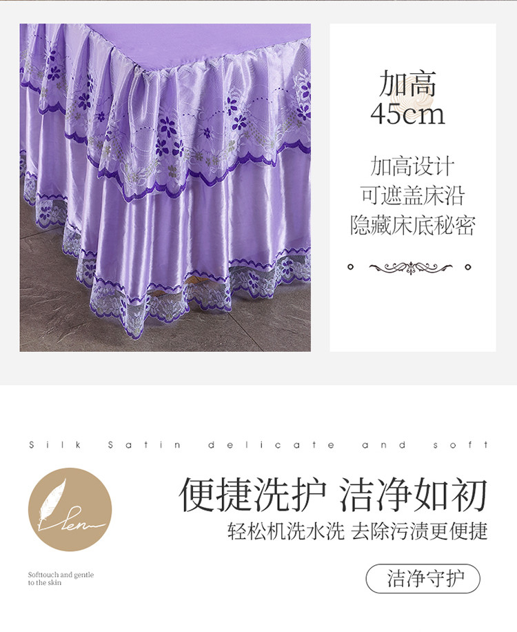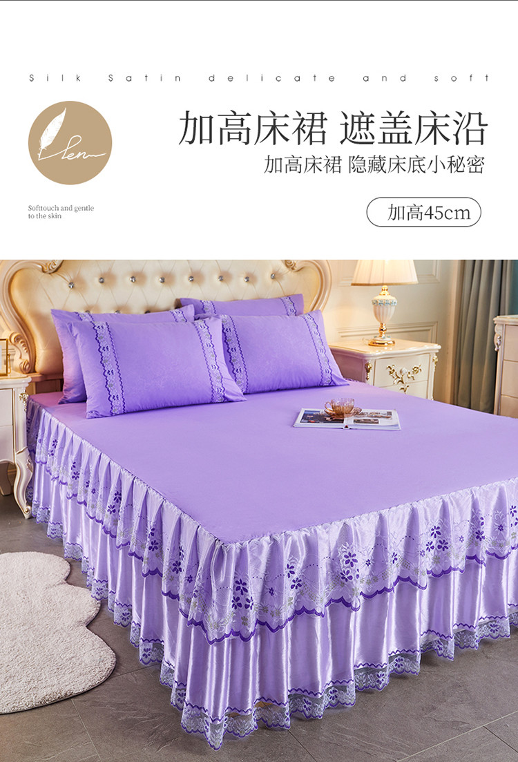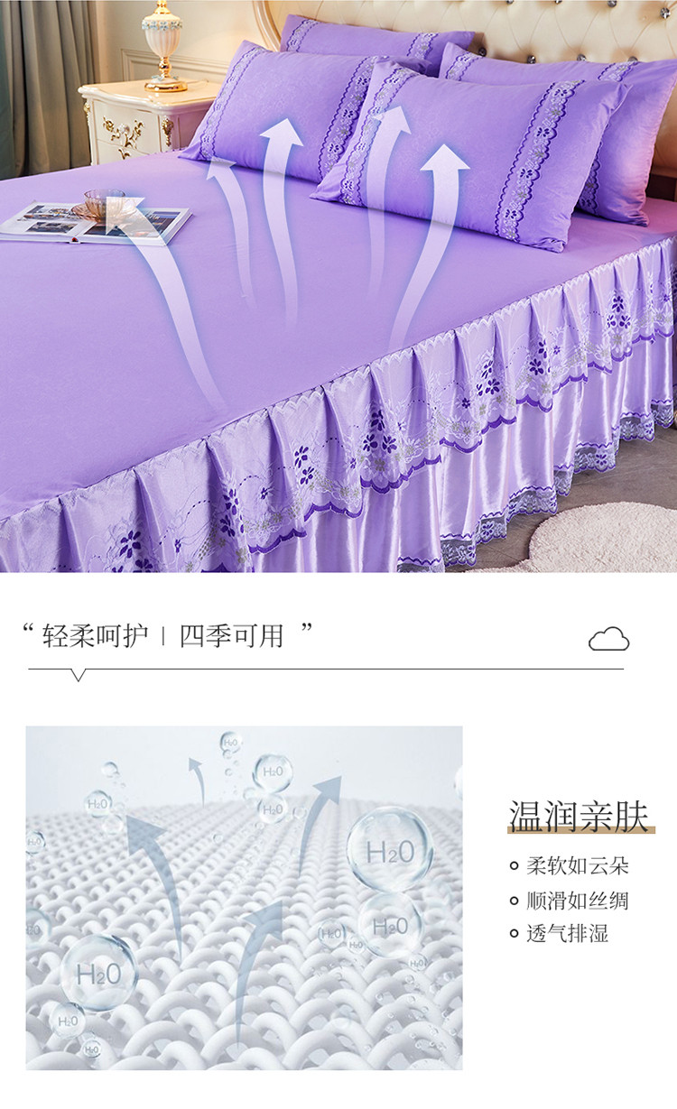 商品名称:情恒2025新款蕾丝床裙三件套梦恋款 梦恋-紫色
