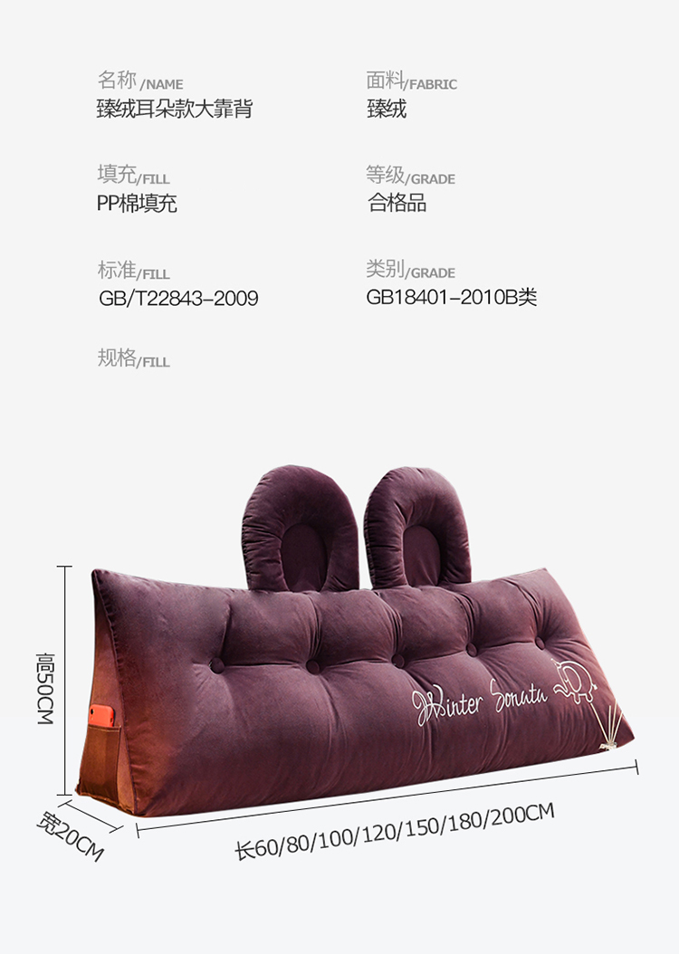 商品名称:一兰家纺 2021新款臻绒大耳朵靠垫大靠背 帝王紫