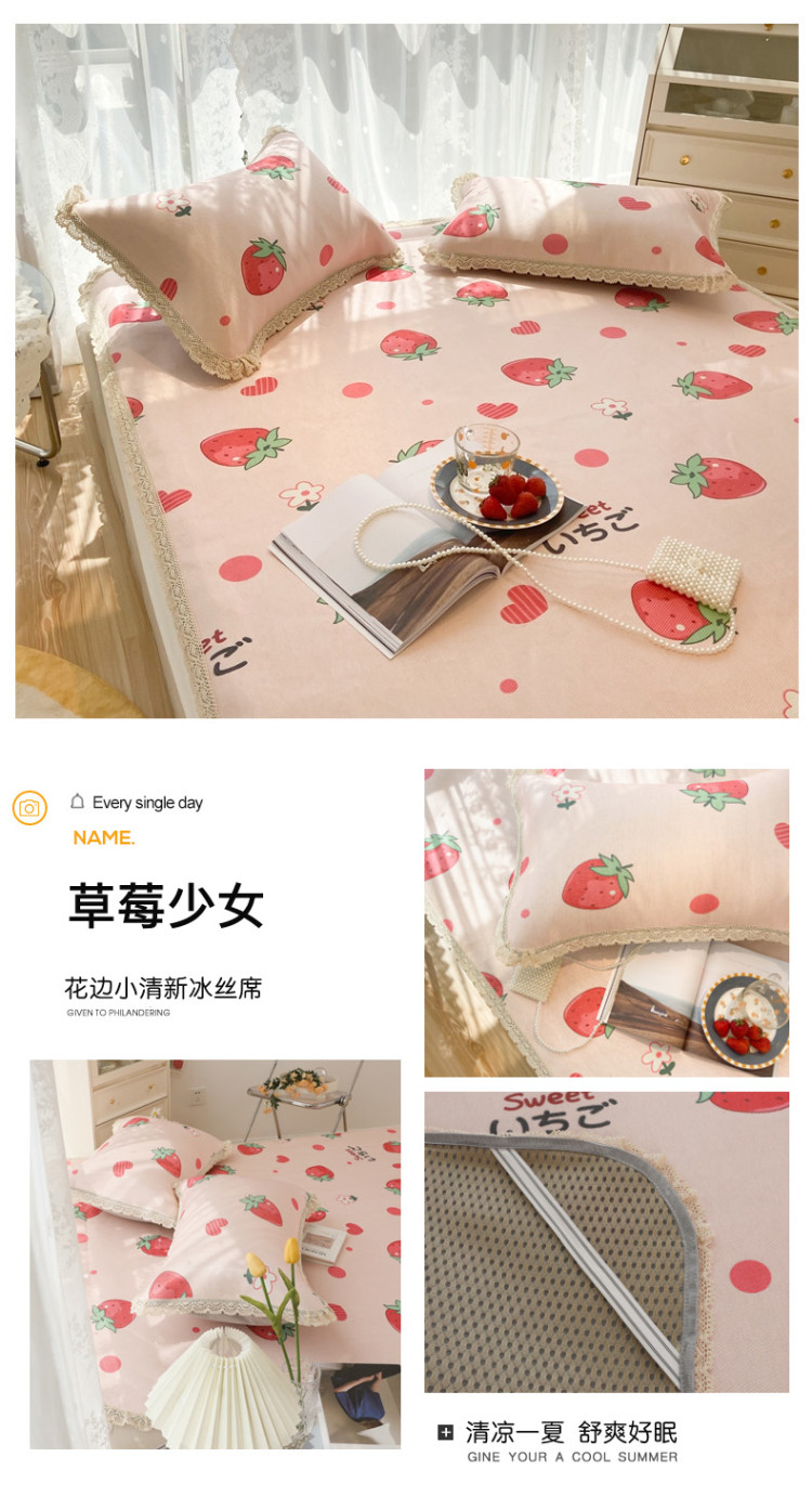 慕尚家纺 2025新款小碎花款凉席(一图) 草莓少女