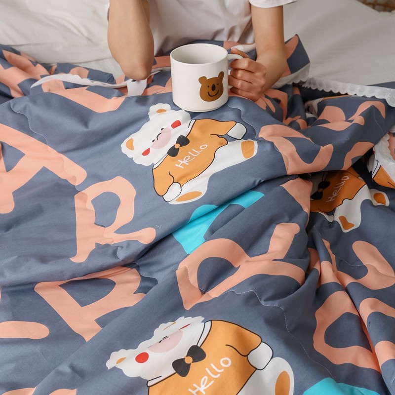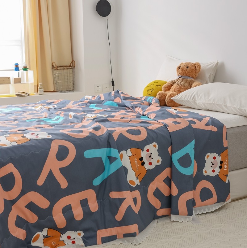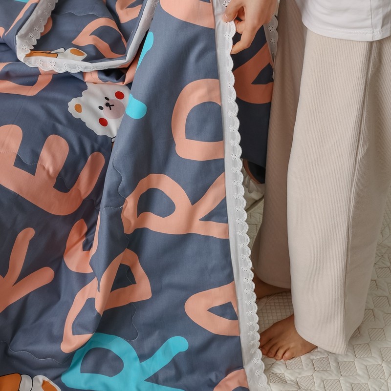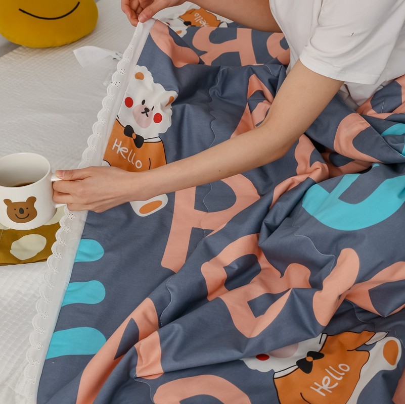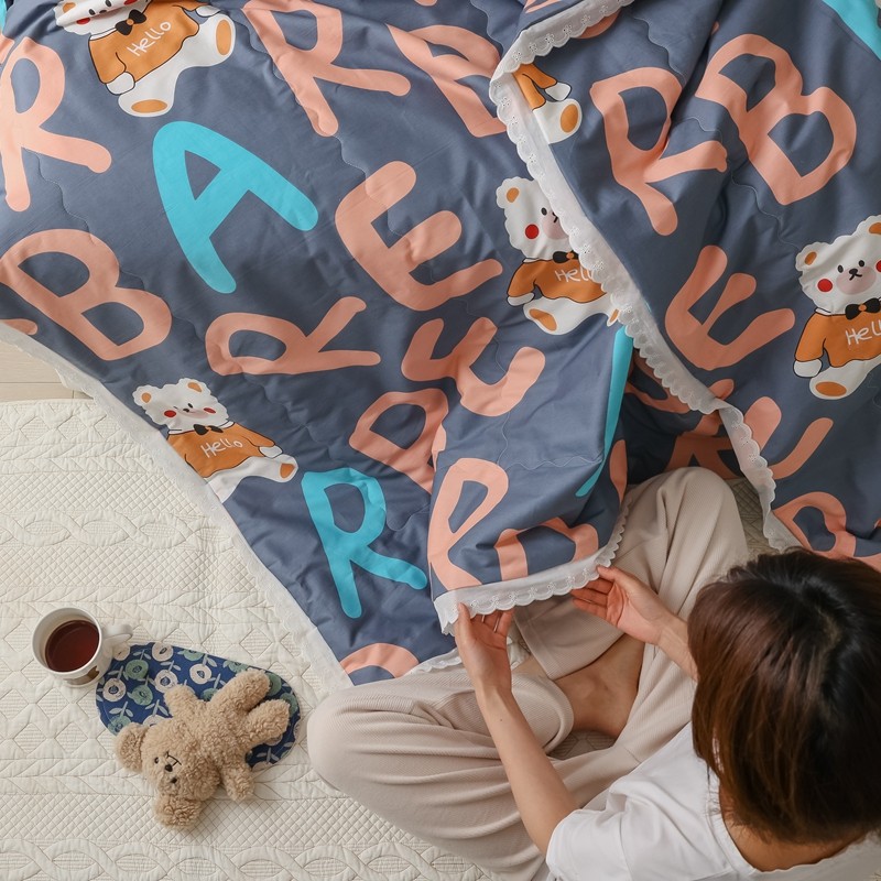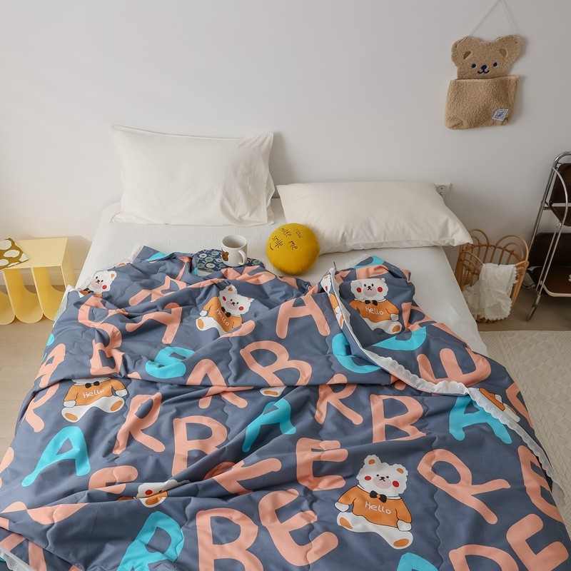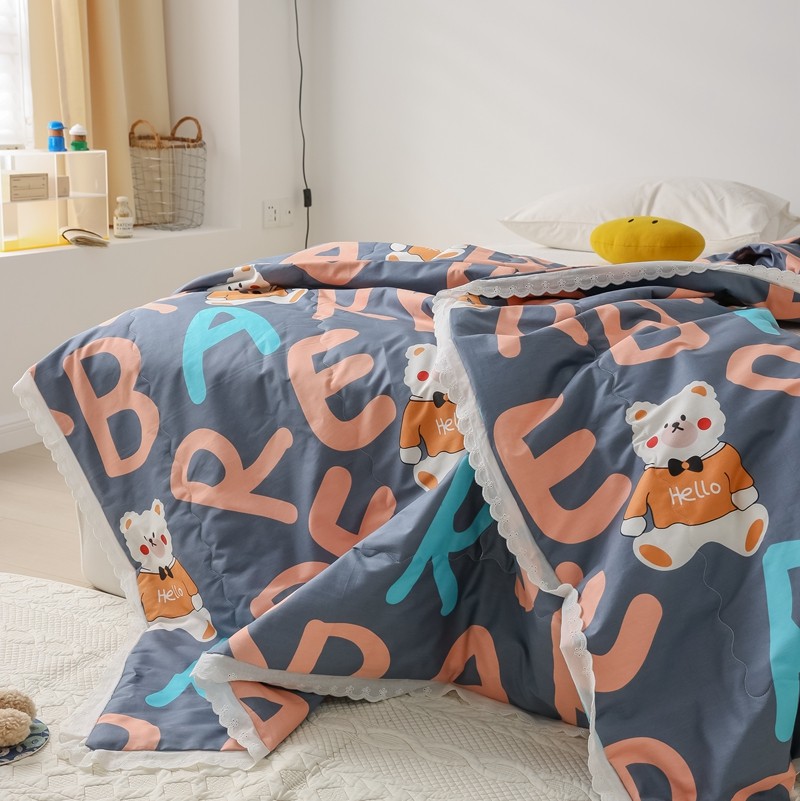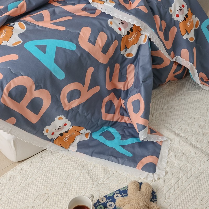 丽笙 2021新款全棉印花花边夏被 字母熊蓝
