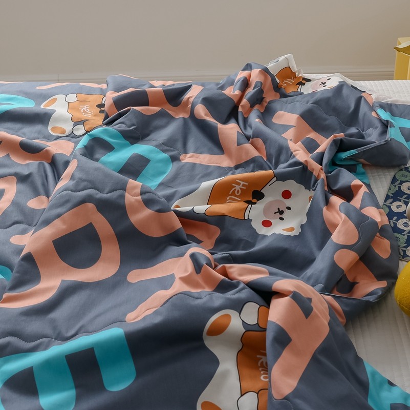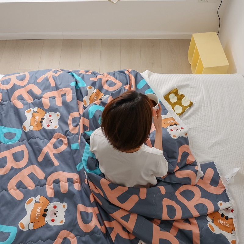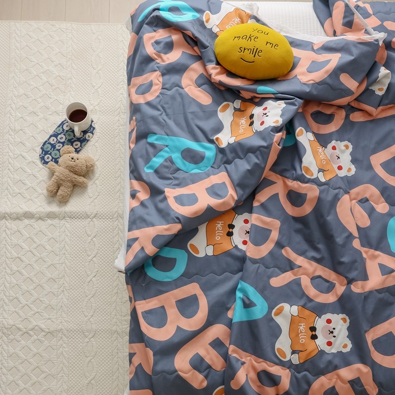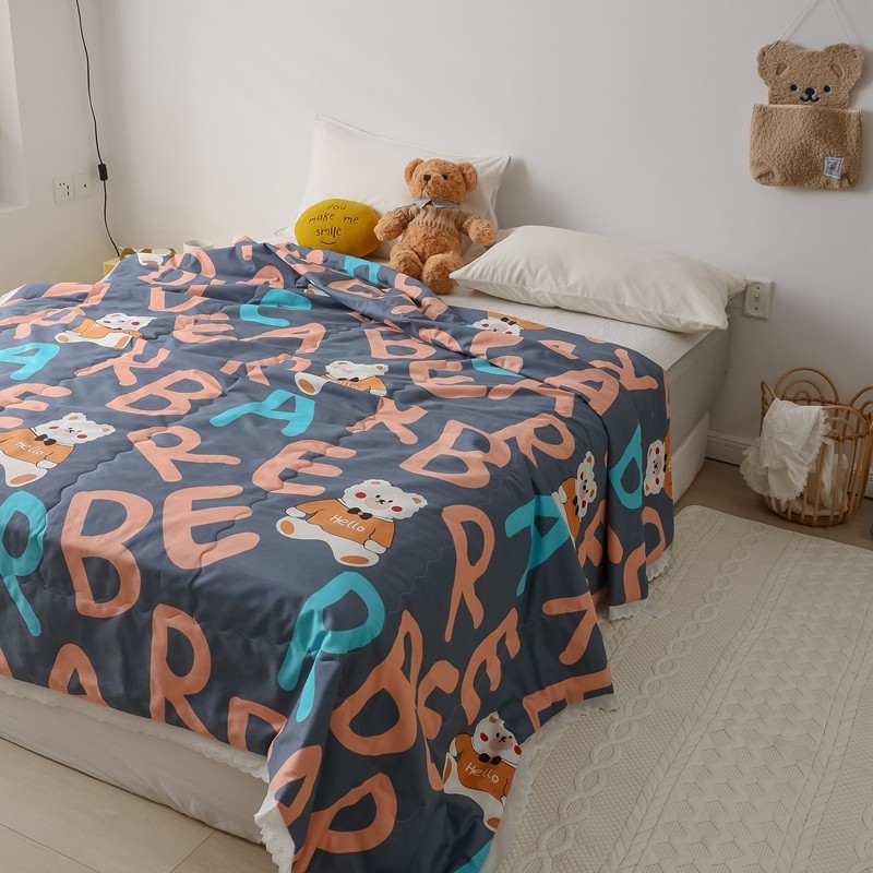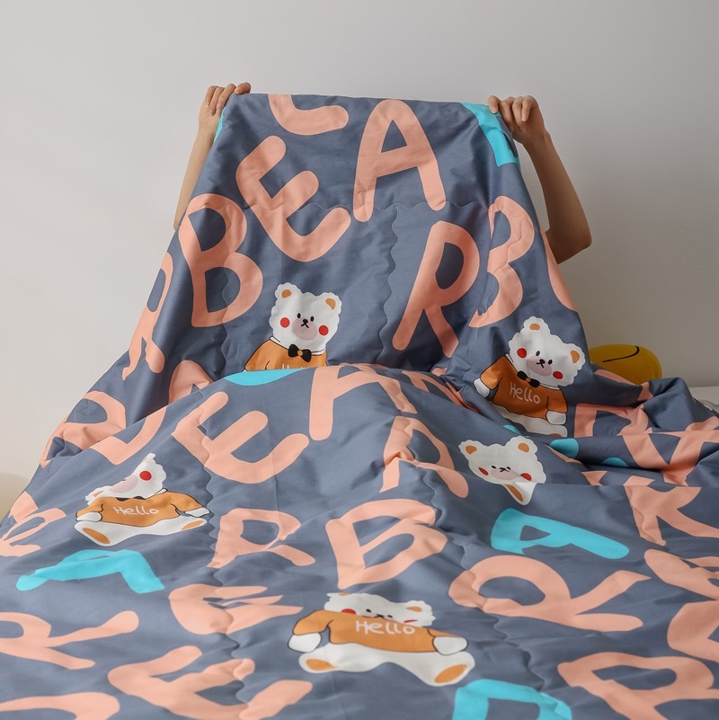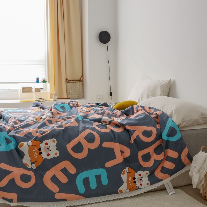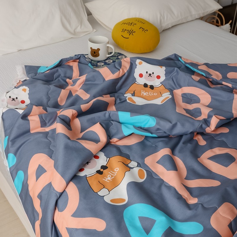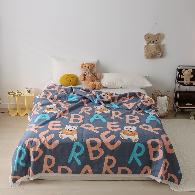 丽笙 2021新款全棉印花花边夏被 字母熊蓝
