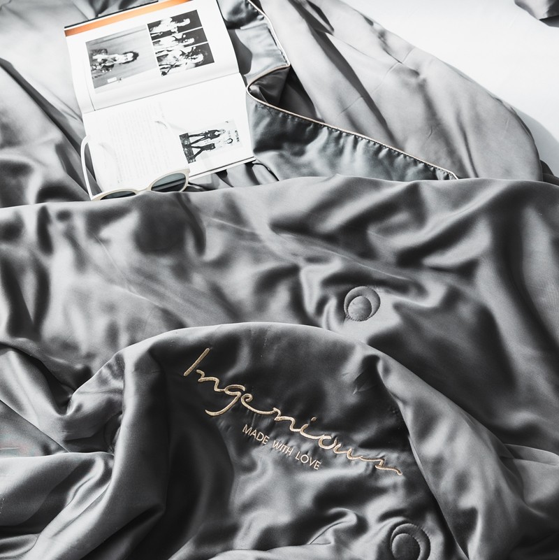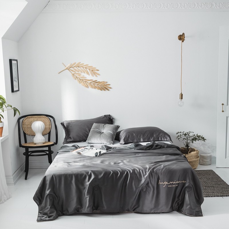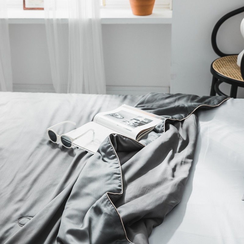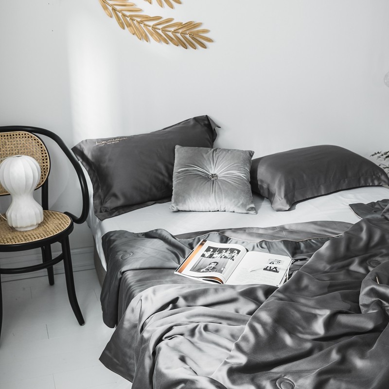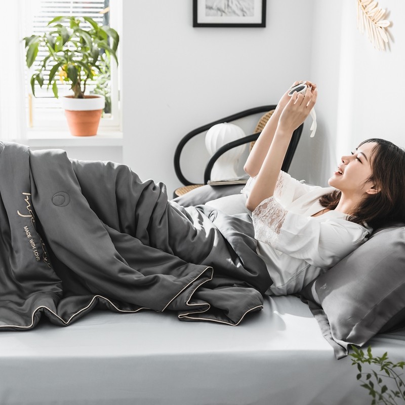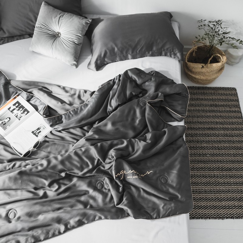 商品名称:丽笙 2021新款60兰精天丝素色刺绣系列夏被 深玄灰