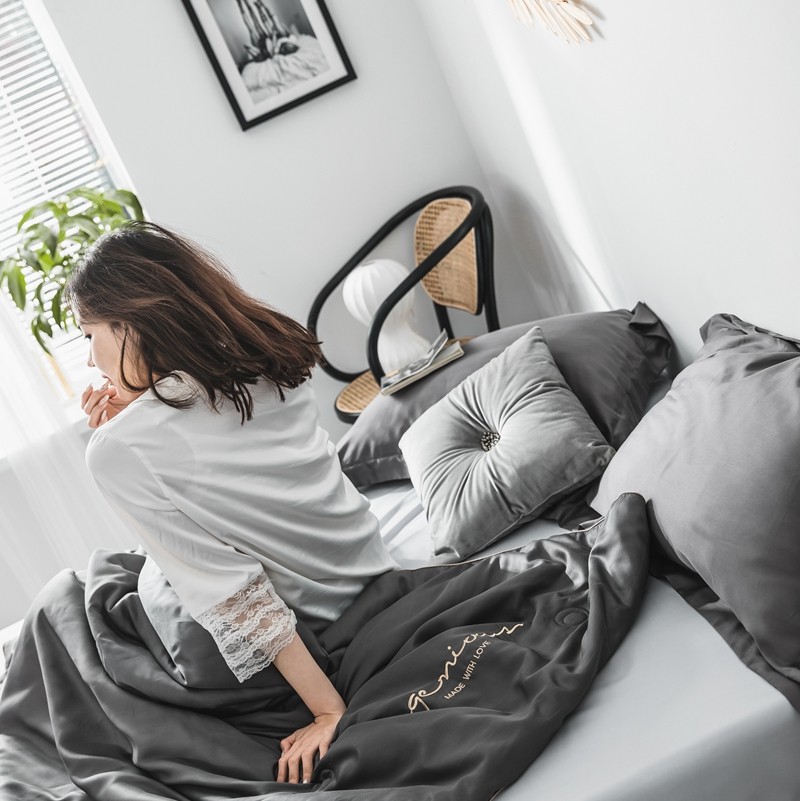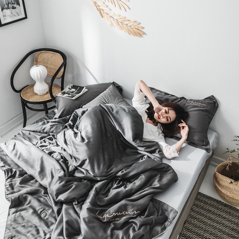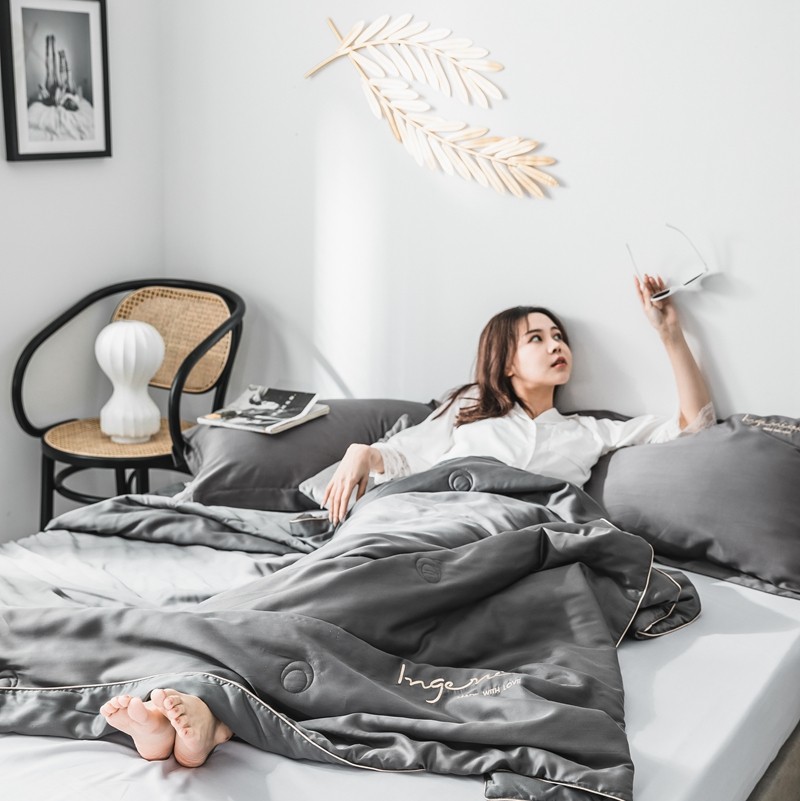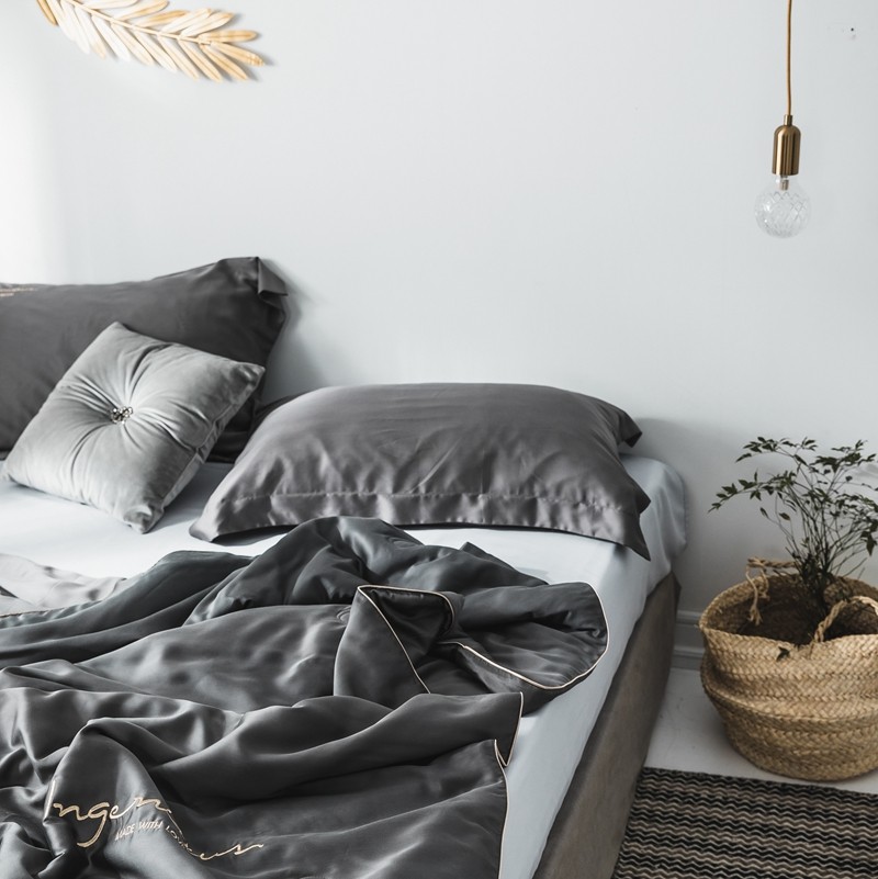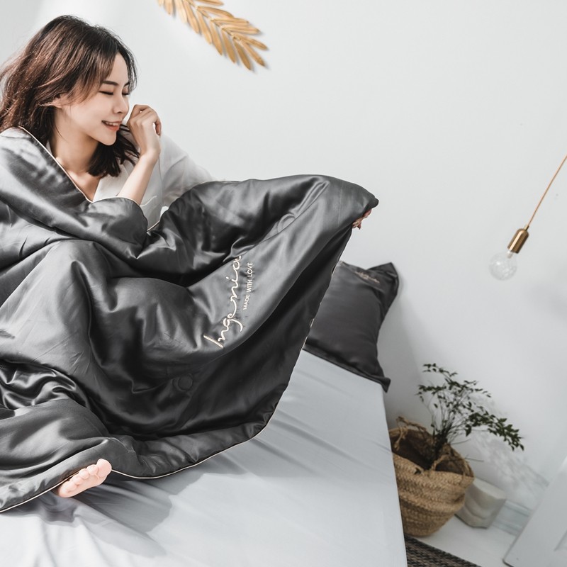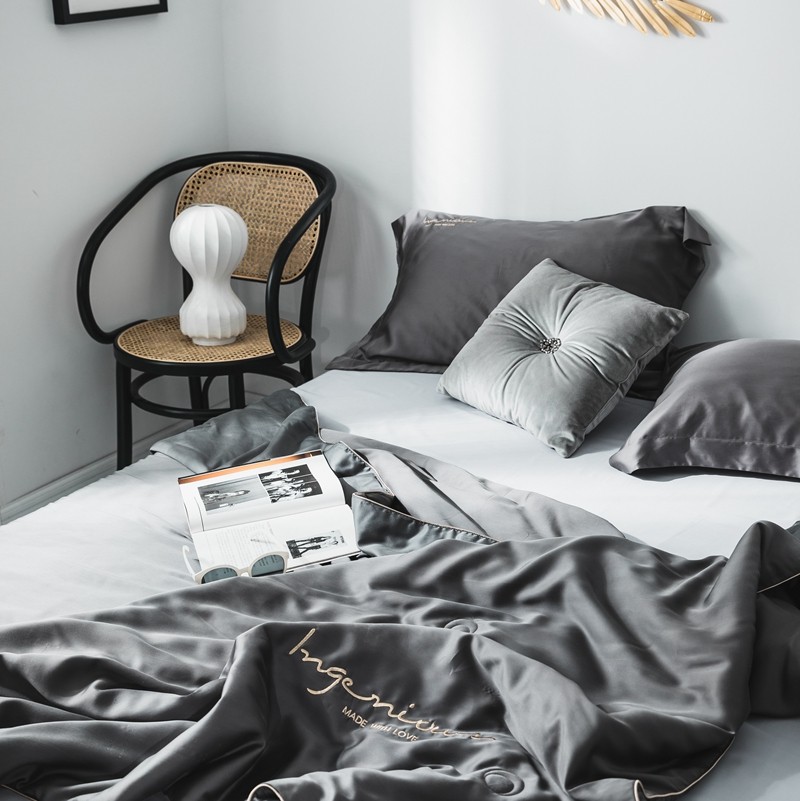 丽笙 2021新款60兰精天丝素色刺绣系列夏被 深玄灰
