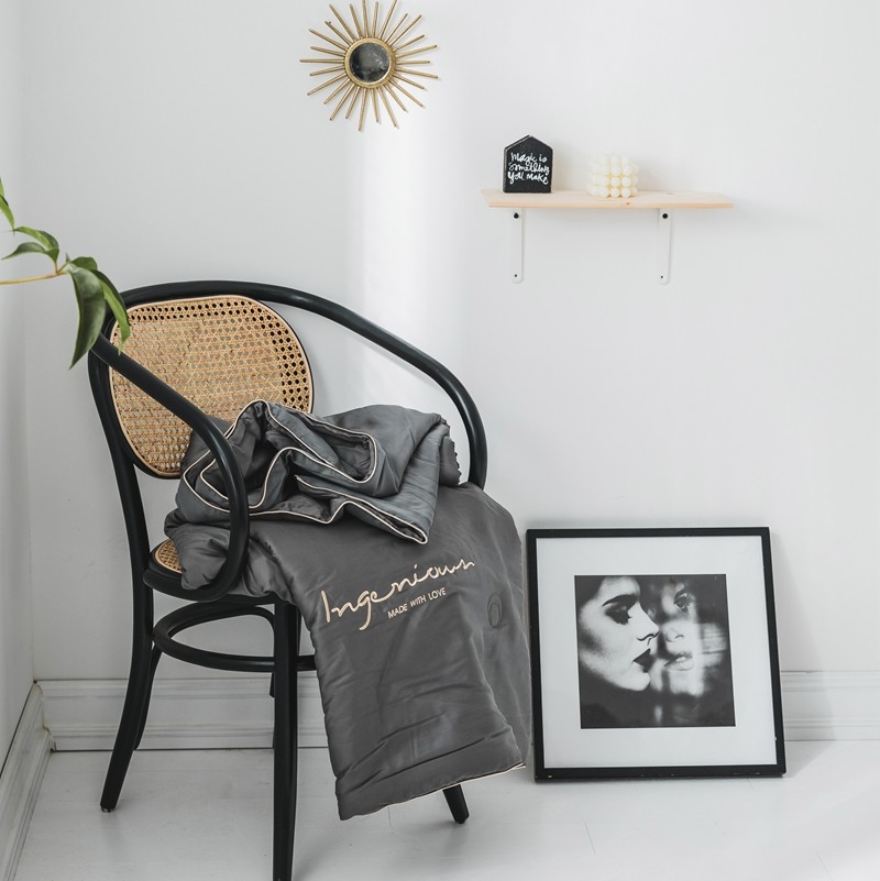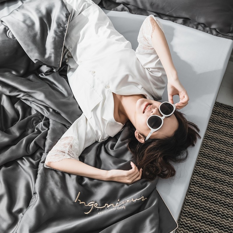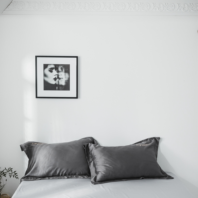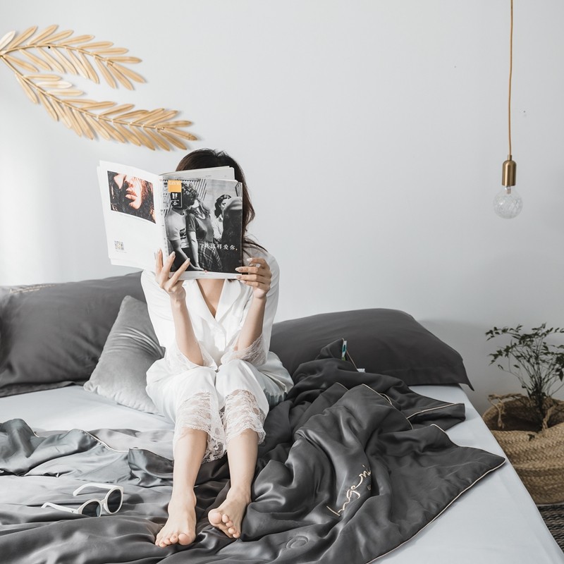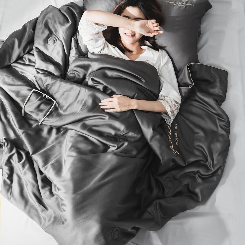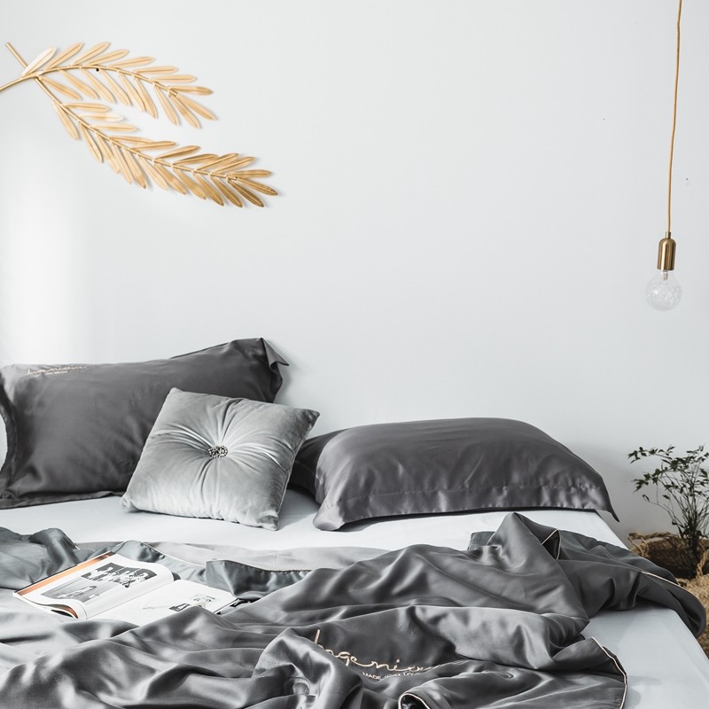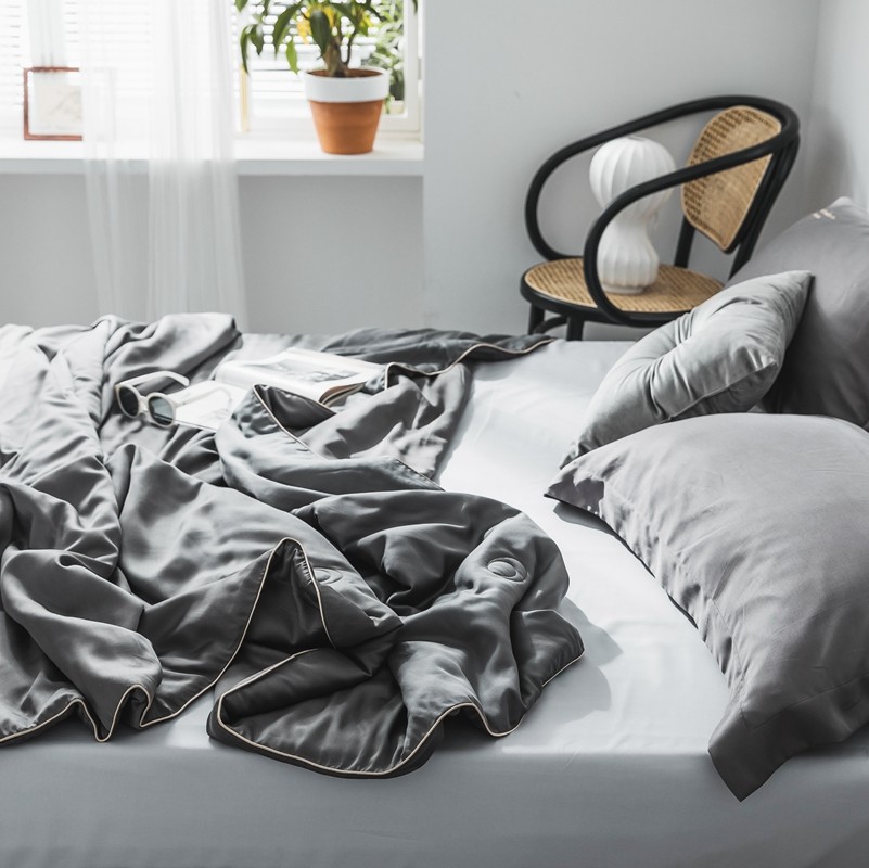 丽笙 2021新款60兰精天丝素色刺绣系列夏被 深玄灰