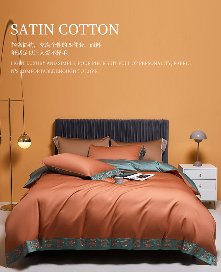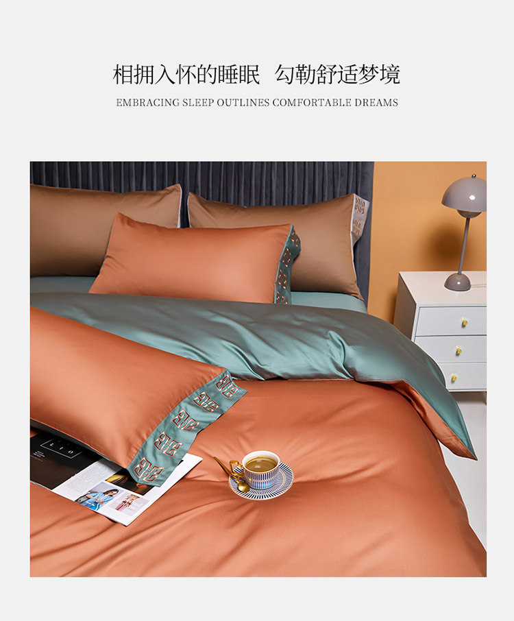 商品名称:爱缦2021宫系列100支长绒棉奥棉四件套棚拍图浆果色云衫绿