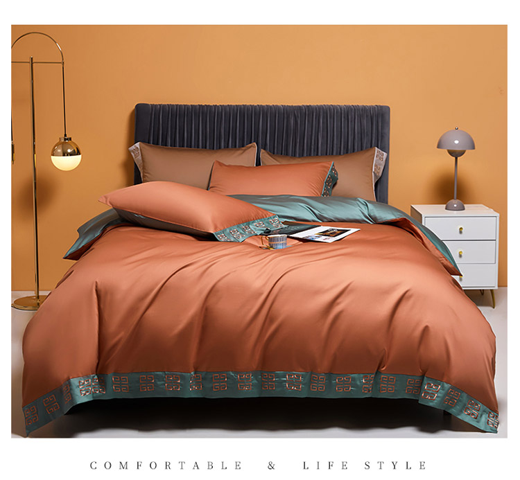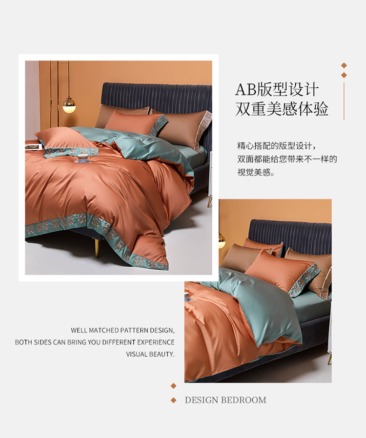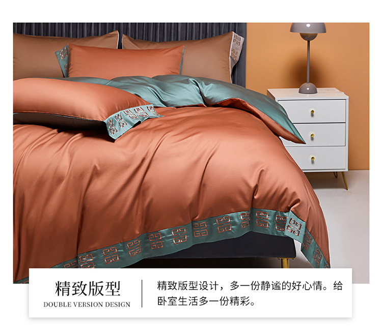爱缦2021宫系列100支长绒棉奥棉四件套棚拍图浆果色云衫绿
