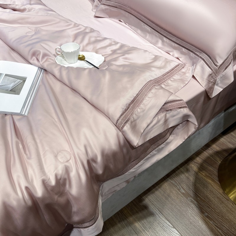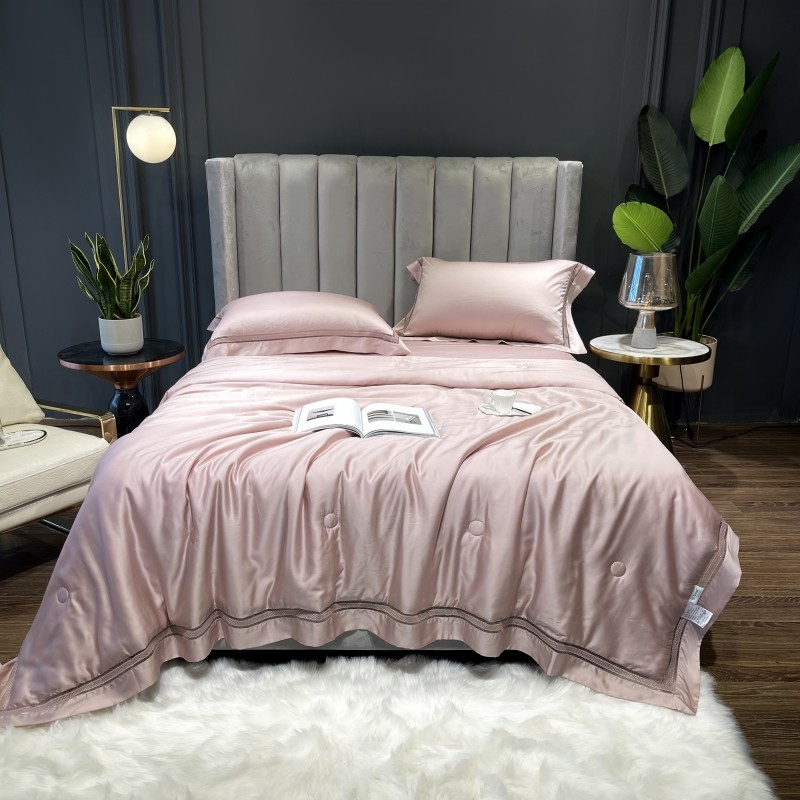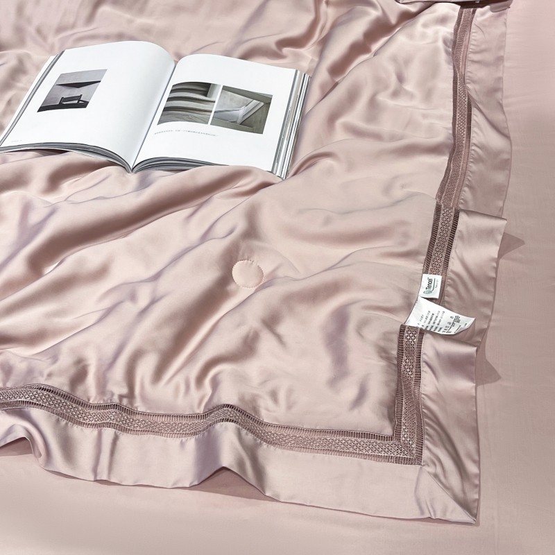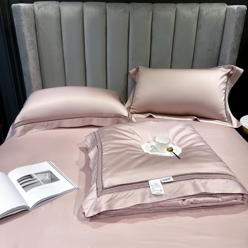 当前位置: 91家纺网 > 商品网购 > 被子 > 莱赛尔夏被 > 榻尚家居2021新款天丝夏被床单款床笠款四件套夏粉
