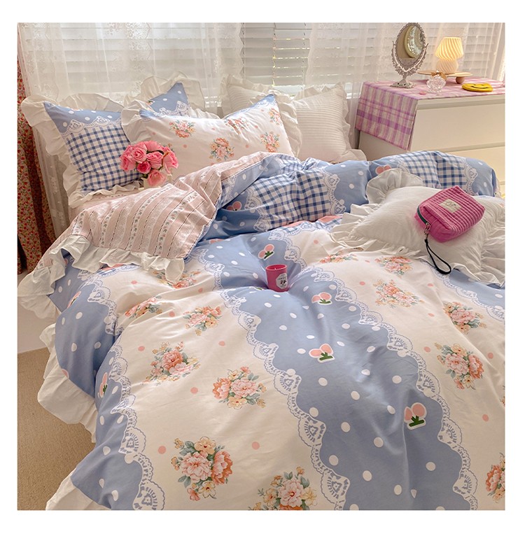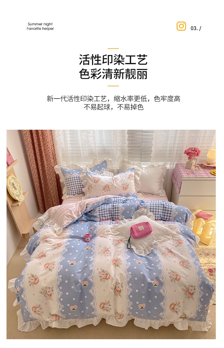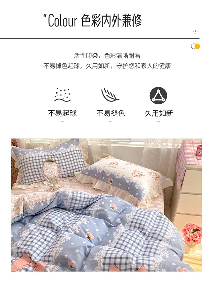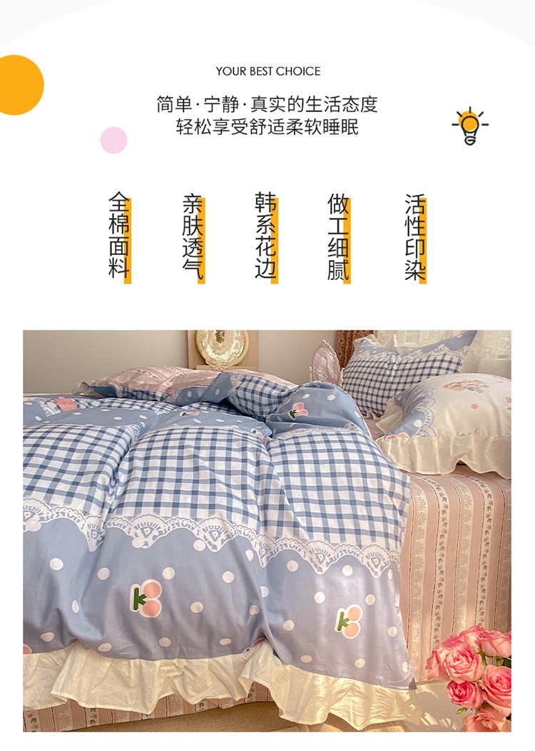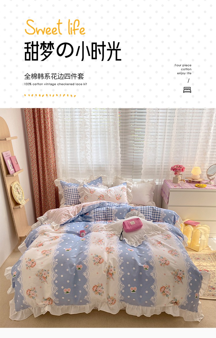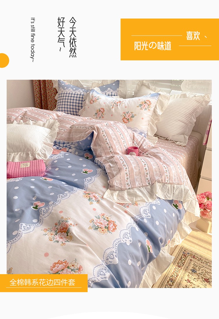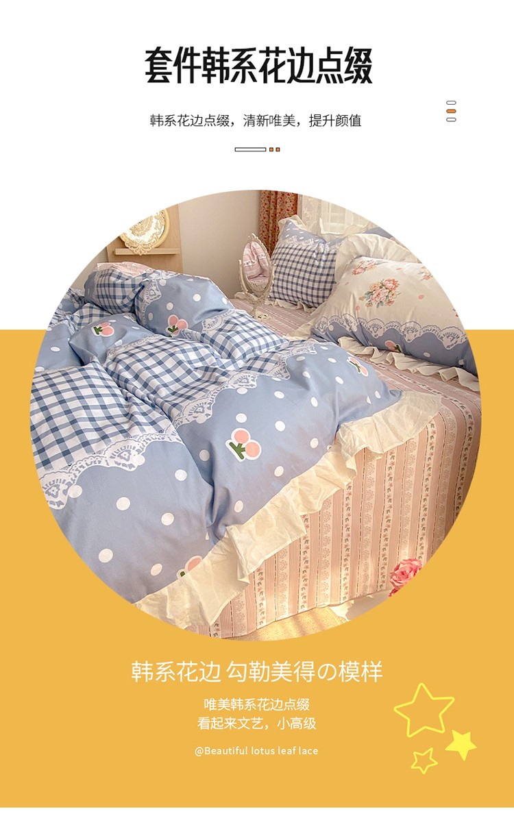 商品名称:雅居纺 2022新款全棉韩版花边四件套 蝴蝶结爱恋