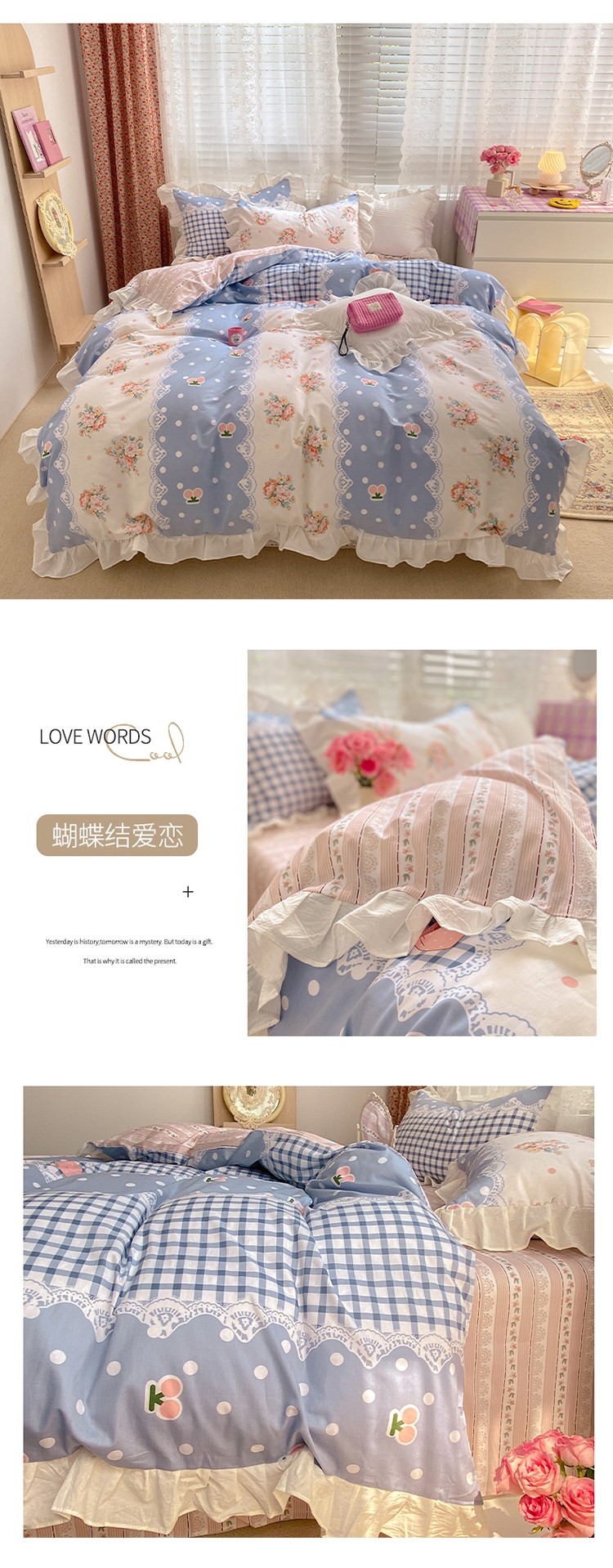 雅居纺 2022新款全棉韩版花边四件套 蝴蝶结爱恋