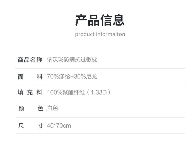 当前位置: 91家纺网 > 商品网购 > 枕头/枕芯/保健枕/颈椎枕 > 普通枕芯 > 多点家居 2021新款依沃珑防螨抗过敏枕40*70/只 白色
