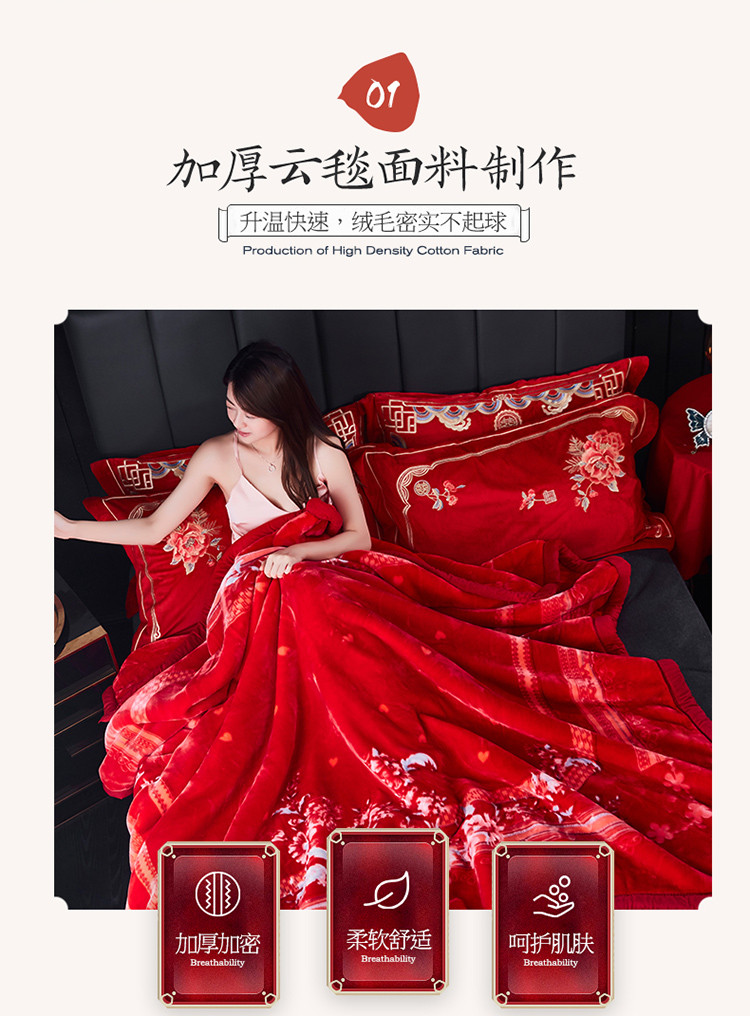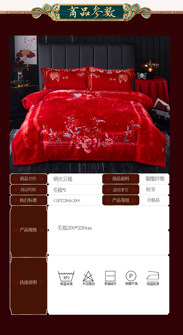 商品名称:凯轩毛毛毯毯子 2024新款婚庆云毛毯毯子 胭脂红