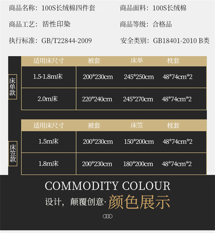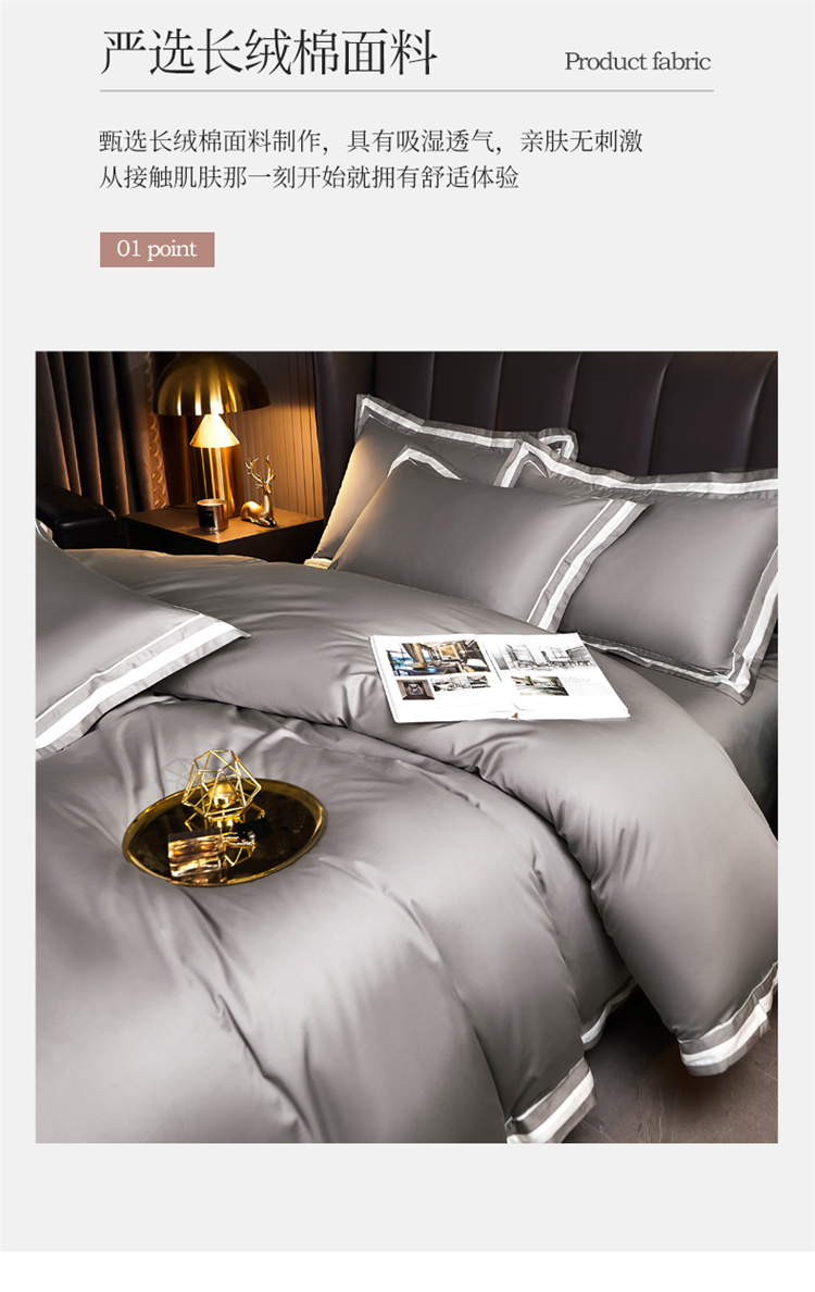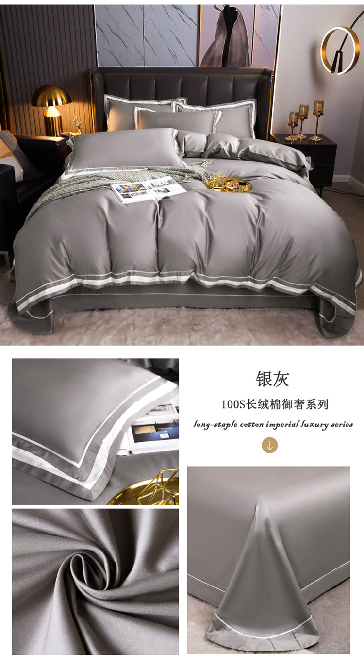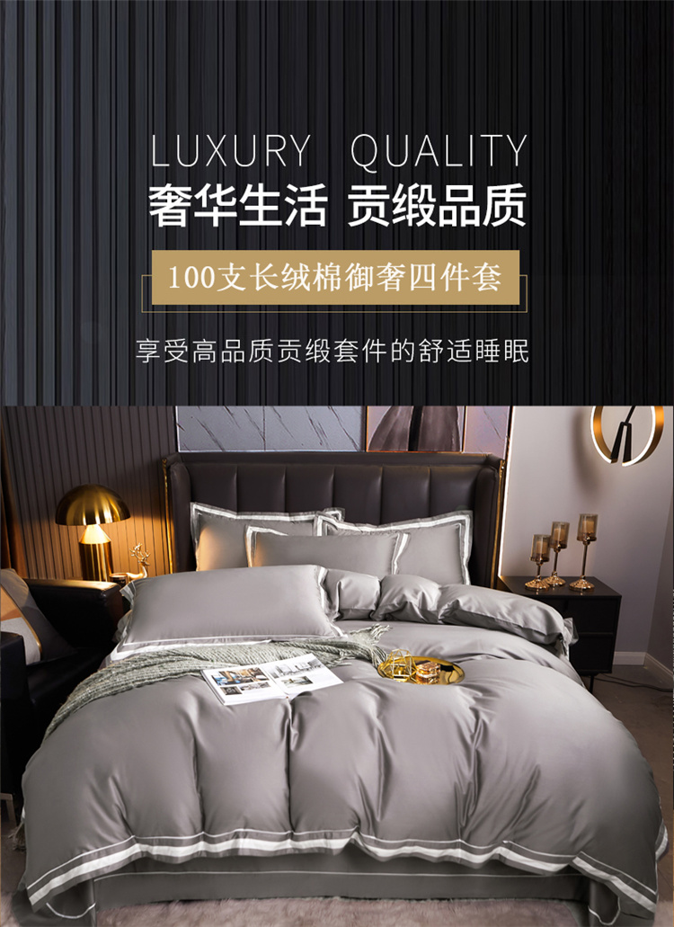 商品名称:芊寻家居 2024新款100支长绒棉御奢系列四件套 银灰