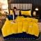 牵梦萦纯色加厚牛奶绒法莱绒四件套秋冬季加绒床裙款 黄色+宝蓝