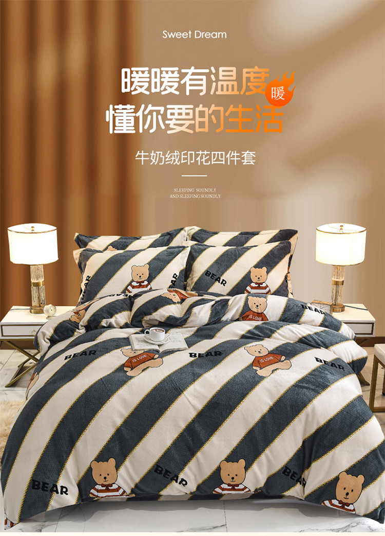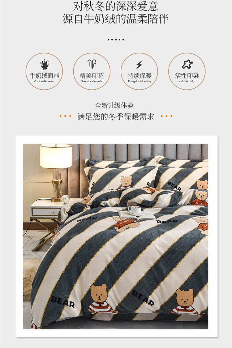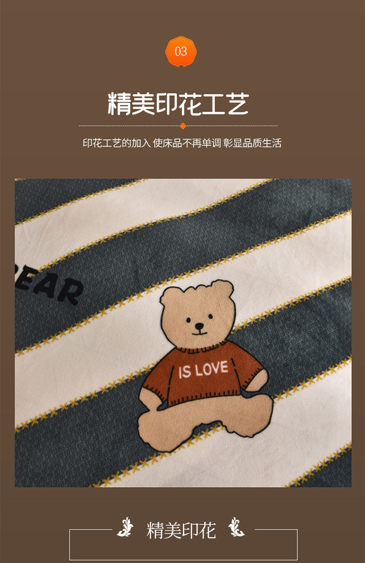 当前位置: 91家纺网 > 商品网购 > 床品套件 > 四件套 > 牛奶绒四件套 > 锦罗绣 2021新款牛奶绒印花四件套 熊宝宝