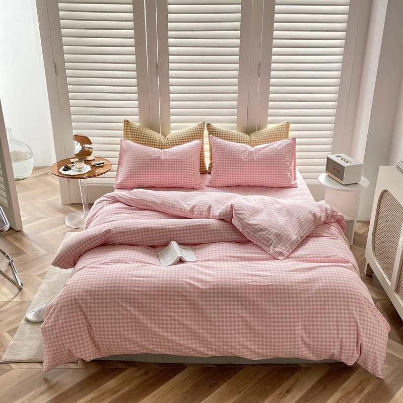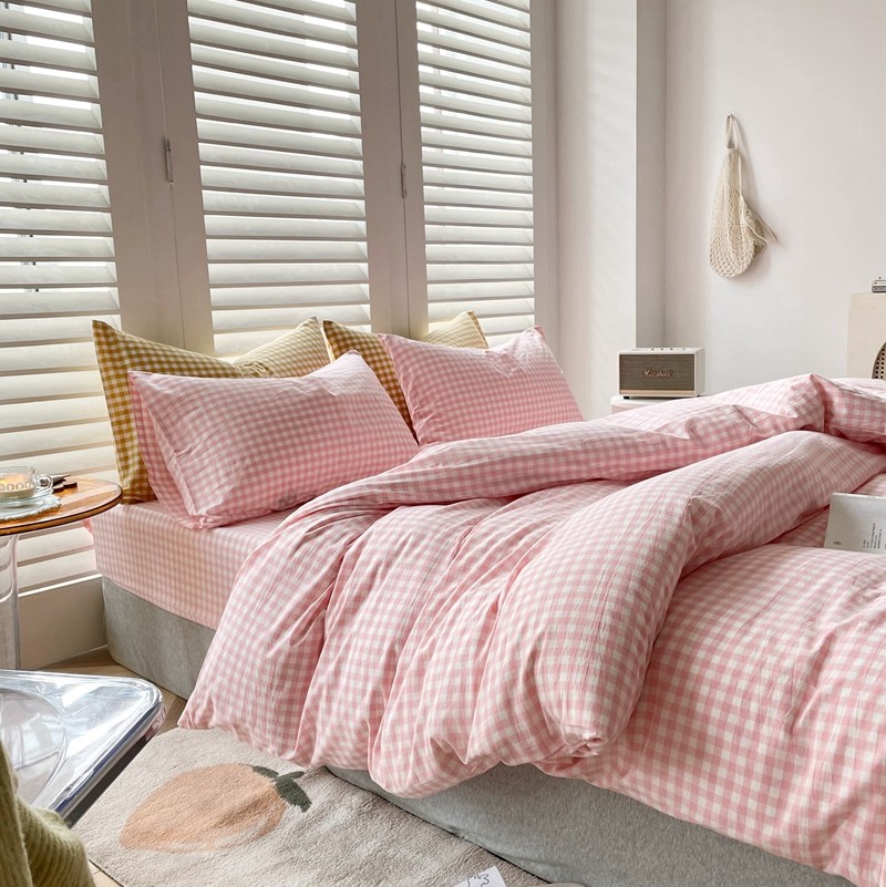 (总)雅珺 2021新款色织全棉水洗棉四件套AB版,草莓格,粉柠格,芒果格,青柠格