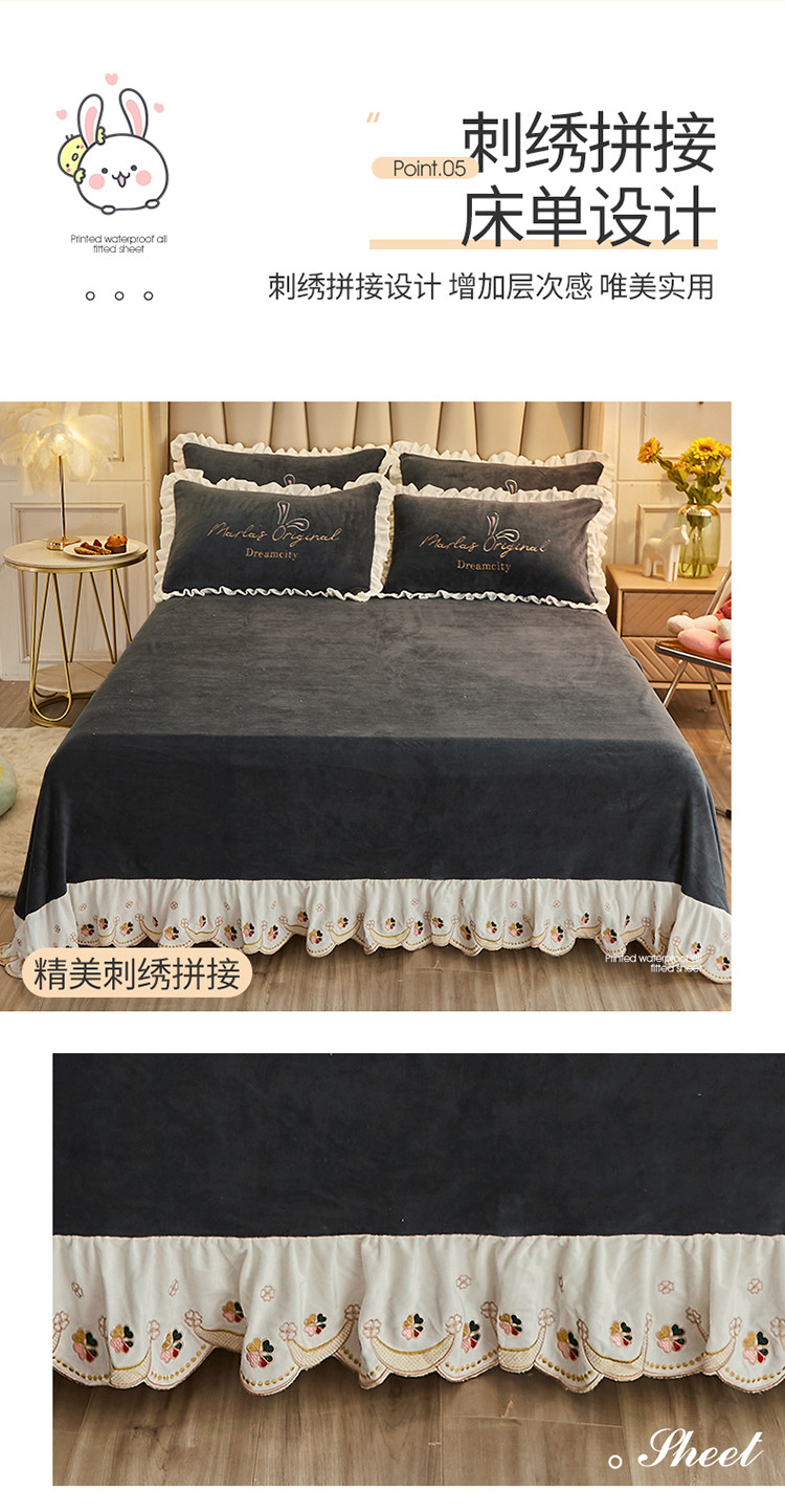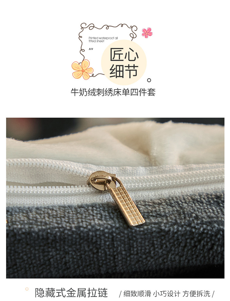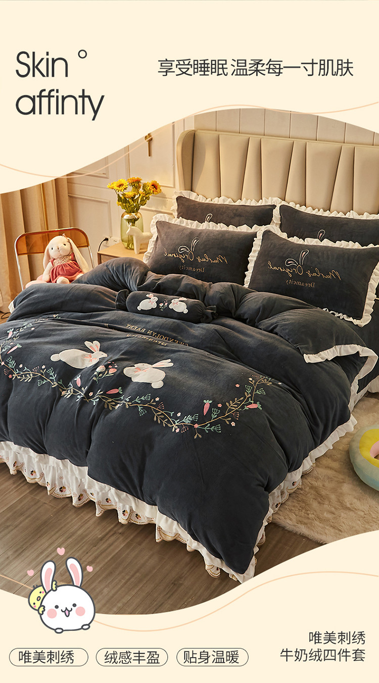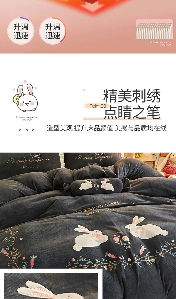 宜凡 2021新款牛奶绒绣花兔床单四件套 萌萌兔-雅灰