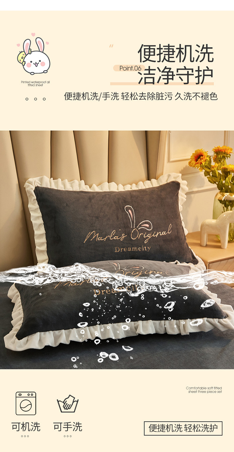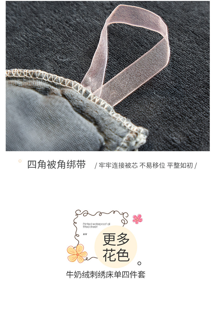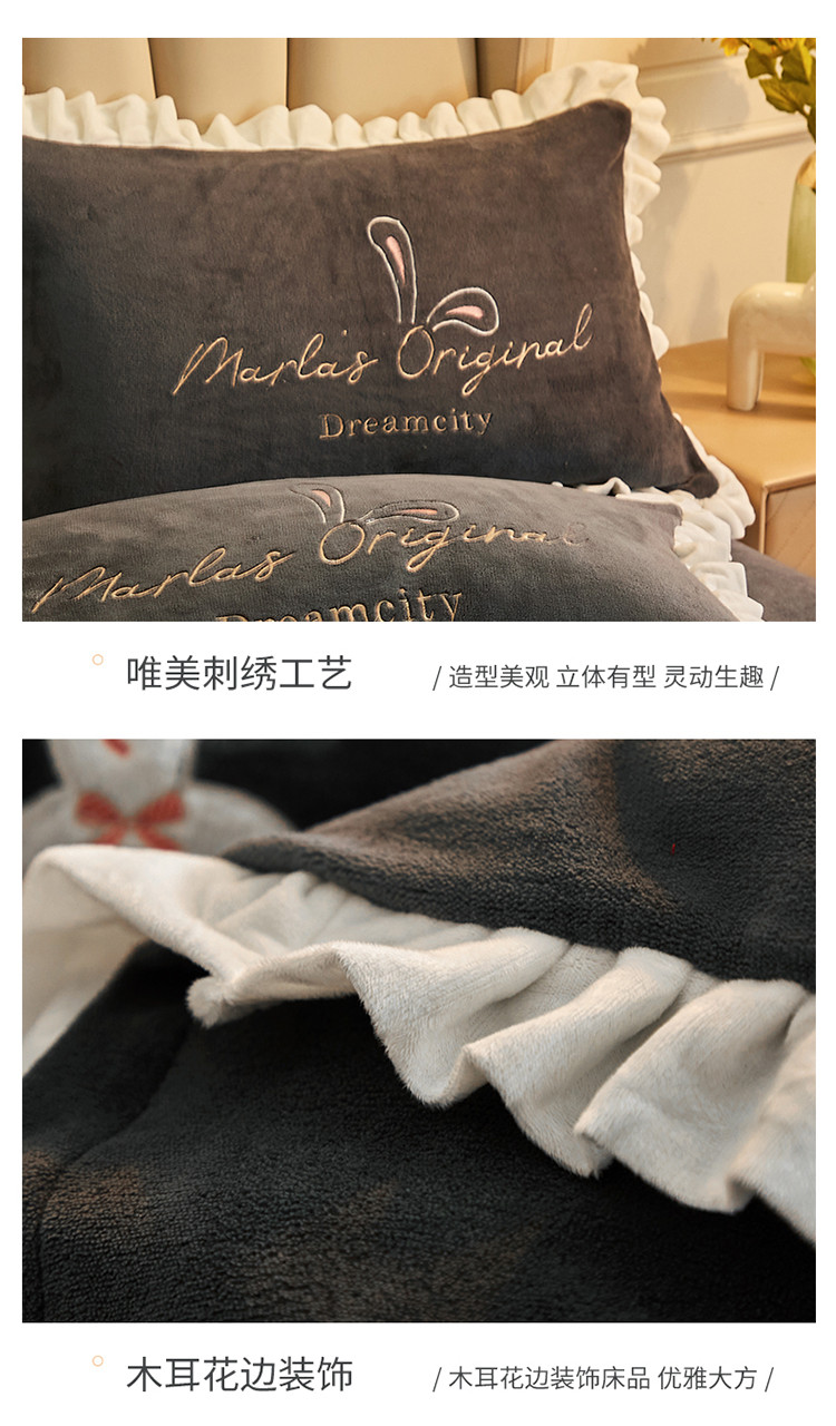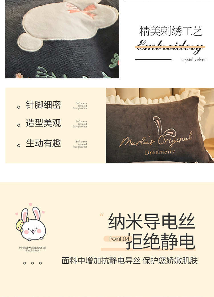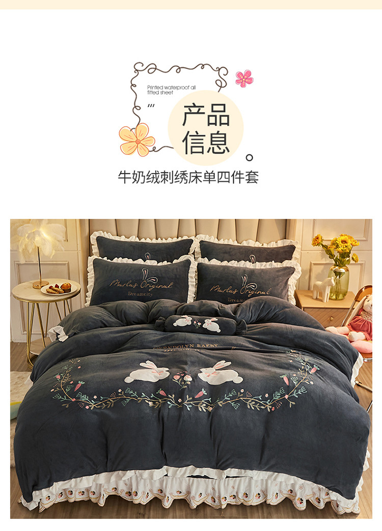 商品名称:宜凡 2021新款牛奶绒绣花兔床单四件套 萌萌兔-雅灰