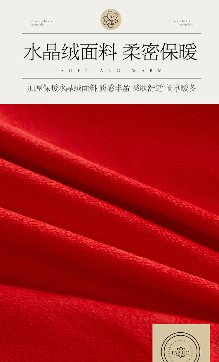 (总)宜凡家纺 2025新款婴儿绒压花全夹棉床盖四件套,韵雅-中国红,韵雅-黑天鹅