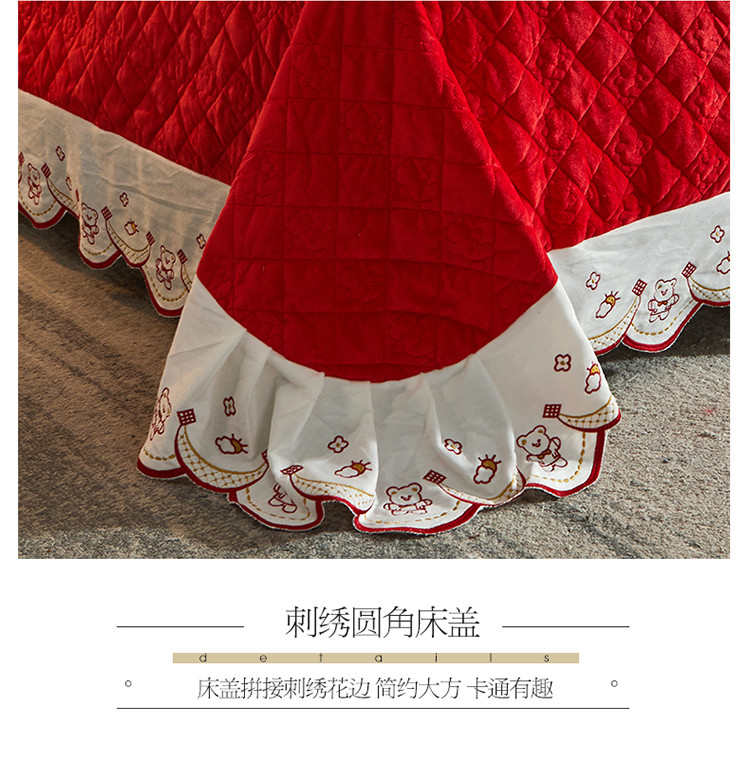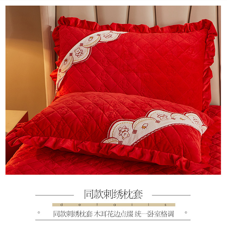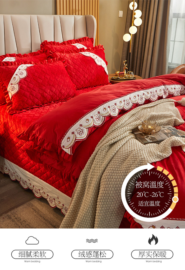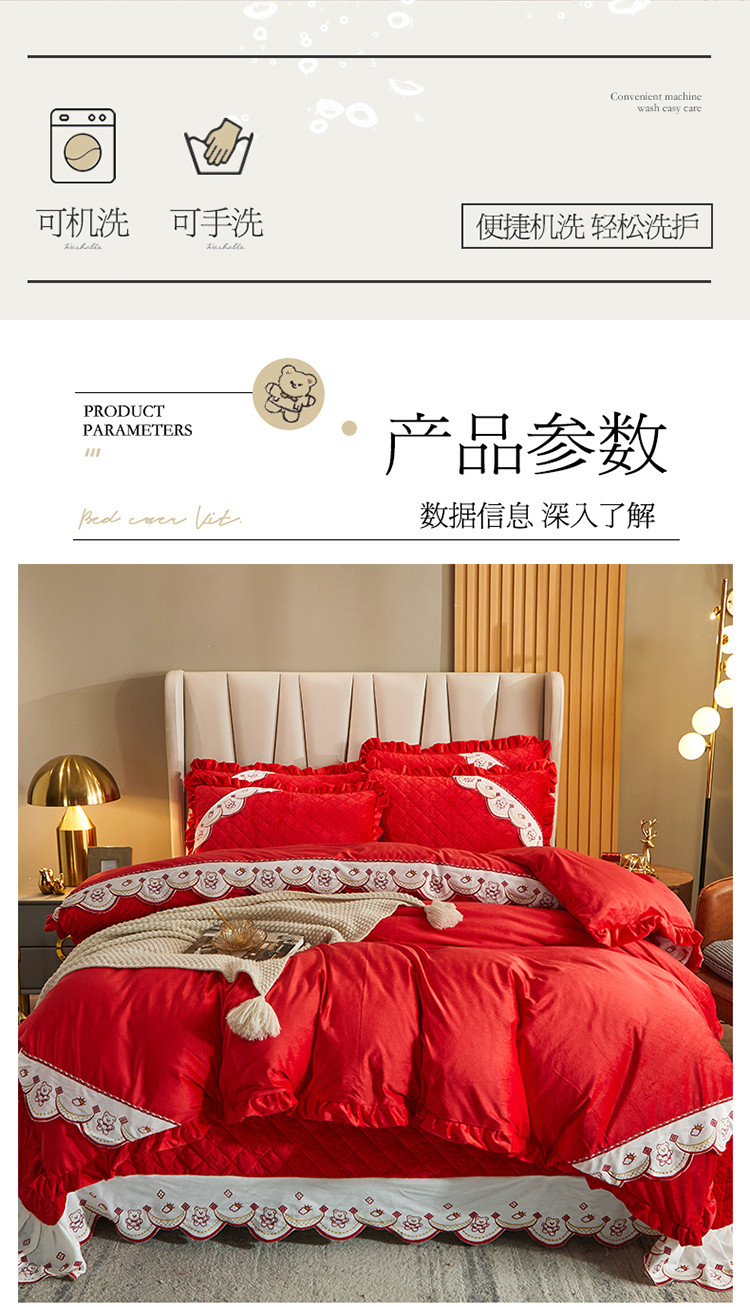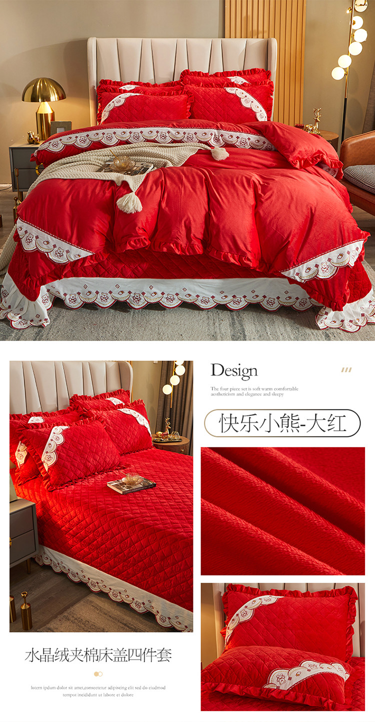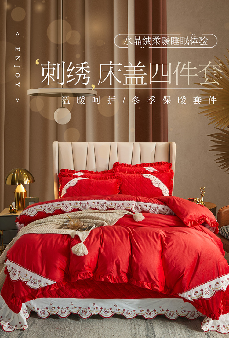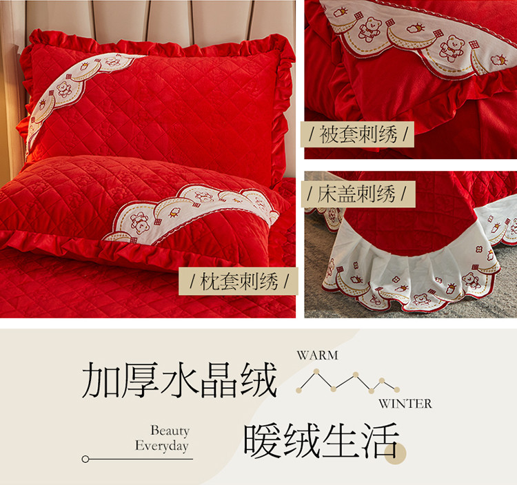 (总)宜凡家纺 2025新款婴儿绒压花全夹棉床裙四件套,韵雅-中国红,韵雅-黑天鹅