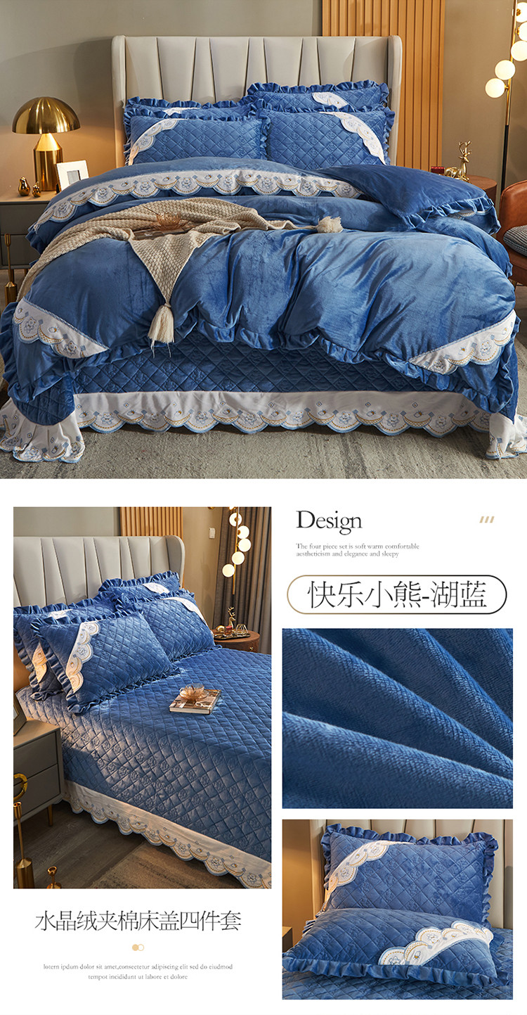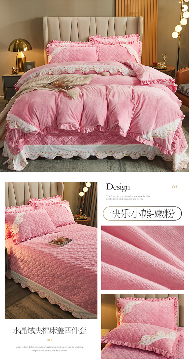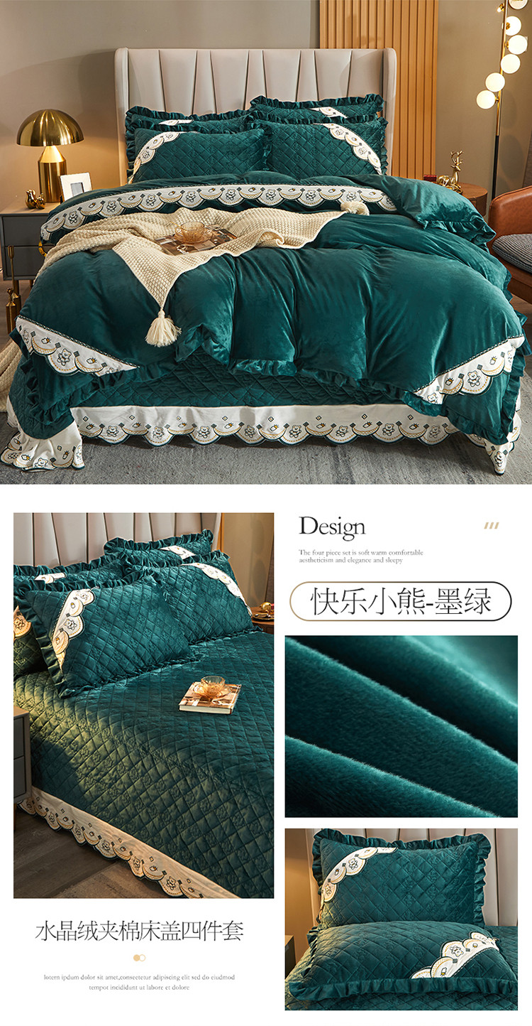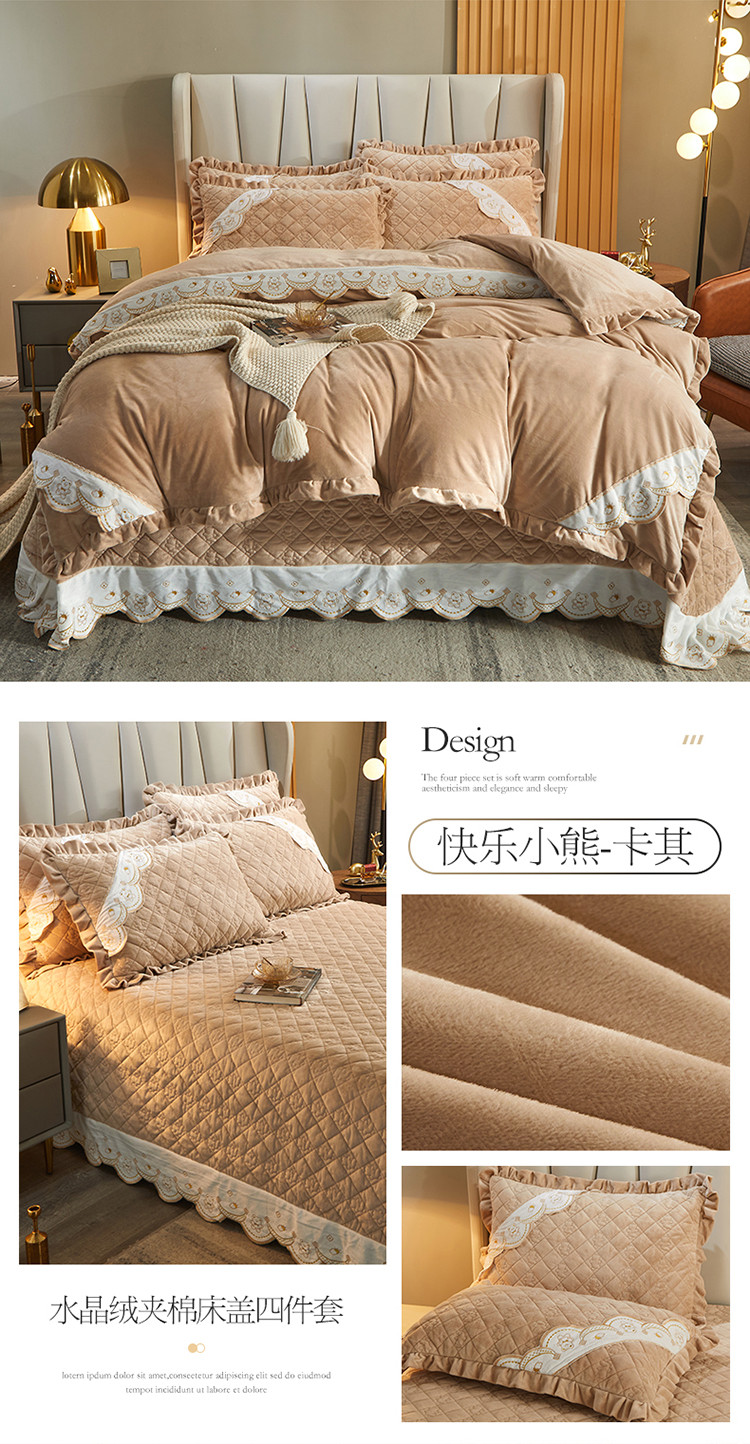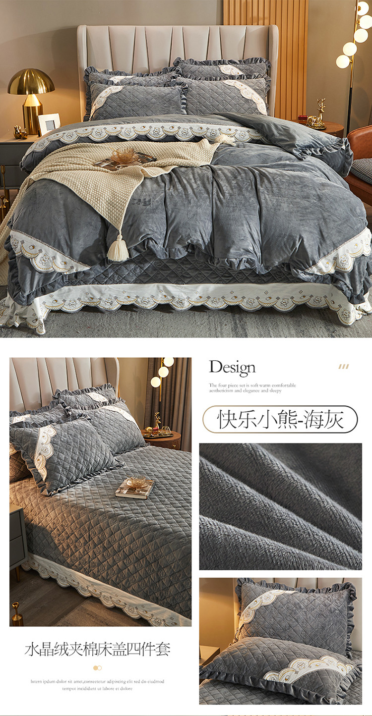 (总)宜凡 2021新款水晶绒夹棉绗缝床盖四件套