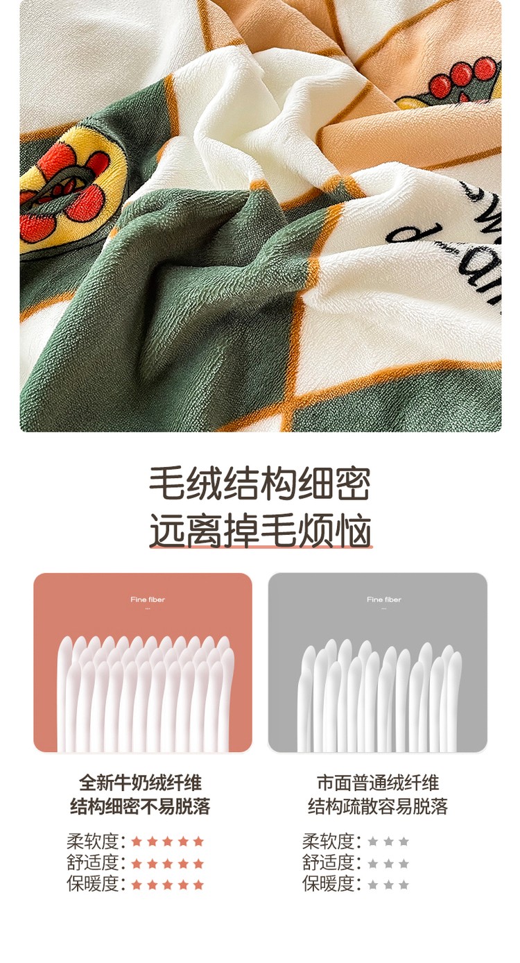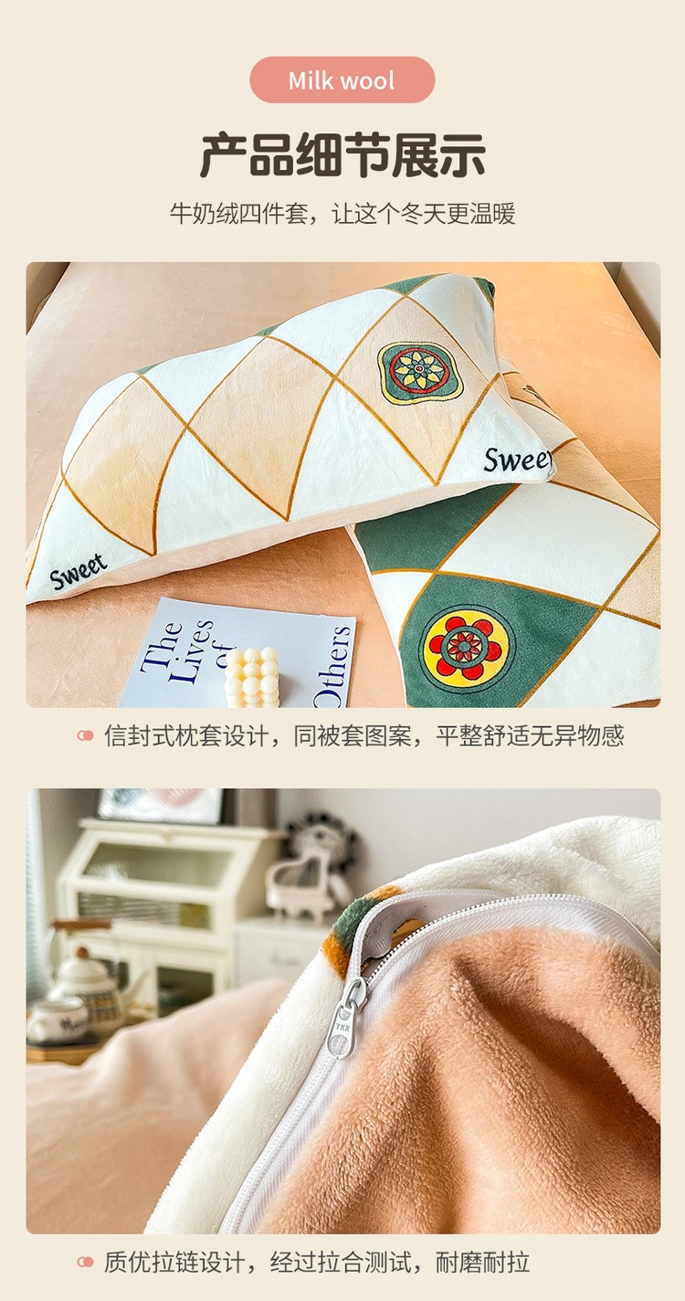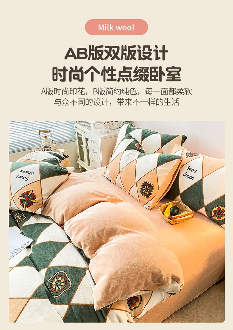 优彩 2021新款200克高克重印花牛奶绒四件套 菱形格
