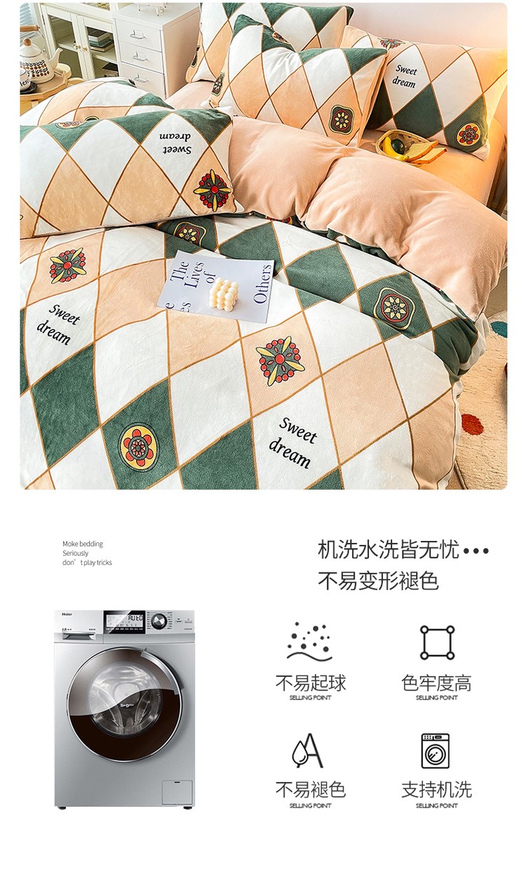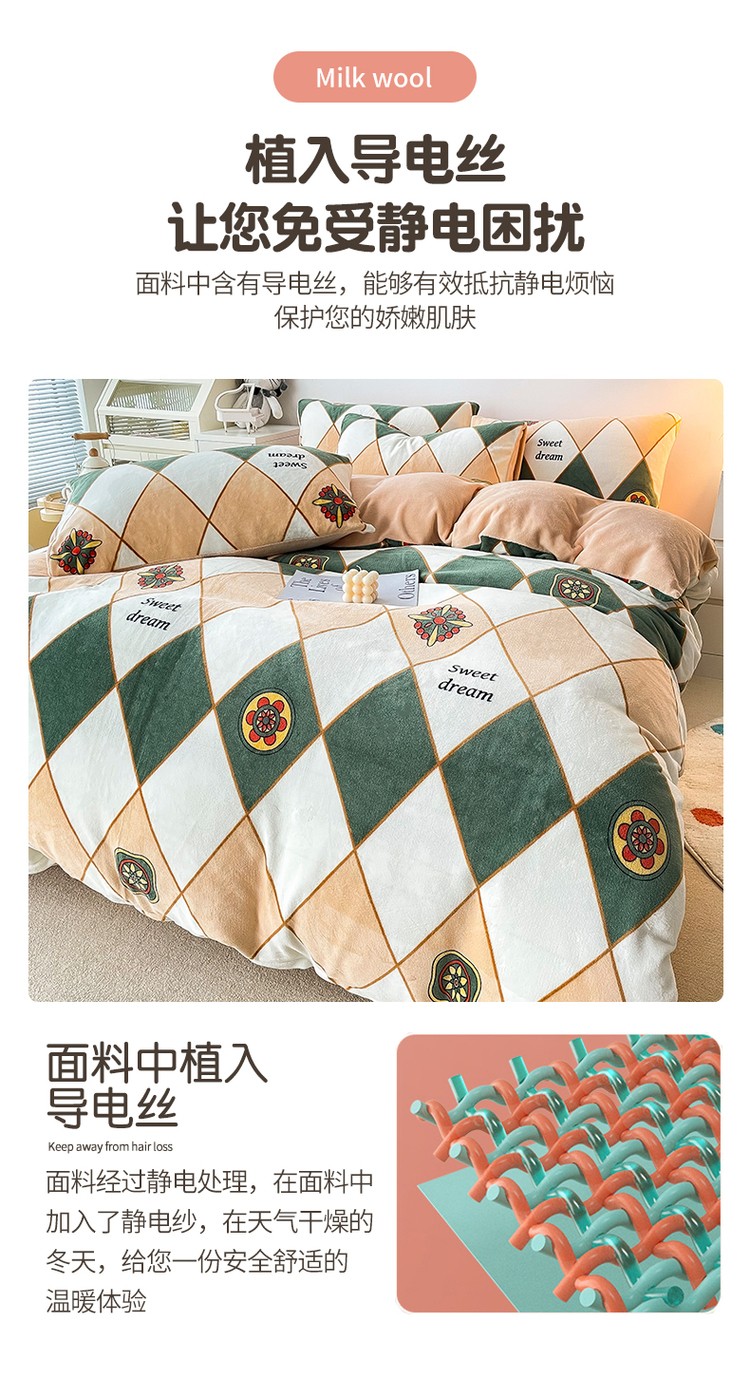 商品名称:优彩 2021新款200克高克重印花牛奶绒四件套 菱形格