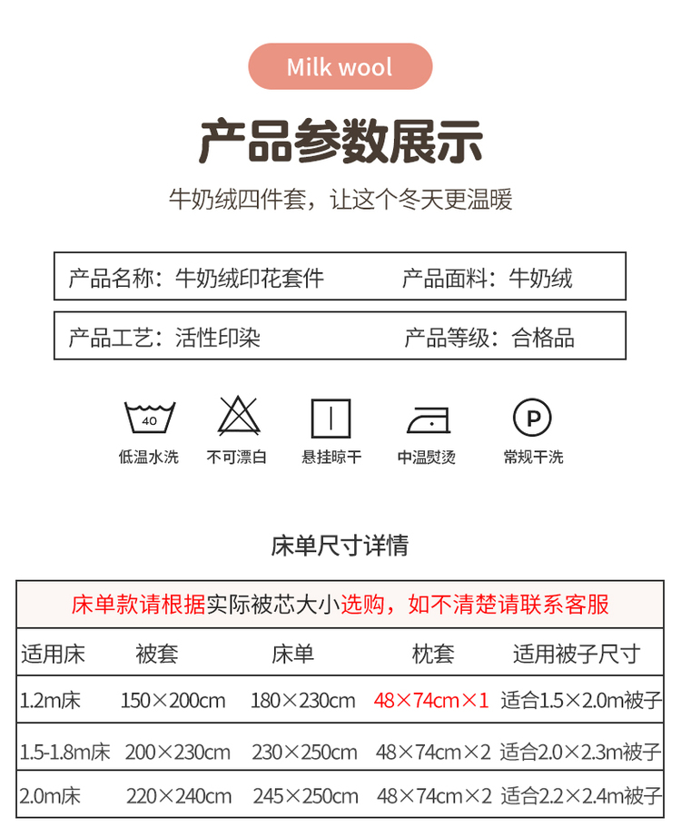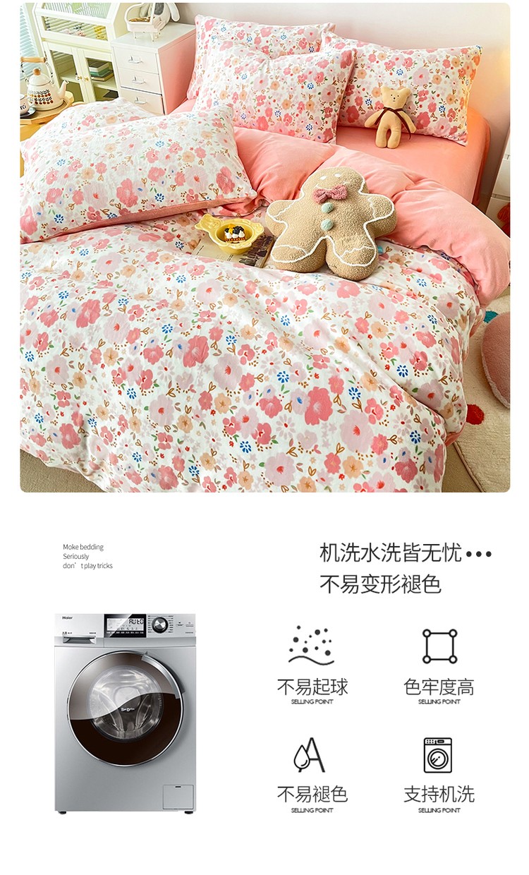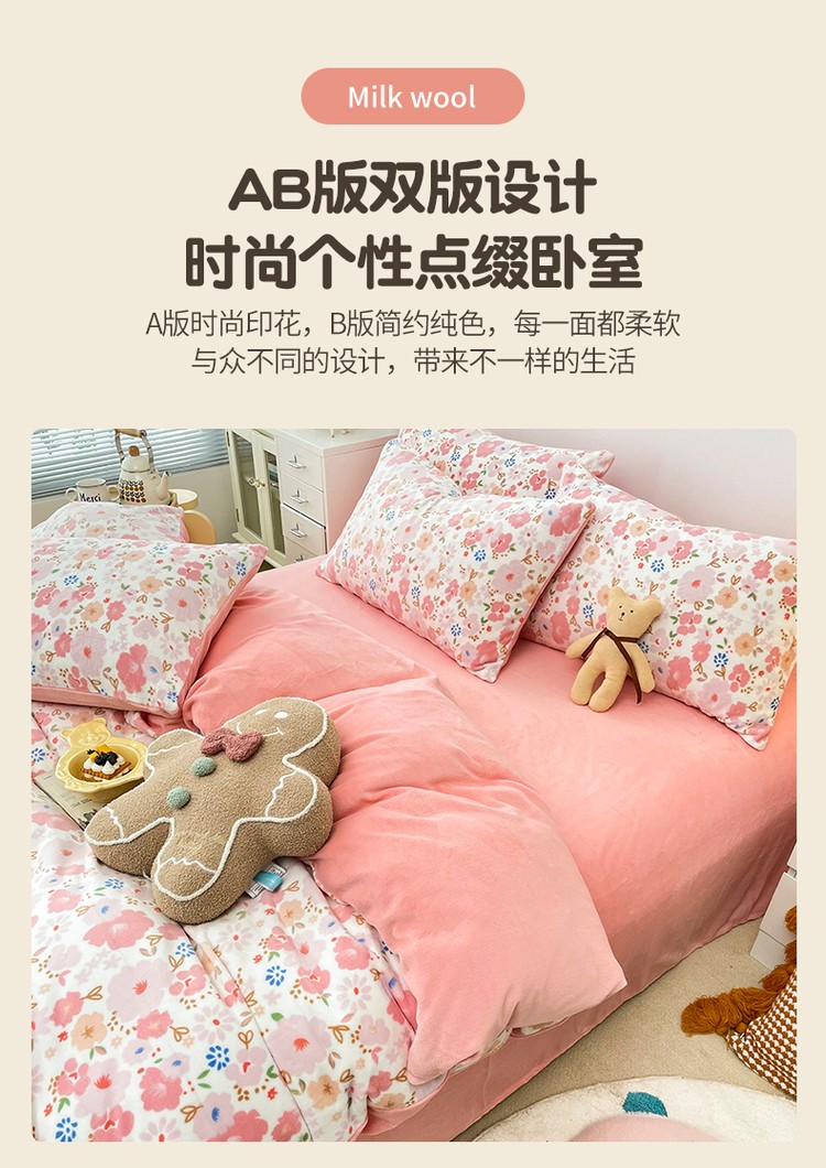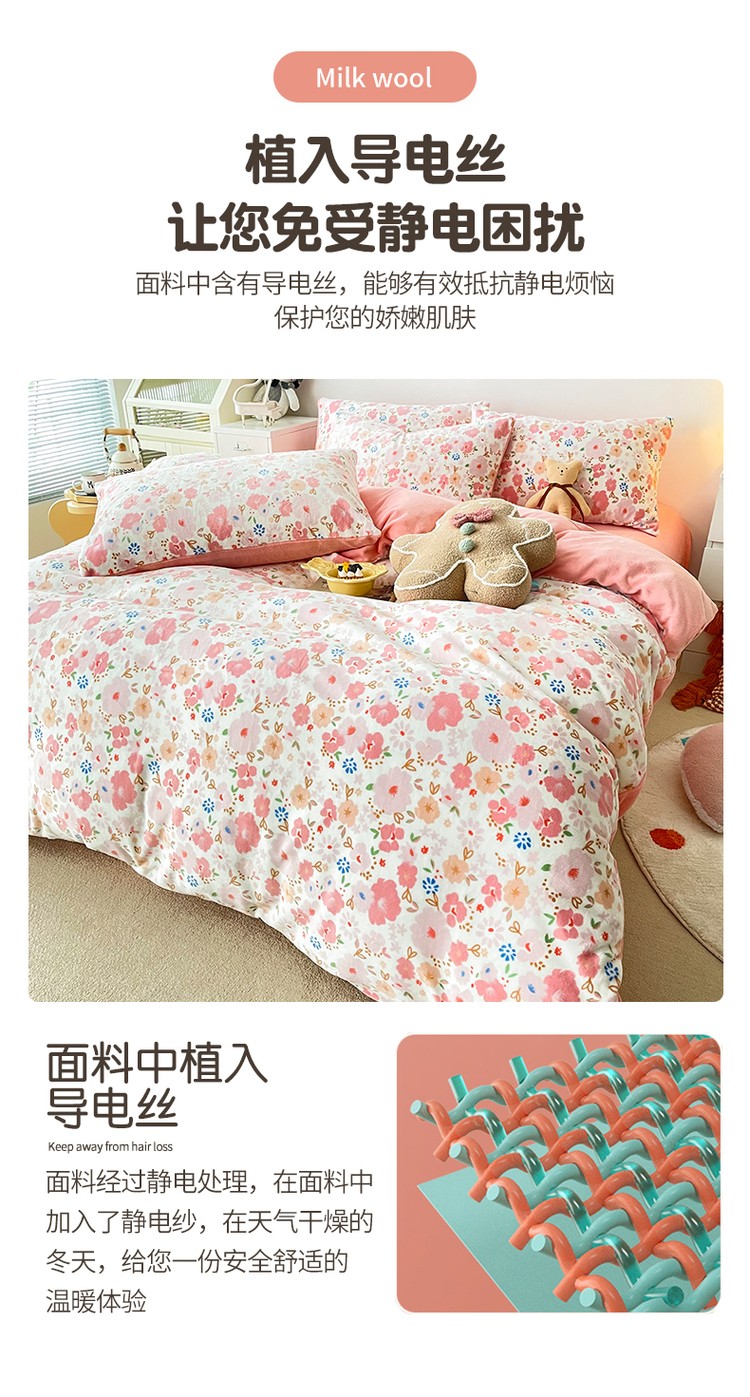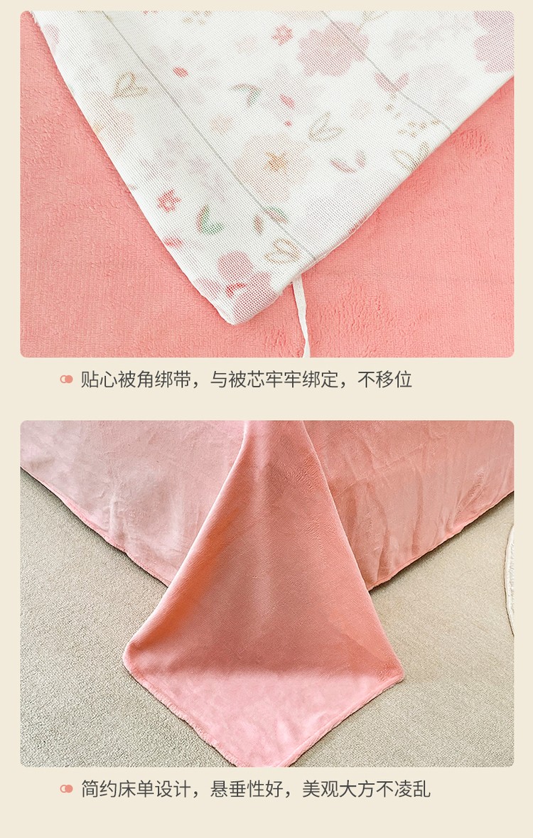 商品名称:优彩 2021新款200克高克重印花牛奶绒四件套 樱花粉
