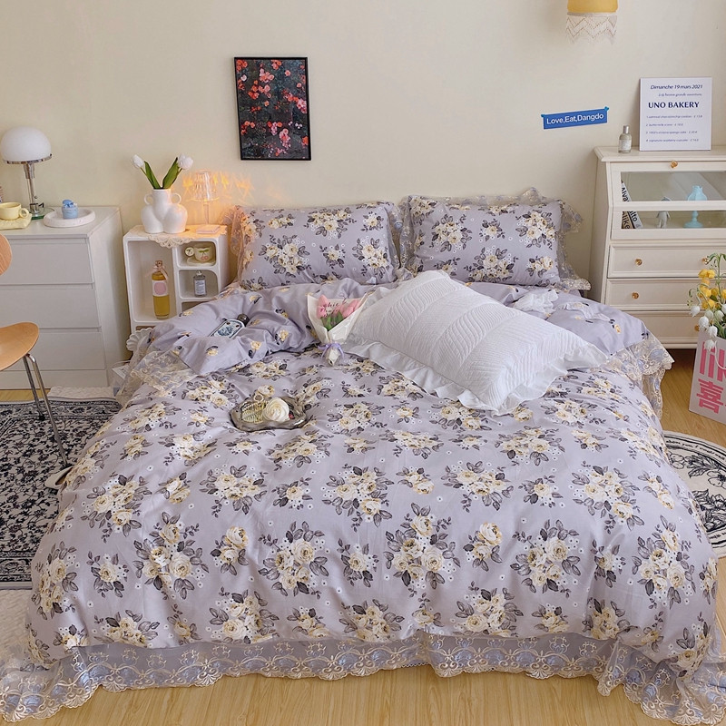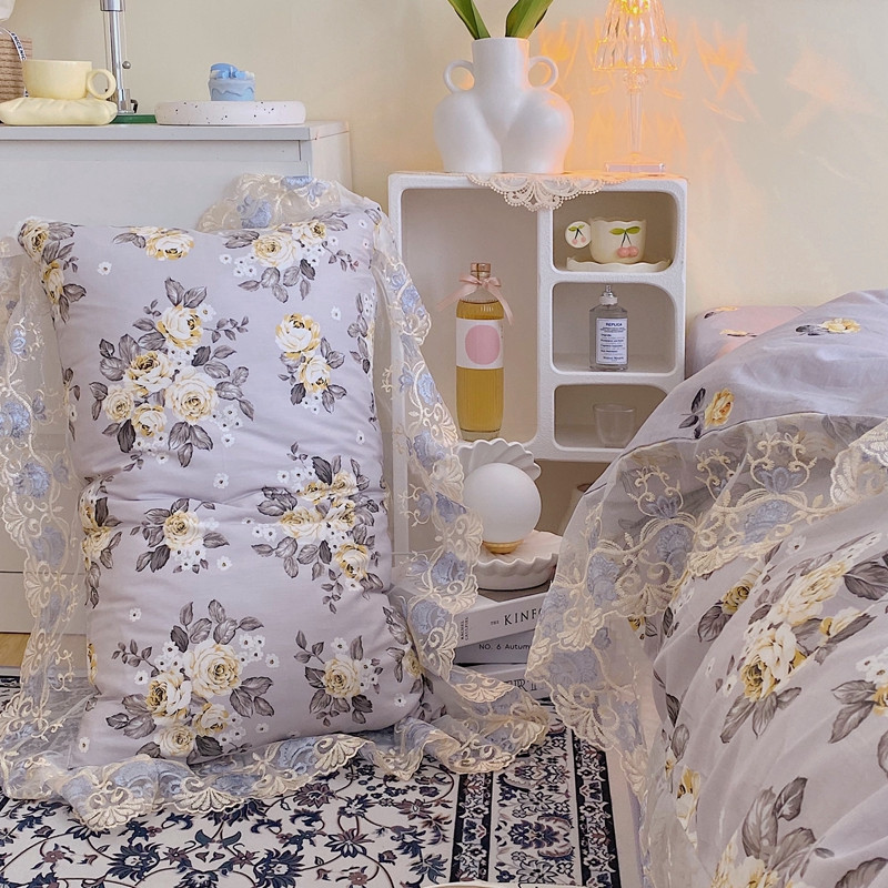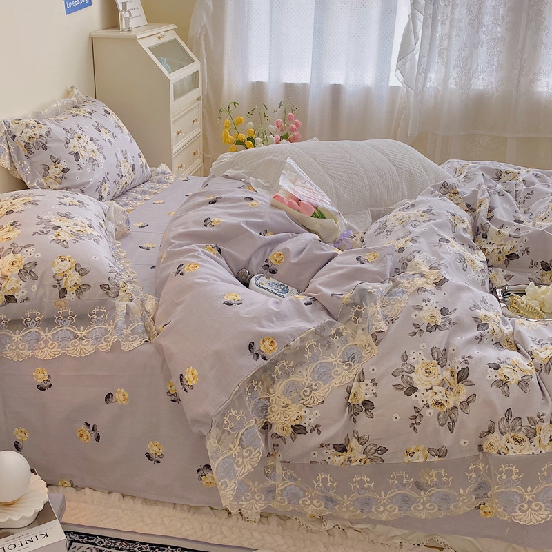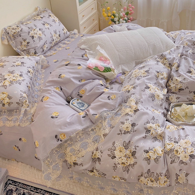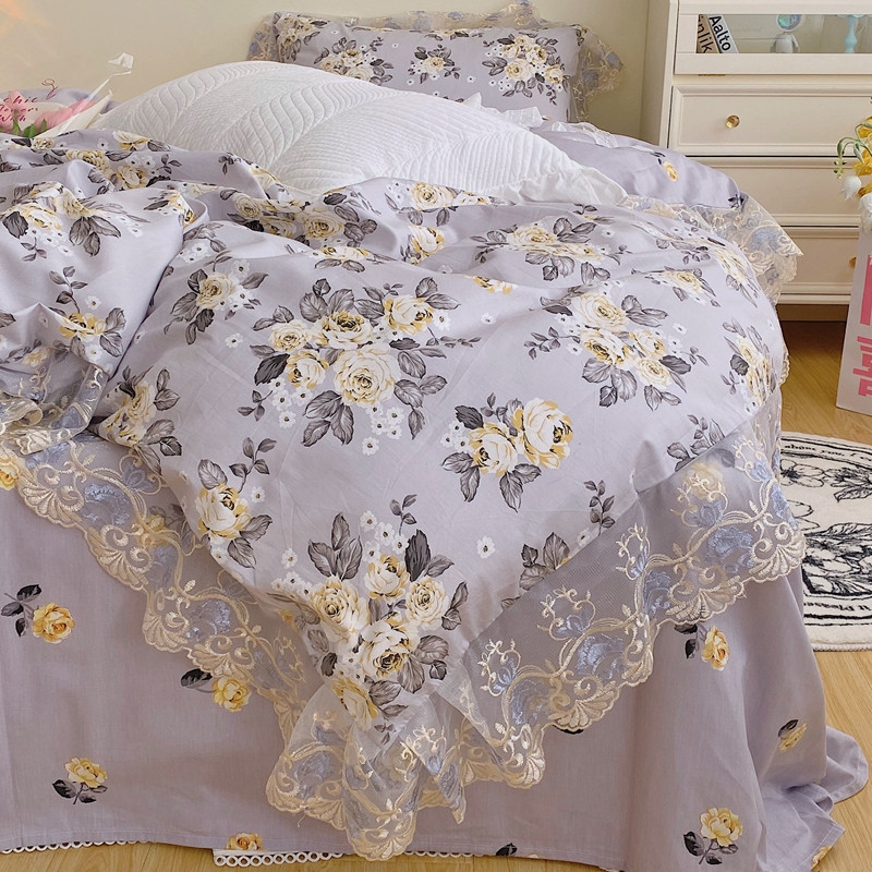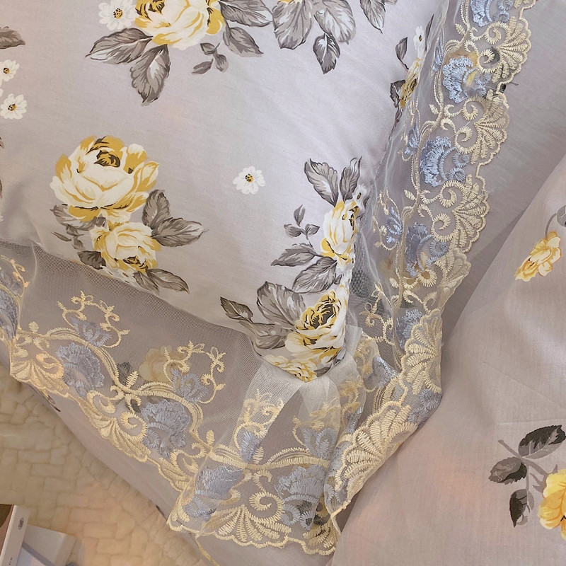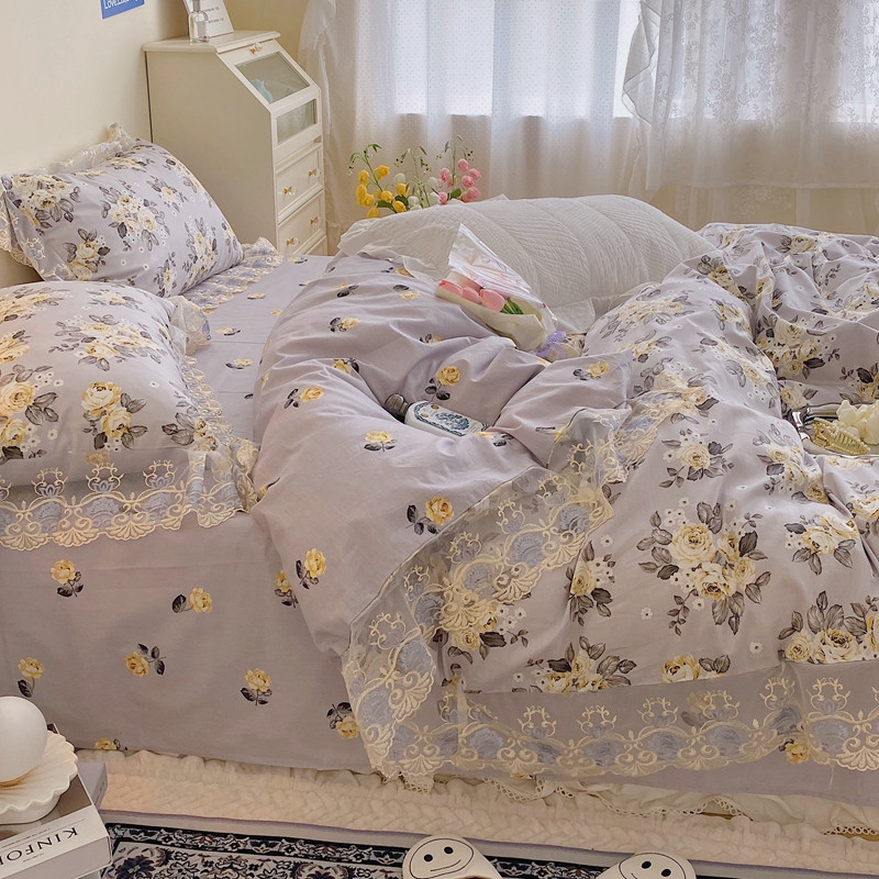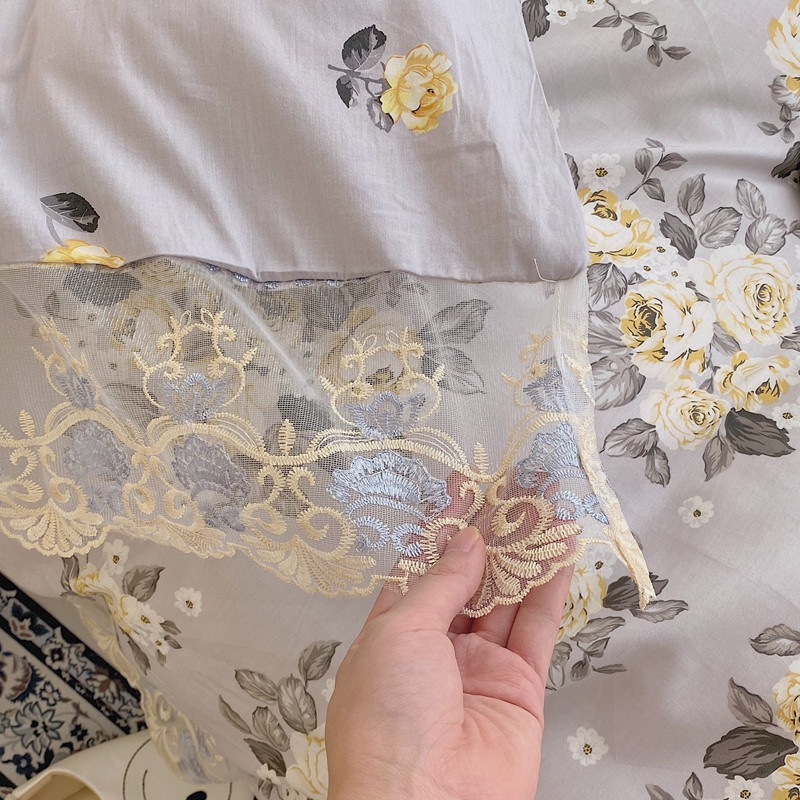 顾里202140支13372复古韩风蕾丝大花边全棉四件套花池