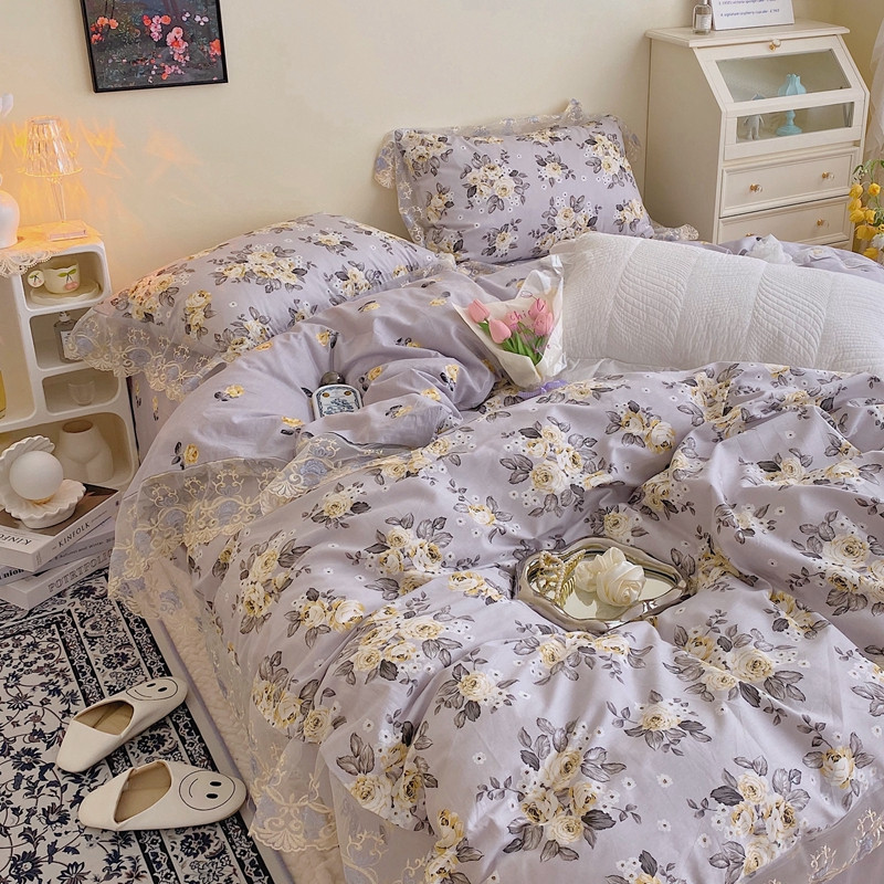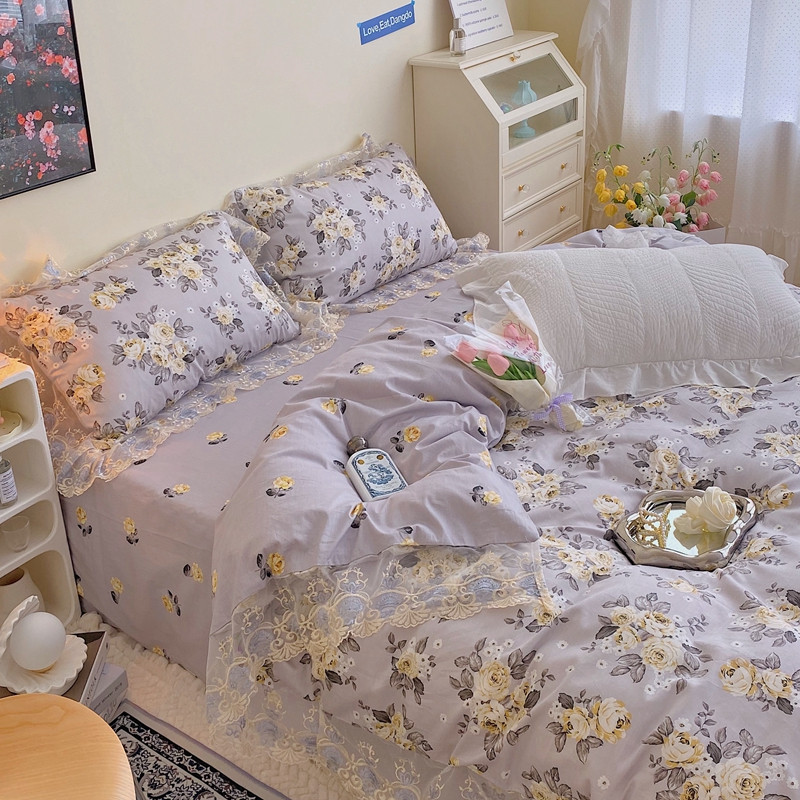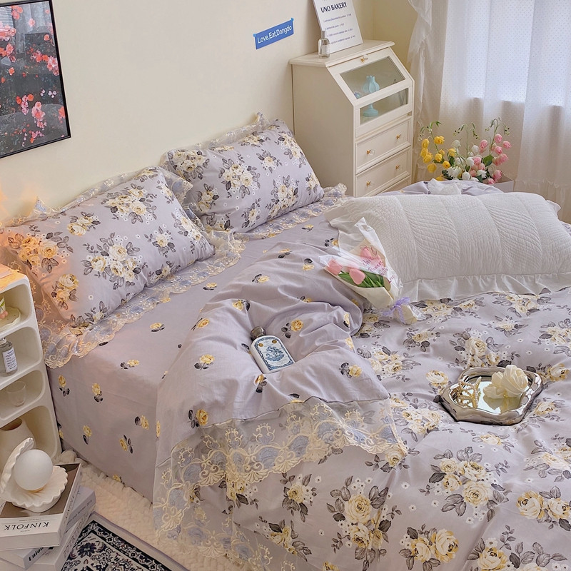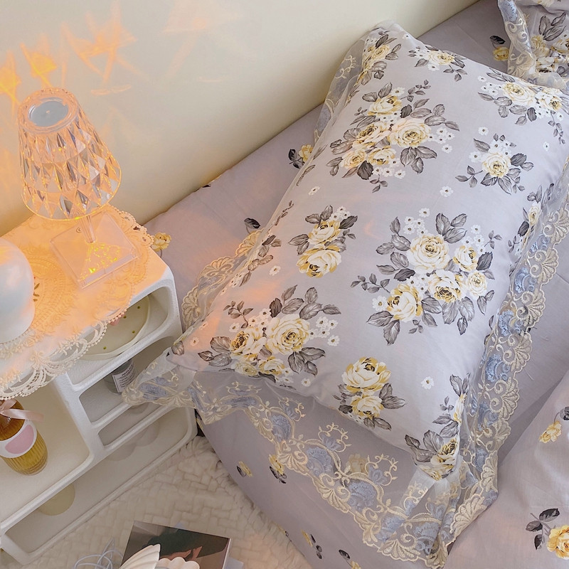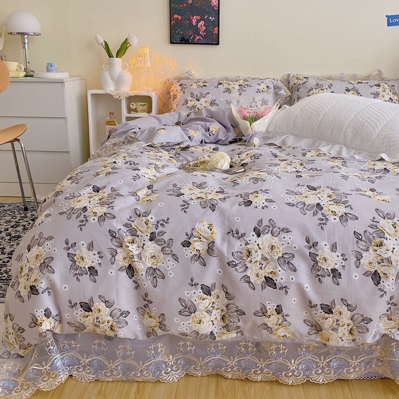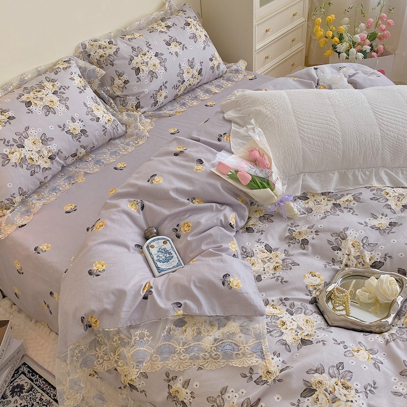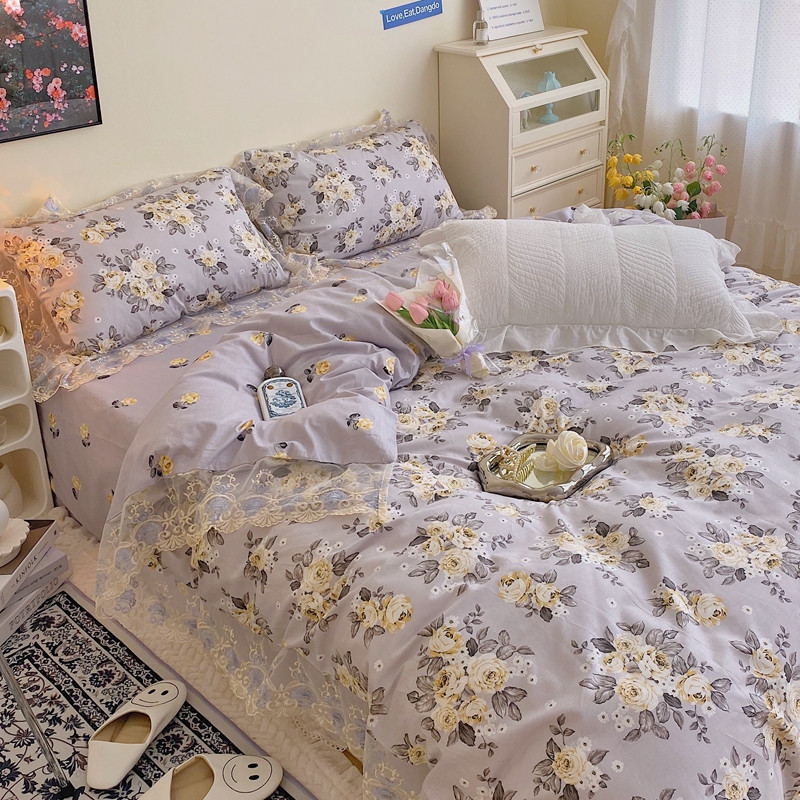 顾里202140支13372复古韩风蕾丝大花边全棉四件套花池